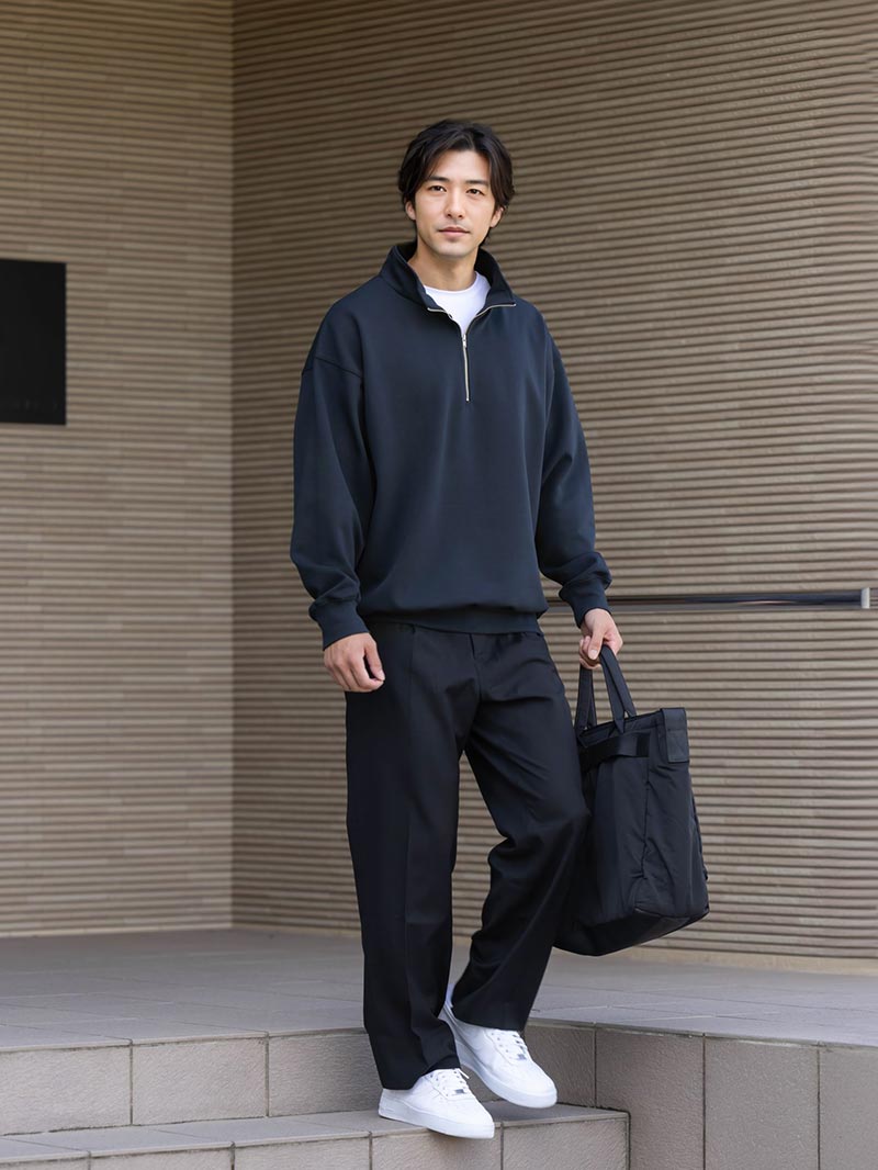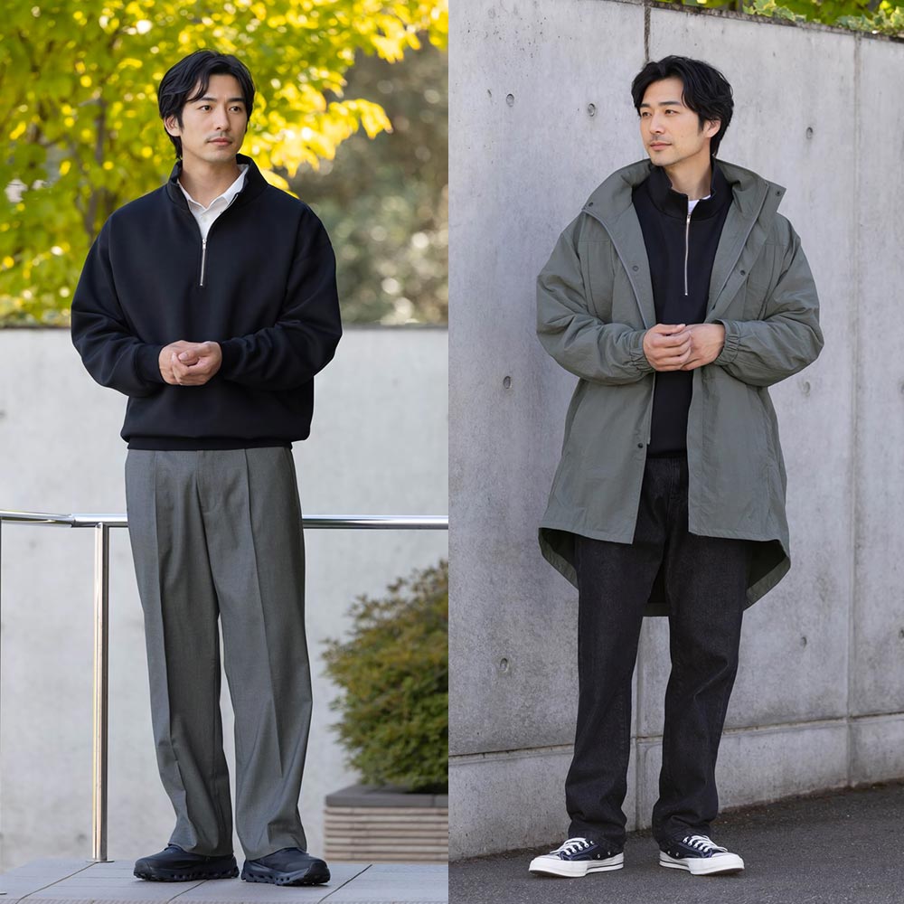 アイテム説明 滑らかな肌触りのダンボールニットスウェット 吸湿性、通気性、保温性を併せ持つ生地で夏以外の季節で使える汎用性の高さが魅力。 着こなしの幅が広い 一枚でスタイリッシュに着るもよし、インナーとして使うもよし。 やや光沢のある滑らかな生地 スポーティーな大人仕様に仕上げてくれるダンボールニット生地。 とても滑らかな肌触りで着心地が良い。 LIGHT TECHインナーとは、太陽光・室内灯の近赤外線と、身体から放射される遠赤外線を熱に変える発熱素材を使用した機能性インナーです。 着心地の良い裏起毛によって、より暖かさアップ。 また、ネックラインと袖の長さにこだわり、襟元・袖口からインナーが見えないように設計。 ニット・シャツなど、どんなトップスにも合わせることができます。 好みで選べる2タイプ首元まで暖かいクルーネックシャツと好相性のVネック LIGHT TECH クルーネックインナーTシャツ CHECK LIGHT TECH VネックインナーTシャツ CHECK サイズ・素材 肩幅 身幅 袖丈 着丈 M 57.5 60.5 56 68.5 L 59 62 57.5 71 XL 60.5 63 58 72.5 ※表記サイズは実寸であり、個体差により誤差が生じる場合があります。 ※商品によっては洗濯タグにヌード寸法が記載されておりますが、実寸とは異なります。 伸縮性 あり ややあり なし 厚み 厚手 普通 薄手 透け感 あり ややあり なし 洗濯 洗濯OK ネット使用 手洗いのみ 表地 本体:ポリエステル51%綿40%ポリウレタン9%リブ部分:綿98%ポリウレタン2% 裏地 なし 生産国 中国 禁止事項 漂白剤使用×乾燥機使用× 表示を隠す サイズにお悩みですか? AIに適正サイズを聞く 返品・交換は無料で安心 ご自宅でじっくりご試着いただけます。合わなければ送料負担なく返品できます。あなたにぴったりの一着と出会えるよう、お手伝いいたします。 コーディネート Model : 179㎝ / 66㎏ / L/ ネイビー着用 自由度高めな秋のオフィカジスタイル ハーフジップスウェットは、自由度が高いオフィスシーンにもおすすめです。 細身のパンツで合わせれば、ラフになりすぎず程よいきちんと感が生まれます。 足元は白で清潔感を加え、フレッシュな印象に仕上げました。 ハイゲージ長袖カットソー CHECK CODEストレートパンツ ウールブレンド 通年用 CHECK Model : 179㎝ / 66㎏ / L/ ネイビー着用 ハーフジップのリラックスコーデ ハーフジップスウェットはデニムを合わせて、とことんカジュアルに着こなすのもおすすめ。 ジップは半分まで下げて襟を少し寝かせることで、リラックス感の中にも抜け感とこなれた雰囲気が生まれます。 ハイゲージ長袖カットソー CHECK ストレートジーンズ CHECK Model : 179㎝ / 66㎏ / L/ ブラック着用 モノトーンでまとめたハーフジップコーデ ハーフジップは、大人っぽい着こなしもおすすめ。 インナーにシャツを仕込み、パンツはセンタープレス入りのストレートを選ぶことでグッとキレイめ度がUPします。 モノトーンでまとめるとより品のある印象ですよ。 レギュラーカラーシャツ CHECK CODEストレートパンツ ウールブレンド 通年用 CHECK Model : 179㎝ / 66㎏ / L/ ブラック着用 カジュアルなのに洗練されたスタイル 秋冬のコーデはカジュアルなアウターのインナーにも最適です。 アウター以外をキレイめな印象の黒でまとめることで、全体が引き締まり、大人らしく洗練されたスタイルに仕上がります。 アーバンモッズコート CHECK ハイゲージ長袖カットソー CHECK ストレートジーンズ CHECK スタッフコーディネート もっと見る