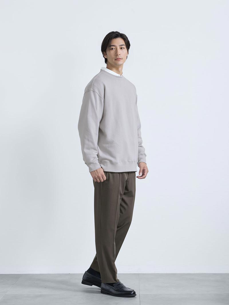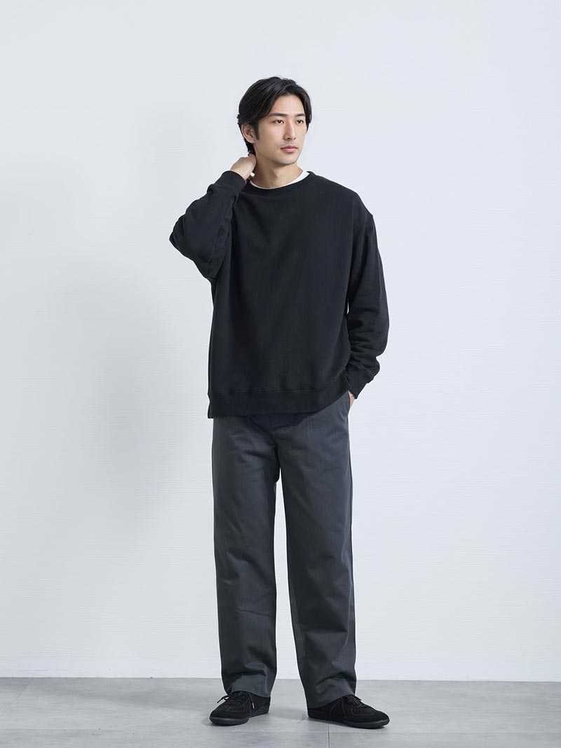 アイテム説明 和歌山の工場で編み立てられたコットン100%生地の国産トレーナー 福井の職人が1枚ずつ裁断・縫製を行う、国内一貫生産。 シーズンや流行に左右されないデザインだからこそ、毎年着たくなる。 そして着るたびに「いい服だ」と実感できる一着。 もっと見る 着るほどに、育っていく一着 糸選びから編み密度までこだわった生地は、洗濯を重ねてもへたりにくく、むしろ風合いが増していきます。 サイドスリットで差をつける 裾にはサイドスリットを加え、動きやすさと軽やかな印象をプラス。 ポケットに手を入れやすいのも嬉しいポイント。 同素材のプルパーカー 首まわりに立体的なボリュームが生まれる設計で、顔まわりがすっきり見える大人なパーカー。 コットンプルパーカー CHECK LIGHT TECHインナーとは、太陽光・室内灯の近赤外線と、身体から放射される遠赤外線を熱に変える発熱素材を使用した機能性インナーです。 着心地の良い裏起毛によって、より暖かさアップ。 また、ネックラインと袖の長さにこだわり、襟元・袖口からインナーが見えないように設計。 ニット・シャツなど、どんなトップスにも合わせることができます。 好みで選べる2タイプ首元まで暖かいクルーネックシャツと好相性のVネック LIGHT TECH クルーネックインナーTシャツ CHECK LIGHT TECH VネックインナーTシャツ CHECK サイズ・素材 肩幅 身幅 袖丈 着丈 S 49.5 58 52 63 M 53 60 53 64 L 55 62 54.5 66 XL 58 63.5 56 68.5 ※表記サイズは実寸であり、個体差により誤差が生じる場合があります。 ※商品によっては洗濯タグにヌード寸法が記載されておりますが、実寸とは異なります。 伸縮性 あり ややあり なし 厚み 厚手 普通 薄手 透け感 あり ややあり なし 洗濯 洗濯OK ネット使用 手洗いのみ 表地 【本体】綿100%【リブ部分】綿95%ポリウレタン5% 裏地 なし 生産国 日本 禁止事項 乾燥機使用×漂白剤使用×日向干し× 表示を隠す サイズにお悩みですか? AIに適正サイズを聞く 返品・交換は無料で安心 ご自宅でじっくりご試着いただけます。合わなければ送料負担なく返品できます。あなたにぴったりの一着と出会えるよう、お手伝いいたします。 コーディネート Model : 179㎝ / 66㎏ / L / グレージュ着用 締め色のブラックで作る休日コーデ ニュートラルな色味のグレージュには、引き締め色のブラックのデニムパンツを合わせてメリハリをつけるのがポイント。 シンプルになりすぎないように眼鏡をかければ、コーデのアクセントになりますよ。 ストレートジーンズ CHECK 調光レンズサングラス/クラウンパント CHECK Model : 179㎝ / 66㎏ / L / グレージュ着用 ほんのり甘さも感じる大人の秋コーデ グレージュのトレーナーに白のカットソーを重ね着すると、シンプル過ぎないこなれたスタイルに。 柔らかな配色と素材感でほんのり甘さのあるテイストながらも、落ち着いたトーンで大人な雰囲気を醸し出します。 ハイゲージ長袖カットソー CHECK スウェードレザースニーカー CHECK Model : 179㎝ / 66㎏ / L / ブラック着用 チェックを効かせた粋なトラッドスタイル トレーナーの首元からちらっとのぞくチェックシャツが、英国感のあるトラッドな雰囲気に。 シンプルになりがちなモノトーンに程よい遊び心を添え、さりげなく粋なデイリースタイルに仕上がります。 ビエラ起毛チェックネルシャツ CHECK ストレートジーンズ CHECK スウェードレザースニーカー CHECK Model : 179㎝ / 66㎏ / L / ブラック着用 今どきなノームコアスタイル トレーナーの部屋着感を払拭するように、首元にレイヤードで変化をつけるのがポイント。 シンプルなアイテムの組み合わせで、ミニマルながらも今どきのノームコアなスタイルを楽しむことができます。 ハイゲージ長袖カットソー CHECK テーパードチノパンツ CHECK スウェードレザースニーカー CHECK Model : 179㎝ / 66㎏ / L / グレー着用 カジュアルコーデも色合わせで大人っぽく グレーとカーキのニュアンスカラー同士の組み合わせが、落ち着いた印象を与えるため大人の男性にピッタリ。 ボトムはカジュアルなチノパンで動きやすく、家族とのお買い物やレジャーなどのシーンにもおすすめです。 テーパードチノパンツ CHECK 調光レンズサングラス/クラウンパント CHECK Model : 179㎝ / 66㎏ / L / グレー着用 キレイめに整えたオフィス向けコーデ カジュアルなシャツとキレイめなシャツの組み合わせは、誠実な大人っぽさを演出。 パンツはテーパード&センタープレス入りのものを選ぶと、よりキレイめに仕上がり、オフィスシーンにも合う着こなしになります。 レギュラーカラーシャツ CHECK CODEテーパード ウィンター CHECK Salvatole Marra シンプル腕時計 CHECK スタッフコーディネート もっと見る