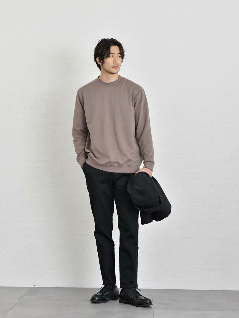 リブ付き長袖スムースTシャツ