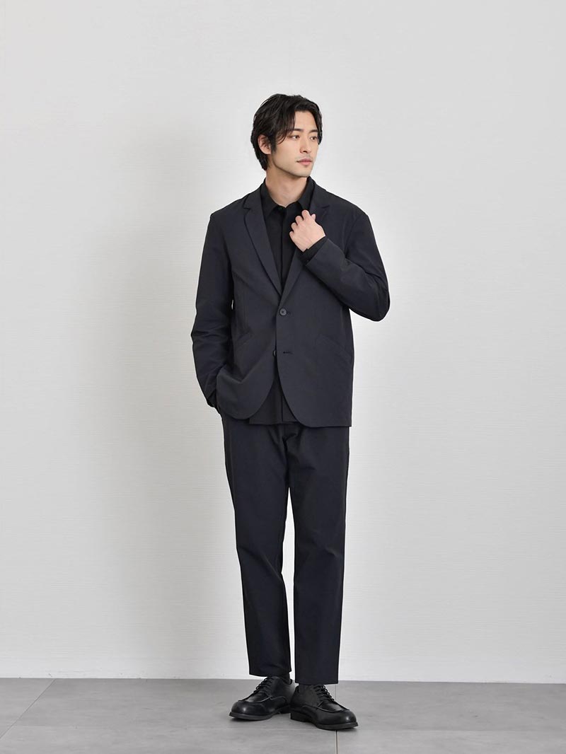 アイテム説明 テックテーパードパンツに同素材ジャケットを羽織るだけでドレスアップが完了。 畳んで・動いても型崩れしない、シリーズ初のハイテクテーラードジャケット。 もっと見る 5つの魅力を解説 ①4WAYストレッチ 伸縮性のある生地なのでカジュアルシーンでも動きやすい。 ②暑い季節に肌が密着しない裏地 背中の部分はメッシュになっているので通気性があります。 裏地は凹凸がある生地になっているので汗でベトつかない。 ③軽量 左:CODE4:560g/右:CODEテック:398.6g 「CODEテックテーラード」のほうが軽いから、ラクに着用してもらえる。旅行時の持ち運びも便利。 ⑤UVカット機能 夏に嬉しいUVカット機能が付いています。 セットアップで 「5秒ドレスアップ」 テックテーパードパンツに同素材ジャケットを羽織るだけ。 たった5秒でドレスアップが完了します。 ビジネスシーンでは、仕事もオシャレも気を抜かない魅力的な男性に。 プライベートでは、キレイめファッションで清潔感のある好印象な男性に。 オンオフ問わず活躍してくれるアイテム。それが、セットアップなのです。 同素材パンツ CODEテーパード テック CHECK サイズ・素材 肩幅 身幅 袖丈 着丈 S 42.5 47 58 66 M 45 49.5 58 69 L 46 51 60.5 70.5 XL 48 54 60.5 72 ※表記サイズは実寸であり、個体差により誤差が生じる場合があります。 ※商品によっては洗濯タグにヌード寸法が記載されておりますが、実寸とは異なります。 伸縮性 あり ややあり なし 厚み 厚手 普通 薄手 透け感 あり ややあり なし 洗濯 洗濯OK ネット使用 手洗いのみ 表地 ナイロン89% ポリウレタン11% 裏地 ポリエステル100% 生産国 中国 表示を隠す サイズにお悩みですか? LINEでサイズ相談する 返品・交換は無料で安心 ご自宅でじっくりご試着いただけます。合わなければ送料負担なく返品できます。あなたにぴったりの一着と出会えるよう、お手伝いいたします。 コーディネート Model : 179㎝/66㎏/ XL / ブラック着用 比翼仕立てタイプライターシャツ CHECK CODEテーパード テック CHECK Uチップシューズ CHECK Model : 179㎝/66㎏/ XL / ブラック着用 長袖リラックスシルエットTシャツ CHECK リラックスシルエットバンドカラーシャツ CHECK CODEテーパード CHECK ナローリアルレザーベルト CHECK スタッフコーディネート もっと見る