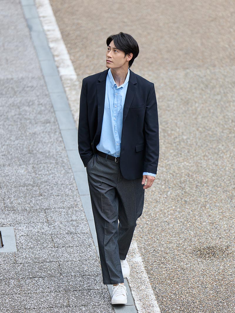 インナーを選ぶだけで仕事も遊びもシームレスに仕上がる「大人の 5 秒ドレスアップ」ジャケットです。