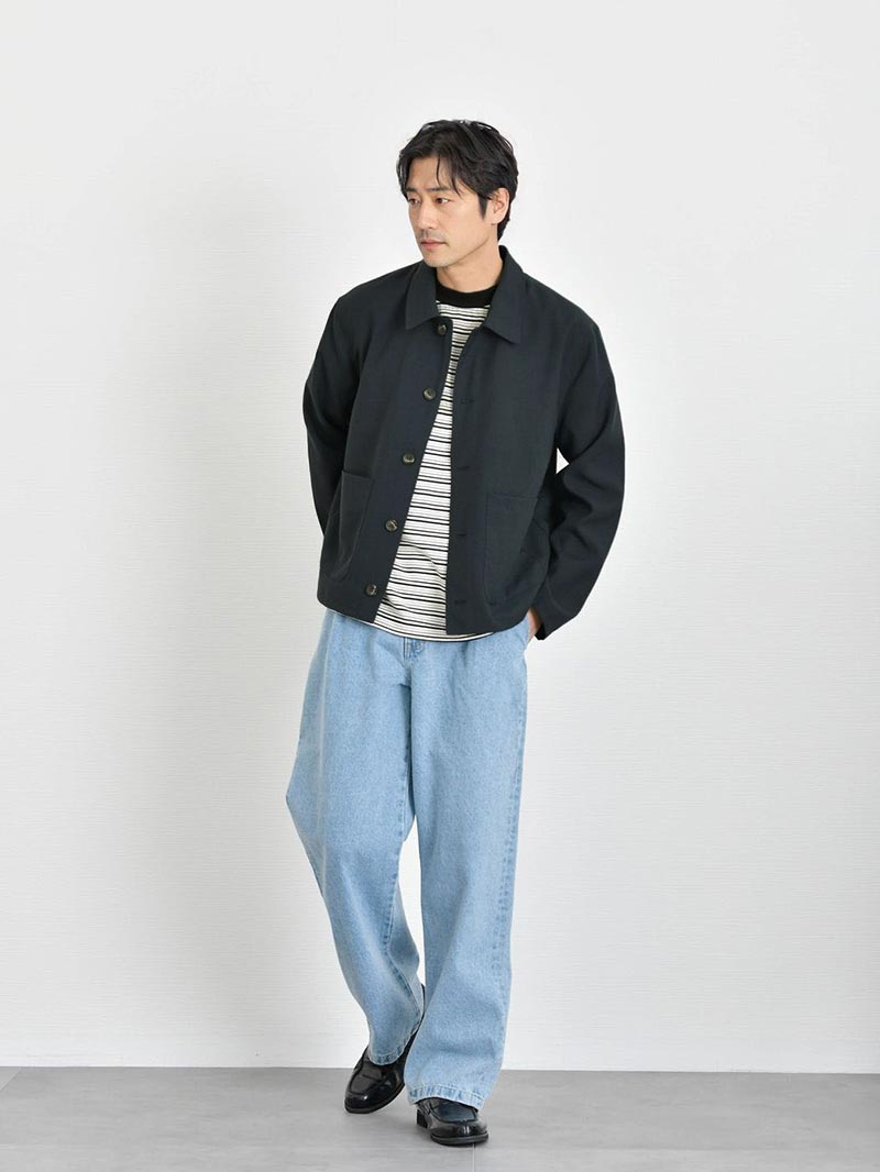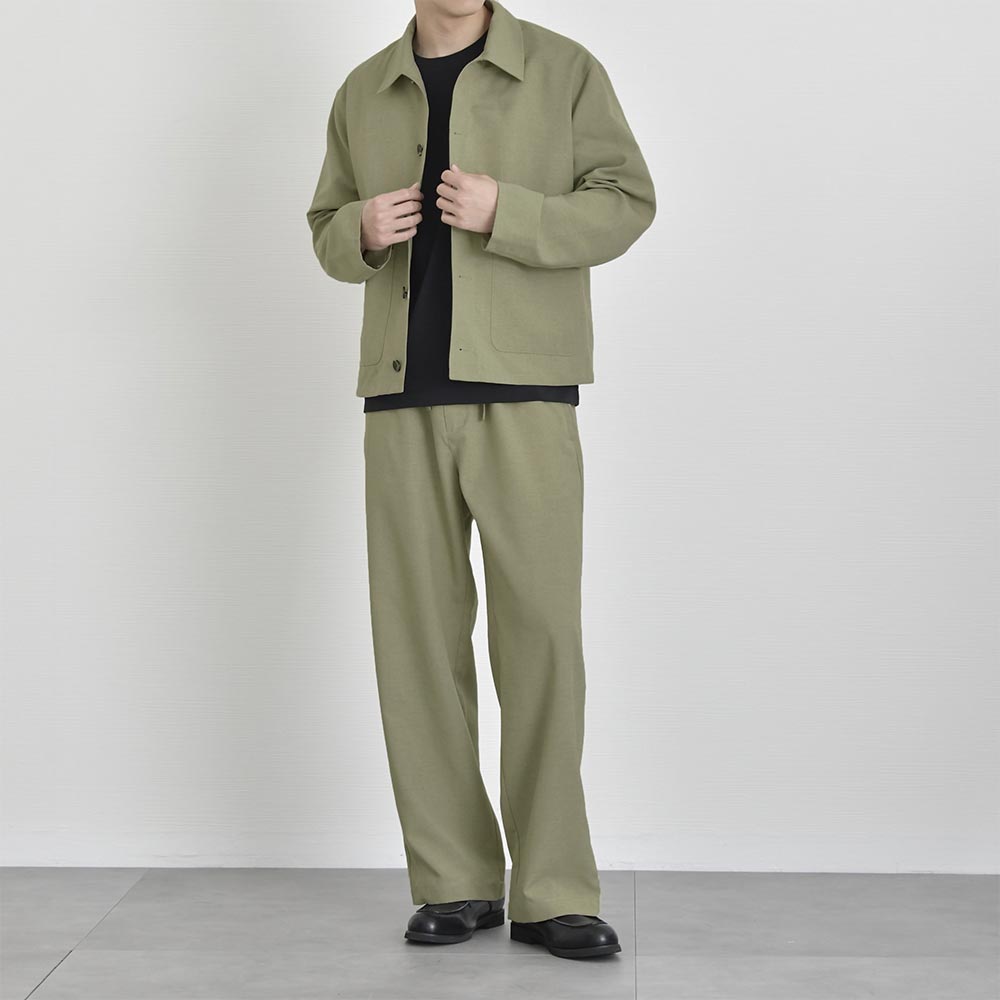 ジャケットと同じ色・素材のパンツを合わせることでセットアップな着こなしに仕上がります。