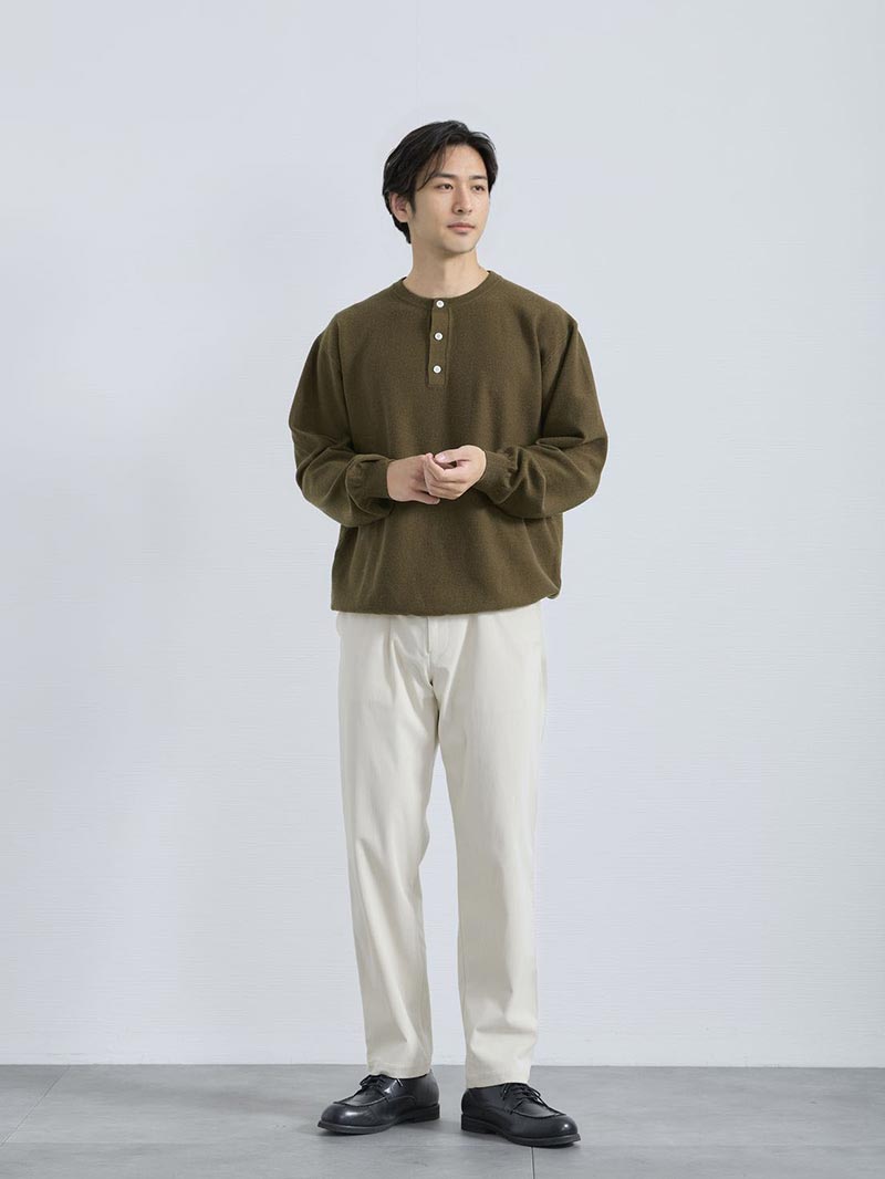 コーデュロイの表情で、いつものボトムスを更新 細すぎず太すぎないストレートシルエットが、毎日の街着にちょうどいい。 優れた保温性で、秋冬の寒い日でも快適な着心地。 動ける&ラクに洗える ストレッチで楽な着心地。 家での洗濯もOKです。 セットアップになる同素材ジャケット ジャケットと合わせて統一感のある装いに。ビジネスも週末の外出もこれ一式でOK。 コーデュロイ テーラードジャケット CHECK サイズ・素材 ウエスト 股上 股下 ヒップ もも幅 すそ幅 S 79~86 28 71 102 31 17.5 M 80.5~88 28.5 72.5 104 32 18 L 83~91 29 74.5 105 33 19 XL 85~97 29.5 76.5 109 34 19.5 ※表記サイズは実寸であり、個体差により誤差が生じる場合があります。 ※商品によっては洗濯タグにヌード寸法が記載されておりますが、実寸とは異なります。 伸縮性 あり ややあり なし 厚み 厚手 普通 薄手 透け感 あり ややあり なし 洗濯 洗濯OK ネット使用 手洗いのみ 表地 ポリエステル100% 裏地 なし 生産国 中国 表示を隠す サイズにお悩みですか? AIに適正サイズを聞く 返品・交換は無料で安心 ご自宅でじっくりご試着いただけます。合わなければ送料負担なく返品できます。あなたにぴったりの一着と出会えるよう、お手伝いいたします。 コーディネート Model : 179㎝ / 66㎏ / L/ ネイビー着用 コーデュロイで仕上げる秋の同系色コーデ 定番のネイビーセットアップも、素材の変化で印象がガラリと変化。 ウォーム感のあるコーデュロイ素材は、季節感を強くアピールします。 インナーにシンプルなニットを合わせれば、野暮ったくならず着こなせます。 コーデュロイ テーラードジャケット CHECK ハイゲージシルクタートルニット CHECK Model : 179㎝ / 66㎏ / L/ ネイビー着用 コーデュロイでシンプルコーデを格上げ 一見基本の着こなしのように見えて、季節感をしっかりと意識したコーディロイパンツのコーディネート。 ややオーバーサイズ気味のセレクトをして、リラックス感を意識するのもポイントです。 コットンカシミヤ クルーネックニット CHECK ウェリントンサングラス 調光レンズ CHECK Model : 179㎝ / 66㎏ / L/ アイボリー着用 爽やかパンツで好印象間違いなし リラックス感のあるニットジャケットで、温かみのあるリラックススタイルに。 コントラストの効いたアイボリーパンツで、爽やかな印象をアップ、全方位に好印象の着こなしが目指せます。 ワッフルショールカーディガン CHECK ハイゲージ長袖カットソー CHECK Uチップシューズ CHECK Model : 179㎝ / 66㎏ / L/ アイボリー着用 柔らかな配色で秋の装いを引き立てる 落ち着いたカーキブラウンは、秋らしさを演出するのに最適。 スニーカーはもちろんOKですが、こんな風にレザーシューズでトラッドに着こなすのもおすすめです。 ヘンリーネック鹿の子ニット CHECK Uチップシューズ CHECK Model : 179㎝ / 66㎏ / L/ ブラウン着用 秋ならではのブラウンセットアップ 秋らしいブラウンのトーン・オン・トーンコーデの上品なコーディネート。 ブラックよりもよりソフトな印象で着こなしやすく、知的でこなれた印象に仕上がります。 コーデュロイ テーラードジャケット CHECK コットンカシミヤ クルーネックニット CHECK Model : 179㎝ / 66㎏ / L/ ブラウン着用 カジュアルに着こなす秋冬シャツコーデ 細畝のコーデュロイパンツの程よいカジュアル感を楽しむなら、トラッドさ控えめのネルシャツが最適。 シャツは一枚で着るのはもちろん、インナーをプラスして羽織りシャツとしても着られる余裕のあるサイズ感です。 ハイゲージ長袖カットソー CHECK ビエラ起毛チェックネルシャツ CHECK スウェードレザースニーカー CHECK スタッフコーディネート もっと見る