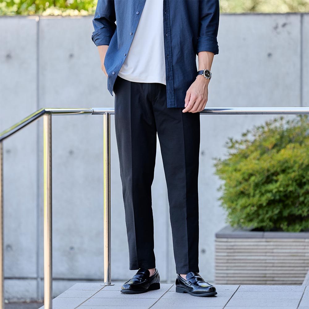 アイテム説明 動きやすくて、涼しい。夏のきれいめパンツ。 高ストレッチ素材で動きやすく、接触冷感でひんやり快適。ビジネスにもカジュアルにも使える、上品見えのイージーパンツです。 もっと見る ラクなのに、きちんと見える センタープレスの上品さに、快適なイージー仕様をプラス。 きちんと見せたいビジネスシーンにも、ラフに過ごしたい休日にも、品よく馴染む一本です。 夏に嬉しい接触冷感生地 透けにくくハリのある生地感ながら、接触冷感素材でひんやり快適。 暑い季節にも心地よく着られます。 快適なイージーパンツ仕様 ドローコードのついたイージー仕様なので、幅広い体型の方が自分に合わせて着用できます。 上品な細身シルエットなのに、驚くほど動きやすい。 高いストレッチ性のある生地で、窮屈さを感じず快適に過ごせます。 洗濯機で気軽に洗える 自宅の洗濯機で気兼ねなく洗えます。 洗った後もシワになりにくく、いつでも清潔感をキープ。 サイズ・素材 ウエスト 股上 股下 ヒップ もも幅 すそ幅 M 73~86 26.5 70 95 29.5 16 L 79~93 27.5 73.5 103 32 18 XL 85~95 28 75.5 106 33 19 ※表記サイズは実寸であり、個体差により誤差が生じる場合があります。 ※商品によっては洗濯タグにヌード寸法が記載されておりますが、実寸とは異なります。 伸縮性 あり ややあり なし 厚み 厚手 普通 薄手 透け感 あり ややあり なし 洗濯 洗濯OK ネット使用 手洗いのみ 表地 ポリエステル100% 裏地 なし 生産国 中国 禁止事項 表示を隠す スタッフ試着レビュー サイズにお悩みですか? LINEでサイズ相談する 返品・交換は無料で安心 ご自宅でじっくりご試着いただけます。あわなければ送料負担なく返品できます。あなたにぴったりの一着と出会えるよう、お手伝いいたします。 コーディネート Model : 179cm / 66kg / L / ブラック(99)着用 コンバースで外すシャツコーデ 白×黒のコンバースならインナーやパンツの色とリンクし、まとまりのある仕上がりに。 シャツもカジュアル感のあるバンドカラーなら、足元で少し外してもバランスよくキマります。 クールタッチスムースTシャツ CHECK エアドライ バンドカラーシャツ CHECK Salvatole Marra クロノグラフ腕時計 CHECK Model : 179cm / 66kg / L / ブラック(99)着用 夏でも爽やかに決まるジャケットスタイル ホワイトのスニーカーとTシャツが清潔感と爽やかさを演出してくれるから、外回りで汗をかいても安心。 ここぞというシーンではジャケットを羽織ればきちんと感がプラスされ、好印象を与えることができます。 裏地メッシュテーラードジャケット CHECK クールタッチスムースTシャツ CHECK スマートスニーカー CHECK 2wayマルチトートバッグ CHECK Model : 179cm / 66kg / L / ネイビー(57)着用 夏にうれしいオフィスコーデ 汗が気になる夏は、すぐ乾く吸水速乾機能のポロシャツがおすすめ。 オフィスでも外回りでも快適にすごせます。ボトムはスラックスを合わせると、きちんと感と動きやすさが両立できますよ。 スマートマルチポロシャツ CHECK ナローリアルレザーベルト CHECK whoop'-de-doo'モカシンレザーローファー CHECK Salvatole Marra クロノグラフ腕時計 CHECK Model : 179cm / 66kg / L / ネイビー(57)着用 シンプルコーデにはボリューム感を 全体をミニマルにまとめたスタイルにボリュームのあるシューズを取り入れることで、のっぺり見えせず立体感を演出。 真っ白なスニーカーは動きやすさもありながら軽やかさも感じられます。 クールタッチスムースTシャツ CHECK ウェリントンサングラス 調光レンズ CHECK ナローリアルレザーベルト CHECK Model : 179cm / 66kg / L / グレー(10)着用 シックにまとめたオフィカジコーデ 落ち着いた印象をもつネイビーとグレーの配色は、好印象を与える組み合わせ。 足元に革靴を選べば、品のあるシックな雰囲気が加わり、大人のかっこよさが際立ちます。 スマートマルチポロシャツ CHECK Salvatole Marra クロノグラフ腕時計 CHECK 2wayマルチトートバッグ CHECK ナローリアルレザーベルト CHECK Model : 179cm / 66kg / L / グレー(10)着用 キレイめ×アクティブのミックススタイル ナイロン素材のシャツとグルカサンダルで、アクティブな印象を演出。 カジュアルになりすぎないようシャツは襟付き、グルカサンダルはレザー素材を選び、上品さとキレイめ感をプラスするのがポイントです。 クールタッチスムースTシャツ CHECK スピンドルオープンカラーシャツ(セットアップ対応) CHECK シルバー925 デザインバングル CHECK スタッフコーディネート もっと見る