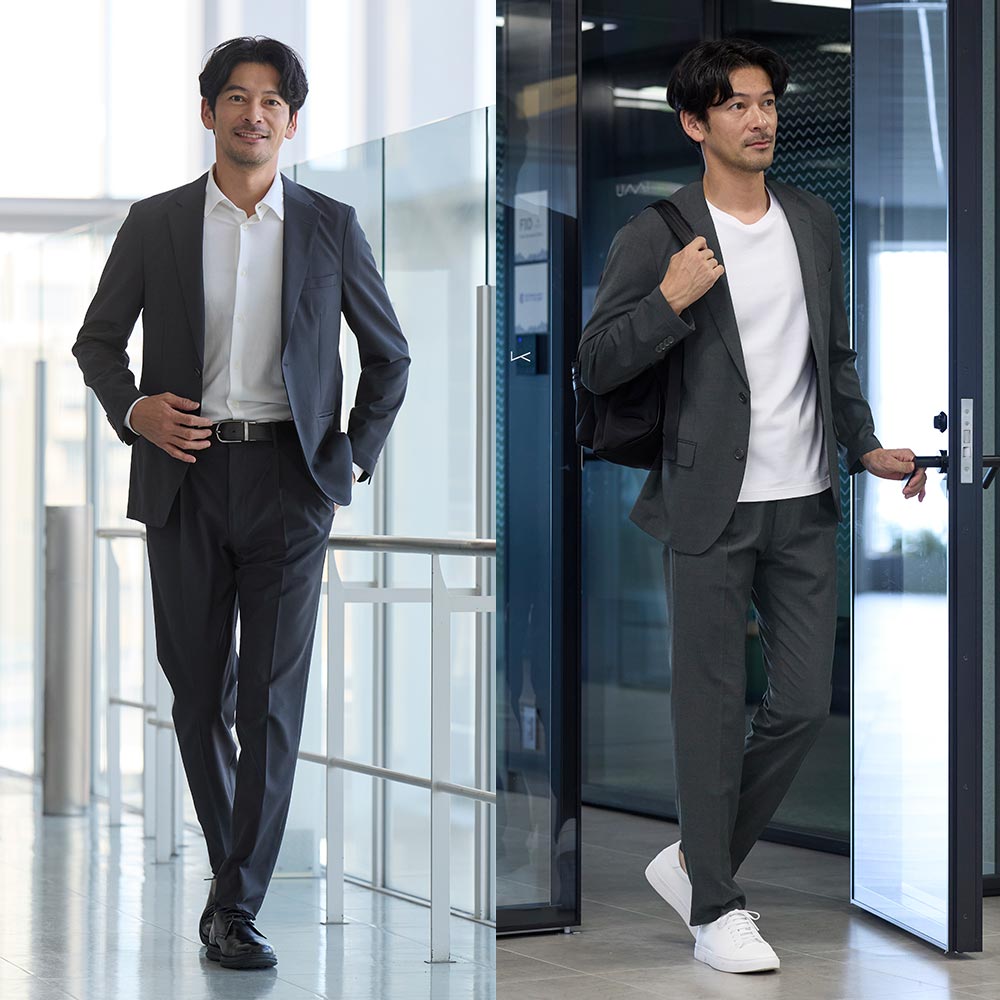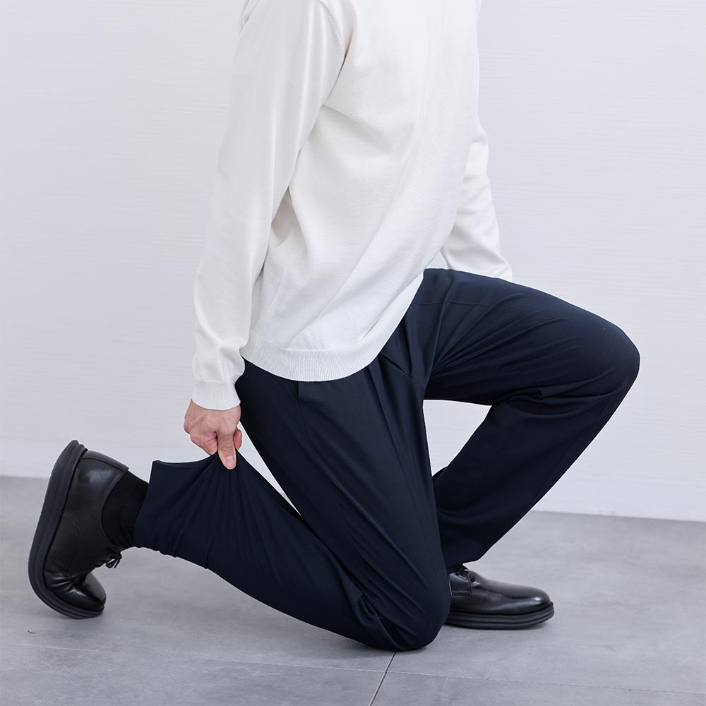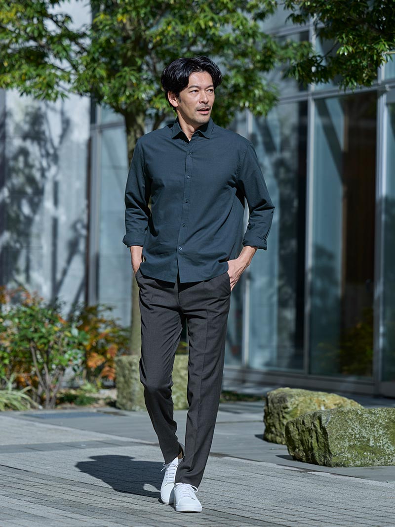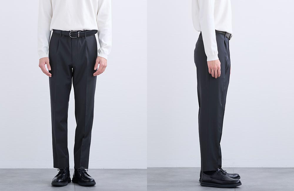 アイテム説明 春夏のビジネスシーンを快適に。上品に、涼しく過ごせる大人のテーパードパンツ CODEテーパード トロピカルウールの おすすめポイント 01. 春夏を涼やかで快適に過ごせる 自然な光沢で品のあるトロピカルウール素材を使用。 薄手でドライタッチな肌触りで、春夏の気温でも快適に過ごせます。温暖傾向にある日本の気候を考慮し、長い期間着用いただけます。 トロピカルウール素材とは 細い梳毛(そもう)糸を平織りで薄く織り上げた、高温多湿な地域向けに開発された春夏用のウール素材です。 通気性と清涼感に優れていることが魅力です。 ※通気性はございますが、下着が透ける心配はございません。 02. 清潔感を叶えるシルエット設計 AUEN独自のパターン設計により裾幅を細めに調整し、脚がすっきりと長く見えるバランスを構築しました。 股上はやや浅めに設定し、現代的でシャープな雰囲気に整えました。 03. 軽やかストレッチで動きやすい ストレッチ性に優れた素材で、スラックス特有の窮屈さを軽減してくれます。 通勤やデスクワーク、出張など様々な動きでも、一日中ストレスフリーな着心地で疲れにくいのが特徴です。 04. 上品さを引き立てるこだわりのデザイン 裾のまつり縫いやステッチレス仕様を採用し、無駄を削ぎ落としたミニマルなデザインに。 ビジネスシーンやハレの日でも清潔感のある印象にしてくれます。 おすすめの着こなしテクニック セットアップでコーディネートに迷わない 同素材のジャケットを合わせれば、上品な大人のセットアップコーデが簡単に完成。 あとはインナーを選ぶだけでOKなので、効率よくオフィススタイルやスマートな春夏の着こなしが完成します。 セット・ジャケット単品でもお買い求めいただけます CODEセットアップ トロピカルウール 2点セット CHECK CODEジャケット トロピカルウール CHECK 合わせるだけでコーデが完成おすすめインナー CODEシルクニット CHECK CODEオックスシャツ CHECK CODEロングスリーブTシャツ CHECK サイズ・素材 ウエスト 股上 股下 ヒップ もも幅 すそ幅 S 78.5 27 69.5 100.5 30 16 M 83 28 71.5 103 31 16.5 L 87 28.5 73 106 32 17 XL 91 29 75 110 33 17.5 ※表記サイズは実寸であり、個体差により誤差が生じる場合があります。 ※商品によっては洗濯タグにヌード寸法が記載されておりますが、実寸とは異なります。 伸縮性 あり ややあり なし 厚み 厚手 普通 薄手 透け感 あり ややあり なし 洗濯 洗濯OK ネット使用 手洗いのみ 表地 ポリエステル55%レーヨン21%ウール20%ポリウレタン4% 裏地 なし 生産国 ミャンマー 禁止事項 乾燥機使用×日向干し×漂白剤使用× 表示を隠す サイズにお悩みですか? AIに適正サイズを聞く 返品・交換は無料で安心 ご自宅でじっくりご試着いただけます。合わなければ送料負担なく返品できます。あなたにぴったりの一着と出会えるよう、お手伝いいたします。 コーディネート Model : 184㎝ / 72㎏ / L / ネイビー着用 信頼感を纏う、クリーンな装い ネイビーで統一された装いが、落ち着きと信頼感のある印象をつくります。 白シャツのクリーンさが際立ち、全体に清潔感をプラス。 シルエットもすっきりとしており、シンプルながらも品よくまとまっています。 CODEジャケット トロピカルウール CHECK CODEジャージーシャツ CHECK リバーシブルレザーベルト CHECK プレーントゥ ライトレザーシューズ CHECK Model : 184㎝ / 72㎏ / L / ネイビー着用 自然体で差がつく、落ち着いた印象づくり やわらかなトップスとすっきりしたパンツの組み合わせが、自然体でありながら整った印象をつくります。 全体のシルエットがきれいにまとまっているため、シンプルでも物足りなさを感じさせません。 足元をレザーで締めることで、程よい緊張感が加わります。 CODEシルクニット CHECK CODEオックスシャツ CHECK Salvatole Marra シンプル腕時計 CHECK デイリーユースコインローファー CHECK Model : 184㎝ / 72㎏ / L / チャコール着用 抜け感を効かせた、都会派シンプル チャコールをベースにまとめつつ、白インナーで軽さを取り入れた配色が印象的です。 かっちりしすぎない素材感が程よい抜けを生み、日常にも馴染みやすい仕上がり。 白スニーカーが全体を軽快に見せ、バランスよくまとまります。 CODEジャケット トロピカルウール CHECK オールブラックキャンバスリュックサック CHECK スマートスニーカー CHECK Model : 184㎝ / 72㎏ / L / チャコール着用 軽やかに歩く、大人のスマートカジュアル シャツの程よいフィット感と細身のパンツが、全体をすっきりと見せます。 ラフすぎないバランスが大人らしく、軽快さも感じられる仕上がり。 白スニーカーが抜け感をつくり、自然なこなれ感につながります。 Healthknit 3足セット CHECK スマートスニーカー CHECK スタッフコーディネート もっと見る