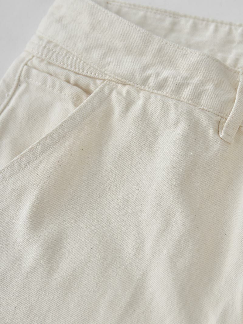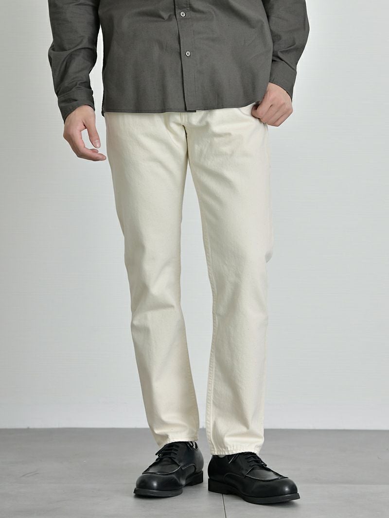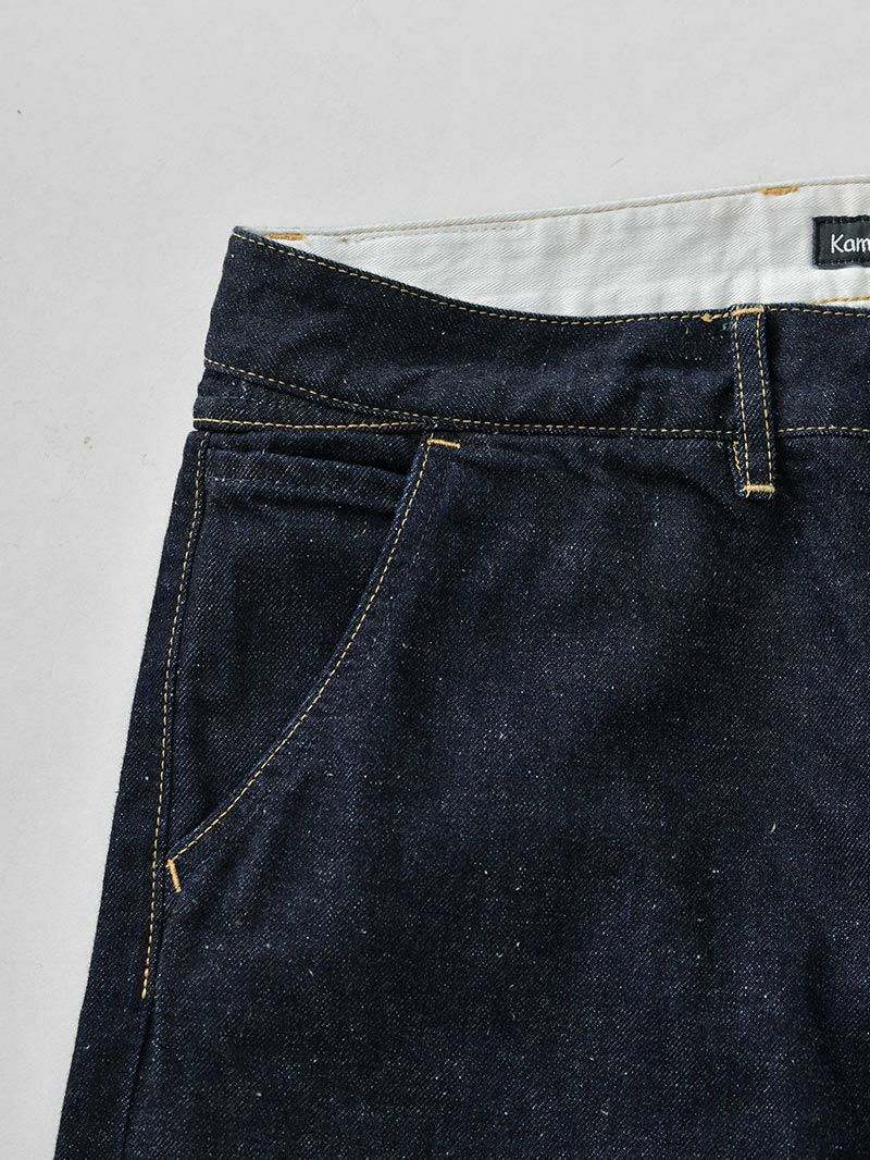 アイテム説明 エシカルファッションブランド 『鎌倉ジーンズ』 鎌倉発、古着から生まれ未来へ繋ぐ。構想3年、無二の風合いネップデニム。 考え抜かれたワークスタイルのデザインやサイズ感。いろんな着こなしができる、大人が着てきまるアイテムです。 もっと見る 『鎌倉ジーンズ』とは 鎌倉周辺地域の古着を原料にしたデニム、循環型社会を目指すブランド『鎌倉ジーンズ』です。 残布や残糸から作ったリサイクルデニムではなく、 鎌倉を含む湘南エリアで回収された古着を綿(ワタ)に戻してから糸にし、全行程完全オリジナルの独自デニムを開発。 何年もかけ試行錯誤を繰り返し、経糸のムラ糸と緯糸のネップ感のある独特な風合いを持つデニムが完成しました。 ピュアインディゴの濃色でロープ染めをしたこのデニムは着ていくことで色落ちやあたりの経年変化を楽しめます。生成りも綿カス残しと巻き縫いのパッカリング感であじが出ます。※写真の色落ちは製品での経年変化参考です。 鎌倉ジーンズの特徴 鎌倉市の布類の回収は年間1,048トン(令和3年度) 古着を再度衣料品にするリサイクルは、手間をかなりかけた状態でやっと少し出来るかどうかです。 白の綿の製品だけを分別し、繊維長をなるべく崩さないようにして反毛綿を生産。反毛綿を作るにあたり、縫い糸やネーム等も一緒に綿にしています。 そのため、第3者機関で確認した混率は、綿98.5%/ポリエステル1.5%で、この糸にネップ感があるのもその為でもあります。 ※カラー糸が稀に混入していることがありますがブランドネームのラメ糸と思われます。 紡績した糸をデニムの緯糸にして織って作った12オンスのオリジナルリサイクルデニム。 この生地の特徴は、古着から作ったことで出来たナチュラルなネップ感。ムラ糸使用のネップデニムはワーク系のボトム素材に向いており、デザインを考えるベースになっています。 3/1右上がりの綾組織で経糸7番のムラ糸に、経糸を10番のネップ糸にすることで見た目は重厚なデニムの存在感を出しつつ、楽に穿けるように少し軽めの12オンスにし、更に製品で洗いをかけることで、立体的な風合いと柔らかい履き心地にしています。 デニムパンツの特徴 革パッチにKamakura Jeansのロゴ焼印。 一緒におすすめ 鎌倉ジーンズ デニムワークコート CHECK 鎌倉ジーンズ ワークブルゾン CHECK サイズ・素材 ウエスト 股上 股下 ヒップ もも幅 すそ幅 XS 73 26 73.5 93 28 15.5 S 74.5 26.5 74 97.5 29 16 M 80.5 27 75 102 30.5 17 L 84 27.5 76.5 107 31 17.5 XL 89 28 77 111 32 18 XXL 93 28.5 79.5 115 33 18.5 ※表記サイズは実寸であり、個体差により誤差が生じる場合があります。 ※商品によっては洗濯タグにヌード寸法が記載されておりますが、実寸とは異なります。 伸縮性 あり ややあり なし 厚み 厚手 普通 薄手 透け感 あり ややあり なし 洗濯 洗濯OK ネット使用 手洗いのみ 表地 綿98% / ポリエステル2% 裏地 なし 生産国 日本 表示を隠す スタッフ試着レビュー サイズにお悩みですか? AIに適正サイズを聞く 返品・交換は無料で安心 ご自宅でじっくりご試着いただけます。合わなければ送料負担なく返品できます。あなたにぴったりの一着と出会えるよう、お手伝いいたします。 コーディネート Model:179㎝ / 66㎏ / L / インディゴ着用 ストレッチレイヤードタンクトップ CHECK 洗いざらしビンテージテイストシャツ CHECK HARUSAKU 奈良産 プレーンリブソックス CHECK チャンキーソールローファー CHECK Model:179㎝ / 66㎏ / L / インディゴ着用 鎌倉ジーンズ ワークブルゾン CHECK クールタッチスムースTシャツ CHECK Salvatole Marra シンプル腕時計 CHECK Model:179㎝ / 66㎏ / L / エクリュ着用 サマーコットンリネンシャツ CHECK クールタッチスムースTシャツ CHECK ナローリアルレザーベルト CHECK Uチップシューズ CHECK Model:179㎝ / 66㎏ / L / エクリュ着用 エアドライ オーシャンカラーシャツ CHECK ストレッチレイヤードタンクトップ CHECK HARUSAKU 奈良産 プレーンリブソックス CHECK スタッフコーディネート もっと見る