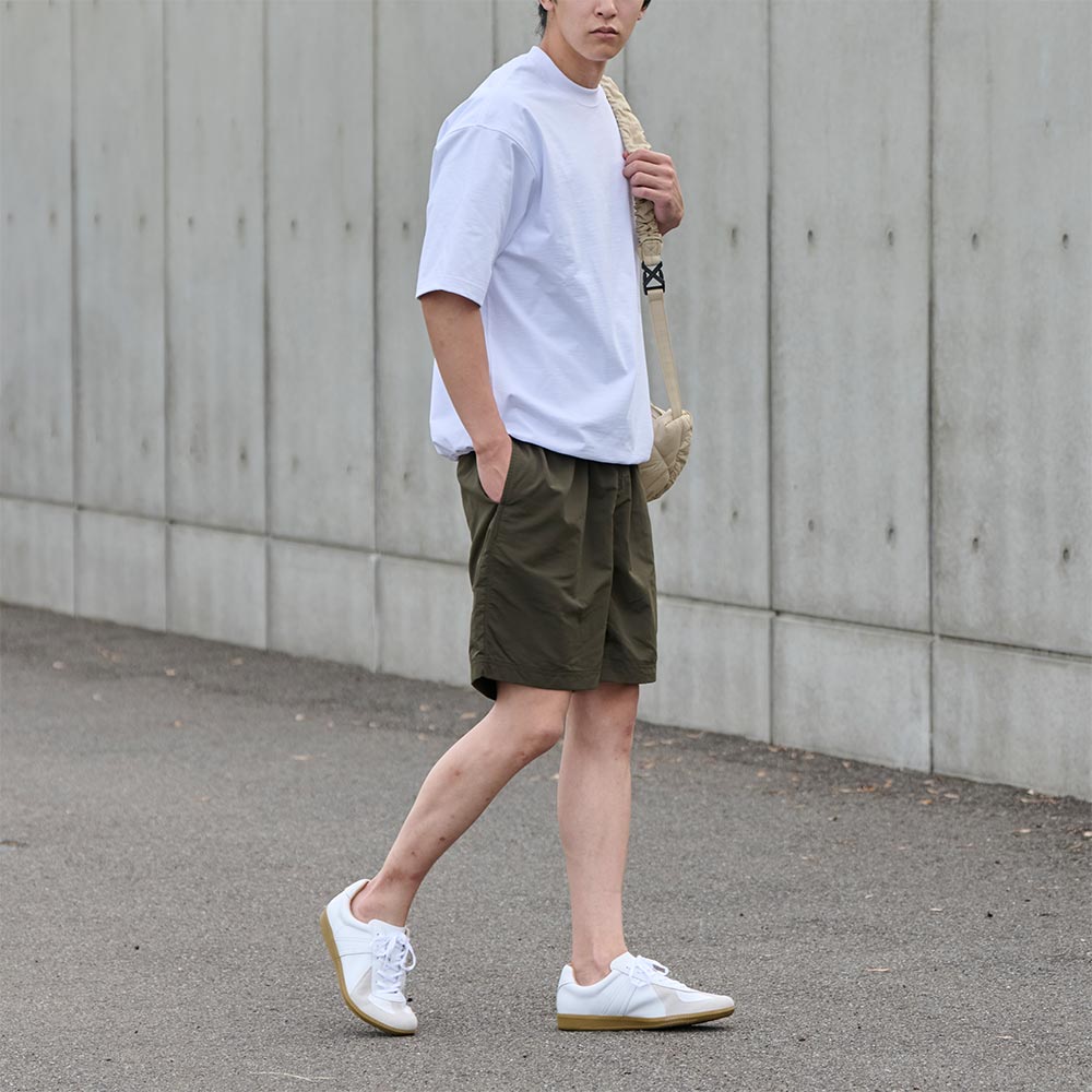 アイテム説明 タウンユースからアウトドア・スポーツシーンにも使えるマルチパーパスなナイロンショーツ シームレスに着用できるショーツ 年齢・性別問わずに着用できるシルエットに仕上げたナイロンショーツは、短すぎず絶妙な丈感と横に広がりすぎないサイジングにこだわりました。 カラー展開はタウンユースとしてコーディネートしやすい落ち着いたトーンを選定。 シンプルに見えて、アクセントのきいた一枚はこの夏の万能アイテムになること間違いなし。 もっと見る 気兼ねなく使えるナイロン素材 生地にはナイロン素材を採用。軽量性に非常に優れているのでアウトドアやスポーツシーンにも対応。 また、デイリーユースとしてもリラックスして着用でき、使いやすくついつい手にとってしまうショーツです。 幅広いシーンに対応できるデザイン ウエストはゴム+ドローコード付き。イージー仕様になっているので穿きやすく、過度な締め付けもないのでリラックスして着用していただけます。 フロントには、便利な樹脂製Dカン付き。キーチェーンやワイヤレスイヤホンなどを引っかけることができるデザインで カラビナと合わせてコーディネートすると今っぽい着こなしが可能です。 一緒におすすめ ツインゲートカラビナ CHECK サイズ・素材 ウエスト 股上 股下 ヒップ もも幅 すそ幅 S 64.5~100 31 13 55 33 30 M 68~105 31.5 15 57 35 32 L 71.5~106 32.5 17 58.5 36 34 XL 75.5~113 35 19 62 38 35.5 ※表記サイズは実寸であり、個体差により誤差が生じる場合があります。 ※商品によっては洗濯タグにヌード寸法が記載されておりますが、実寸とは異なります。 伸縮性 あり ややあり なし 厚み 厚手 普通 薄手 透け感 あり ややあり なし 洗濯 洗濯OK ネット使用 手洗いのみ 表地 ナイロン100% 裏地 なし 生産国 中国 表示を隠す サイズにお悩みですか? LINEでサイズ相談する 返品・交換は無料で安心 ご自宅でじっくりご試着いただけます。合わなければ送料負担なく返品できます。あなたにぴったりの一着と出会えるよう、お手伝いいたします。 コーディネート Model : 179㎝/66㎏/ L / ブラック(002)着用 定番ブラックショーツは、ナイロンの軽さとほのかなツヤ感で夏のアクティブシーンにぴったり。 ヴィンテージ風Tシャツとボリュームスニーカーで、ワントーンでも素材感とシルエットにしっかり差を。 Tシャツ1枚でもラフになりすぎず、キャンプや川遊びにも対応できる頼れるレジャーコーデ。 ワイドフィットタフTシャツ ビンテージ CHECK キルトショルダーバッグ CHECK Salvatole Marra クロノグラフ腕時計 CHECK Model : 179㎝/66㎏/ L / ブラック(002)着用 コバルトブルーのバンドカラーシャツが映える、爽やかショーツスタイル。 定番ブラックのナイロンショーツに白Tを効かせて、コントラストの強い配色にやわらかさをプラス。 色のつながりを意識した抜け感レイヤードは、カフェやモールでの休日にも好印象な着こなしに。 エアドライ バンドカラーシャツ CHECK クールタッチスムースTシャツ CHECK whoop'-de-doo'レザーベルトサンダル CHECK Model : 179㎝/66㎏/ L / オリーブ(033)着用 カーキ寄りのショーツに、白T×白スニでまとめた爽やか配色。 裾をキュッと絞れるスピンドルTは、ラフさを調整できて動きやすさも◎ キルト素材のショルダーで“ちょっといい感じ”を足せば、たくさん歩くテーマパークも、おしゃれも快適も抜かりなく決まります。 ヘビーウェイトスピンドルTシャツ CHECK キルトショルダーバッグ CHECK コートレザースニーカー CHECK Model : 179㎝/66㎏/ L / オリーブ(033)着用 ブラックポロでキレよくまとめた、大人のきれいめショーツスタイル。カーキ寄りのショーツで堅すぎず、白トートで抜け感を。 ローファーでしっかり引き締めて、家族やパートナーとのカフェやランチも好印象◎ 小物にカラビナを添えると“遊び心ある人”に見えるのもポイント。 スマートマルチポロシャツ CHECK キャンバス トートバッグ CHECK Healthknit 3足セット CHECK ツインゲートカラビナ CHECK Model : 179㎝/66㎏/ L / サックス(082)着用 軽やかなサックスショーツに、ネイビーポロで知的さと落ち着きのある印象に。 ドライタッチ素材は汗ばむ日も快適で、動きやすさも申し分なし。 ドライブや子どもとの外遊びにぴったりな、爽やかパパコーデ! ドライタッチポロシャツ CHECK REGiSTA撥水加工ボディバッグ CHECK ウェリントンサングラス 調光レンズ CHECK Salvatole Marra クロノグラフ腕時計 CHECK Model : 179㎝/66㎏/ L / サックス(082)着用 夏らしいサックスショーツに白Tで抜け感をつくって、黒小物で全体をキュッと引き締める。 サンダルやサングラスを合わせて、ラフだけど手抜きに見えない“ちゃんとしてる感”が◎ 両手が空く斜め掛けショルダーは、お祭りの屋台や花火でも大活躍。 ワイドフィットタフTシャツ CHECK キルトショルダーバッグ CHECK 日本製 コンチョ付きブレスレット CHECK EVAユーティリティサンダル CHECK スタッフコーディネート もっと見る