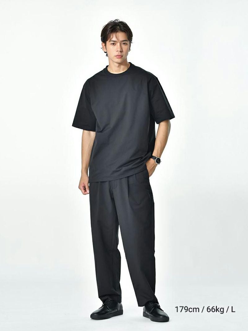 アイテム説明 腰と太ももにゆとりを持たせ、裾にかけてきれいなテーパードシルエットに仕上げた2タックのテーパードパンツです。 ワイドシルエットですが光沢のある黒で高級感があり、大人も使いやすいパンツです。 もっと見る ウエストのドローコードは両面出しができるようになっており、ベルトを付ける際は内側にしまうことも可能。 フロントとバックポケットはメッシュ仕上げになっていて通気性もあるので涼しく過ごすことが出来ます。 サイズ・素材 ウエスト 股上 股下 ヒップ もも幅 すそ幅 S 74~80 28 65 34.5 19.5 M 78~84 28.5 67 35.5 20 L 82~88 29 69 37 20.5 ※表記サイズは実寸であり、個体差により誤差が生じる場合があります。 ※商品によっては洗濯タグにヌード寸法が記載されておりますが、実寸とは異なります。 伸縮性 あり ややあり なし 厚み 厚手 普通 薄手 透け感 あり ややあり なし 洗濯 洗濯OK ネット使用 手洗いのみ 表地 ポリエステル100% 裏地 なし 生産国 中国 表示を隠す サイズにお悩みですか? AIに適正サイズを聞く 返品・交換は無料で安心 ご自宅でじっくりご試着いただけます。合わなければ送料負担なく返品できます。あなたにぴったりの一着と出会えるよう、お手伝いいたします。 コーディネート ブラック着用 Salvatole Marra クロノグラフ腕時計 CHECK ブラック着用 Salvatole Marra クロノグラフ腕時計 CHECK ブラック着用 ALTRM ジャストルーズジャケット CHECK whoop'-de-doo' ドライビングローファー CHECK スタッフコーディネート もっと見る