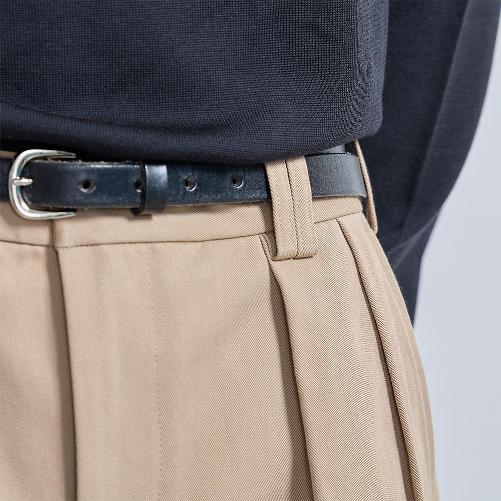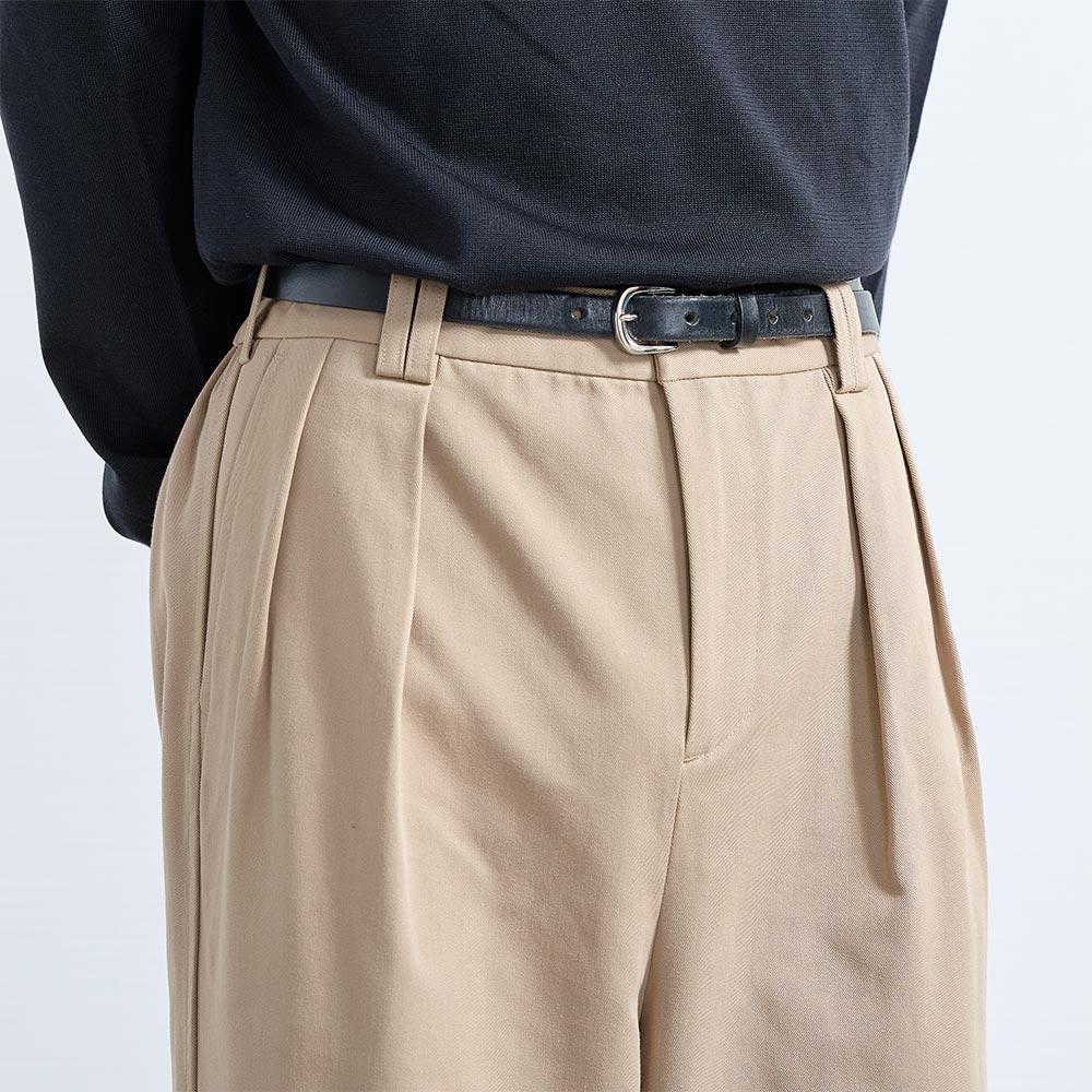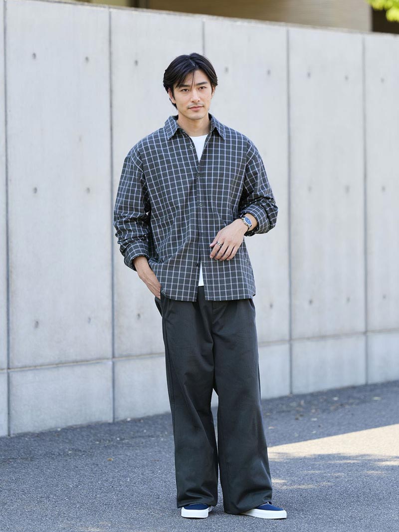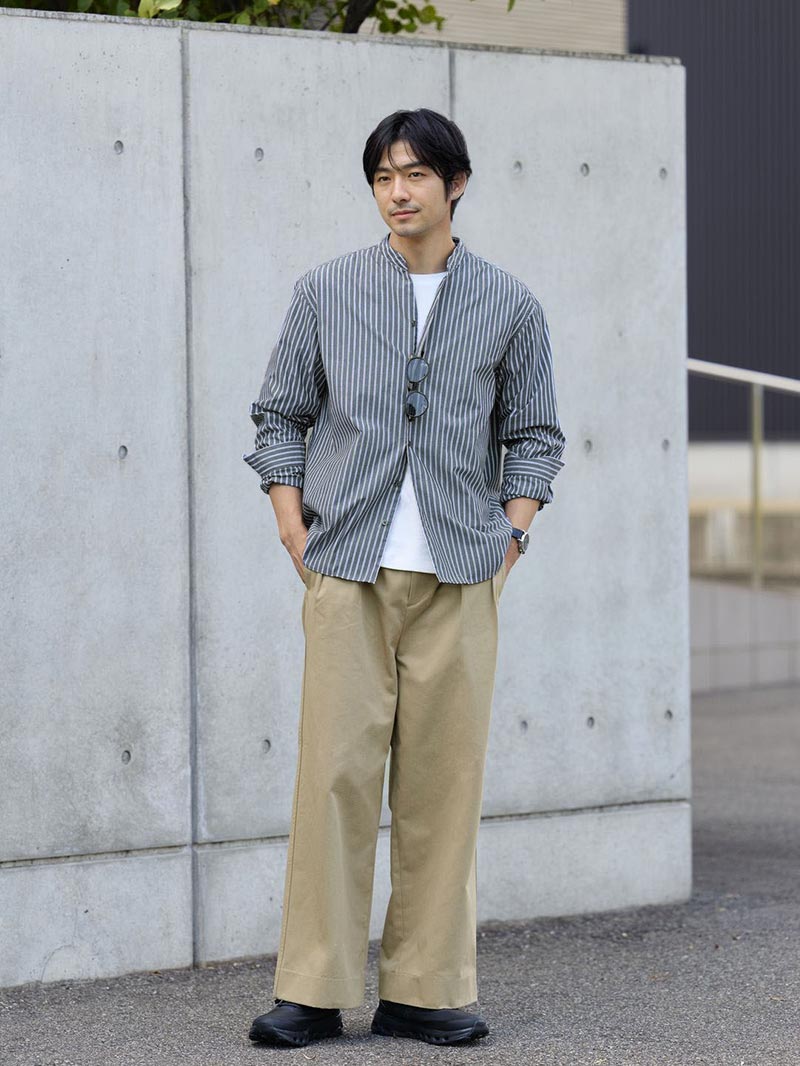 アイテム説明 余裕をまとう、動けるワイド 動きやすさと上質感を同時に叶える、ツータック立体×テーパード美脚。柔らかい余裕を纏い、1ランク上の毎日へ。 もっと見る 大人の余裕を感じるシルエット 太もも〜膝の可動域を解放しながら、見た目はスッと端正。ストレスフリーなのに手抜き感ゼロ、これが大人の余裕です。 シワになりにくいので清潔感が持続 毎日穿けるタフな生地でシワになりにくいです。 ツータックが織りなす立体美 フロントに刻んだ 2 本タックが腰まわりの圧迫を軽減し、奥行きのある表情をプラス。 ほど良い陰影が上品さを生み、ビジネスカジュアルの格を高めます。 ダブルループでひと差し違い ベルトループを二重に重ねたダブルループ仕様。耐久性を高める実用性はもちろん、視線を引くミニマルディテールとしてコーディネートのアクセントに。 体型を選ばず、シルエットが決まる ヒップと太ももを拾わないワイド設計に、裾へ向かう緩やかなテーパードライン。どんな体型でも脚をすっきり長く見せ、自然体の“かっこよさ”を引き出します。 同素材で揃えるテーパードもラインナップ テーパードチノパンツ CHECK サイズ・素材 ウエスト 股上 股下 ヒップ もも幅 すそ幅 S 79~86 35.5 62 107 34 26.5 M 82~90 36 64 110 34.5 27 L 84.5~94 36.5 66.5 113 36 27.5 XL 89.5~98 37 68 116 36.5 28 ※表記サイズは実寸であり、個体差により誤差が生じる場合があります。 ※商品によっては洗濯タグにヌード寸法が記載されておりますが、実寸とは異なります。 伸縮性 あり ややあり なし 厚み 厚手 普通 薄手 透け感 あり ややあり なし 洗濯 洗濯OK ネット使用 手洗いのみ 表地 ポリエステル68%綿32% 裏地 なし 生産国 中国 禁止事項 乾燥機使用×漂白剤使用× 表示を隠す サイズにお悩みですか? LINEでサイズ相談する 返品・交換は無料で安心 ご自宅でじっくりご試着いただけます。合わなければ送料負担なく返品できます。あなたにぴったりの一着と出会えるよう、お手伝いいたします。 コーディネート Model : 179㎝ / 66㎏ / L / ベージュ着用 秋らしさと爽やかさを両立した大人スタイル ベージュのワイドチノはブルー系のストライプシャツを合わせることで、秋らしくも爽やかな印象に。 シューズも全体の色合いに合わせてブラウンを選ぶことで、上品なワイドチノコーデが完成します。 バンドカラースキッパーストライプシャツ CHECK Salvatole Marra クロノグラフ腕時計 CHECK Model : 179㎝ / 66㎏ / L / ベージュ着用 ネッカチーフでこなれる秋の定番コーデ デニムシャツジャケットを羽織った、秋の定番コーデ。 なんかこなれて見える理由は、首元につけたネッカチーフです。 シンプルなコーデや、首元が寂しく感じるときは、アクセントに取り入れてみるのもおすすめです。 デニムシャツジャケット CHECK クールタッチスムースTシャツ CHECK Model : 179㎝ / 66㎏ / L / ネイビー着用 くすみカラーで魅せる大人のチェックシャツ チェックシャツを合わせたカジュアルコーデ。 上下くすみカラーにすることで、落ち着いた余裕のある雰囲気に仕上がります。 シャツはワンサイズ大き目を選んで、ゆったりとした着こなしがおすすめです。 ビエラ起毛チェックネルシャツ CHECK クールタッチスムースTシャツ CHECK Salvatole Marra クロノグラフ腕時計 CHECK Model : 179㎝ / 66㎏ / L / ネイビー着用 ローファーで格上げする大人のデニムコーデ デニムシャツを合わせたリラックス感のあるカジュアルコーデ。 足元はローファーを選んでキレイめ要素をプラスすると、大人っぽさを演出できます。 ラフになりすぎず、バランスの取れたスタイルにまとまりますよ。 ルーズシルエットデニムシャツ CHECK クールタッチスムースTシャツ CHECK Model : 179㎝ / 66㎏ / L / アイボリー着用 失敗なし!大人の白ボトムスコーデ 白系のワイドチノは、モノトーンでまとめると失敗なし◎スウェットの裾からインナーをチラ見せさせることで、こなれ感もプラスできます。 足元はスニーカーで軽さを出せば、大人のカジュアルスタイルが完成しますよ。 ヘビーウェイトトレーナー CHECK ハイゲージ長袖カットソー CHECK Salvatole Marra クロノグラフ腕時計 CHECK Model : 179㎝ / 66㎏ / L / アイボリー着用 レイヤードで軽さを出す大人ポロコーデ スキッパーのニットはチャコールを選んで、落ち着いた大人の雰囲気に。 インナーにはホワイトのTシャツをレイヤードすることで、軽さと清潔感をプラスするのがおすすめです。 足元は革靴でキリっと引き締めました。 クールタッチスムースTシャツ CHECK Salvatole Marra クロノグラフ腕時計 CHECK スタッフコーディネート もっと見る