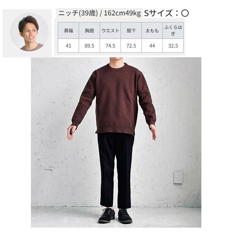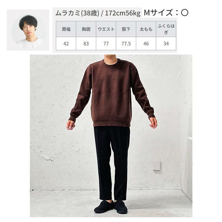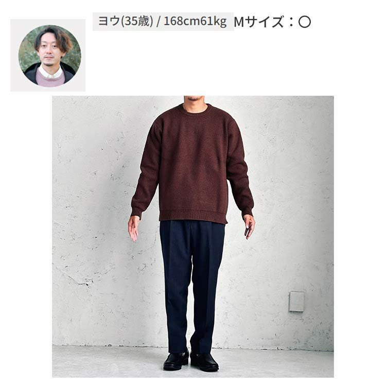 アイテム説明 まずは持っておくべき一着汎用性抜群のクルーネックニット 高級感溢れる素材で着心地抜群 「ハーフミラノリブ編み」で作られたこのニットは、編み目が目立たずキレイな表面感が魅力です。編み目の粗いニットに比べて、落ち着きのある上品な印象を与えてくれます。 もっと見る 左:ハイゲージニット/右:当アイテム ミラノリブの上品さと、しっかりと目が詰まった編地は、優れた耐久性を併せ持つオリジナル高品質ニットに仕上げました。 洗濯したあとも、しわや型崩れが少なくお手入れの手間がかかりません。 自宅で手軽に洗えてイージーケア 自宅で洗えるマシンウォッシャブル機能を備え、クリーニングに出す手間が省けます。毎日のお手入れも簡単で、忙しい生活に最適な一着です。 おすすめのアイテム ミラノリブジャケニット CHECK ミラノリブタートルネックニット CHECK LIGHT TECHインナーTシャツ CHECK サイズ・素材 肩幅 身幅 袖丈 着丈 S 45 55 57 62.5 M 47 58 58 65 L 50 60.5 59.5 67.5 XL 52 62 60 70 ※表記サイズは実寸であり、個体差により誤差が生じる場合があります。 ※商品によっては洗濯タグにヌード寸法が記載されておりますが、実寸とは異なります。 伸縮性 あり ややあり なし 厚み 厚手 普通 薄手 透け感 あり ややあり なし 洗濯 洗濯OK ネット使用 手洗いのみ 表地 アクリル52% ポリエステル31% ナイロン17% 裏地 なし 生産国 中国 表示を隠す サイズにお悩みですか? LINEでサイズ相談する 返品・交換は無料で安心 ご自宅でじっくりご試着いただけます。あわなければ送料負担なく返品できます。あなたにぴったりの一着と出会えるよう、お手伝いいたします。 コーディネート Model : 179㎝/66㎏/ L / テラコッタ着用 LIGHT TECHインナーTシャツ CHECK CODEテーパード ウィンター CHECK Uチップシューズ CHECK リバーシブルマフラー CHECK Model : 179㎝/66㎏/ L / テラコッタ着用 テクニカル2WAYマウンテンパーカー CHECK LIGHT TECHインナーTシャツ CHECK CODEセミワイドパンツ ルーズ CHECK Model : 179㎝/66㎏/ L / アイボリー着用 LIGHT TECHインナーTシャツ CHECK コーデュロイ ストレートパンツ CHECK ナローリアルレザーベルト CHECK Model : 179㎝/66㎏/ L / アイボリー着用 メルトンチェスターコート CHECK LIGHT TECHインナーTシャツ CHECK CODEテーパード ウィンター CHECK Uチップシューズ CHECK スタッフコーディネート もっと見る