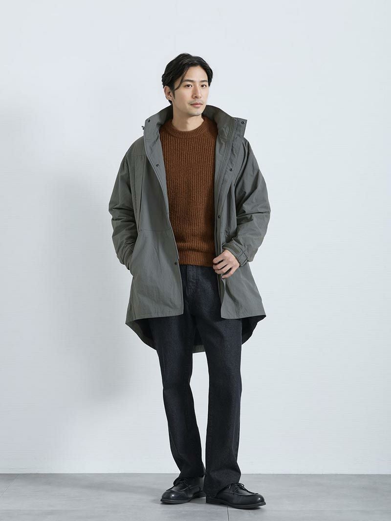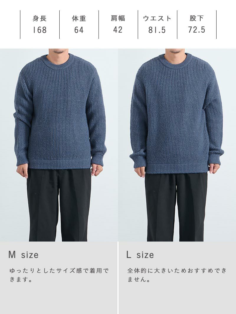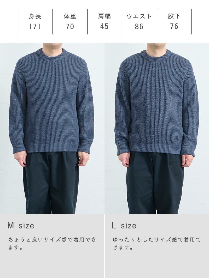 まずサイズで迷いました。LINE で相談したところ XL を提案されましたが、写真を見る限り、ゆったりしすぎている様に感じました。結局写真と自分の判断を信じて M をチョイス、正解でした(私自身、ニットとは言え、少しタイト目が好みなので、ゆったり着たい方は L or XL でも良いと思います)。予想していたより少し厚手でしたが、ニットらしくて良い質感です。またブラウン色も今年のトレンドカラーに合った感じで、良い買い物ができたと思っています。CODE パンツやデニムと合わせて楽しみたいです。