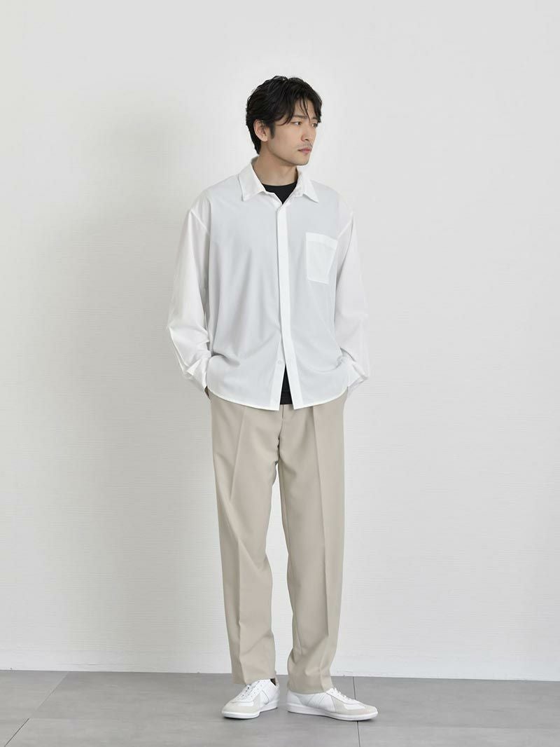 アイテム説明 動きやすく、心地よく。毎日着たくなる一枚 動きやすさとスタイリッシュさを兼ね備えた、スムース生地のノースリーブシャツ。スムース編みによる程よい伸縮性と、やわらかくなめらかな肌触りが魅力で、日常の動きにも自然にフィットします。 吸水速乾性に優れているため、汗ばむ季節も快適な着心地をキープ。さらにUVケア機能付きで、夏の日差しの下でも安心です。 もっと見る 首元にも、さりげないこだわりを 首元は共生地を使用し、見た目の統一感を持たせながら、コバステッチを施すことで強度をプラス。 シンプルなデザインながら、素材感と仕立ての良さが際立ちます。 アームホールと裾部分には、強度の高い縫製を丁寧に施すことによって、型くずれしにくく、長く着ても安心の仕上がりに。動きの多いシーンでも縫い目がヨレにくく、見た目の美しさと耐久性を両立しています。 サイズ・素材 肩幅 身幅 袖丈 着丈 S 36 48.5 - 62 M 38 50 - 65 L 40.5 53.5 - 68 XL 43.5 55.5 - 71 ※表記サイズは実寸であり、個体差により誤差が生じる場合があります。 ※商品によっては洗濯タグにヌード寸法が記載されておりますが、実寸とは異なります。 伸縮性 あり ややあり なし 厚み 厚手 普通 薄手 透け感 あり ややあり なし 洗濯 洗濯OK ネット使用 手洗いのみ 表地 ポリエステル100% 裏地 なし 生産国 ミャンマー 表示を隠す スタッフ試着レビュー サイズにお悩みですか? AIに適正サイズを聞く 返品・交換は無料で安心 ご自宅でじっくりご試着いただけます。合わなければ送料負担なく返品できます。あなたにぴったりの一着と出会えるよう、お手伝いいたします。 コーディネート Model : 179㎝/66㎏/ XL/ホワイト着用 スキッパードレスシャツ CHECK CODEワイド CHECK Model : 179㎝/66㎏/ XL/ホワイト着用 サマーコットンリネンシャツ CHECK ブラックスリムパンツ 旧型 CHECK チャンキーソールローファー CHECK Model : 179㎝/66㎏/ XL/ブラック着用 テックコーチシャツ CHECK CODEテーパード テック CHECK Model : 179㎝/66㎏/ XL/ブラック着用 比翼仕立てタイプライターシャツ CHECK CODEテーパード CHECK コートレザースニーカー CHECK Model : 179㎝/66㎏/ XL/スミ着用 ストライプシャツ CHECK CODEテーパード CHECK Uチップシューズ CHECK Model : 179㎝/66㎏/ XL/スミ着用 エアドライ オーシャンカラーシャツ CHECK ワイドバルーンパンツ[セットアップ対応] CHECK Model : 179㎝/66㎏/ XL/グレイッシュブルー着用 リラクシングバンドカラーシャツ CHECK タックワイドパンツ CHECK チャンキーソールローファー CHECK Model : 179㎝/66㎏/ XL/グレイッシュブルー着用 長袖プレミアムコットンTシャツ CHECK CODEテーパード デニム CHECK Uチップシューズ CHECK スタッフコーディネート もっと見る