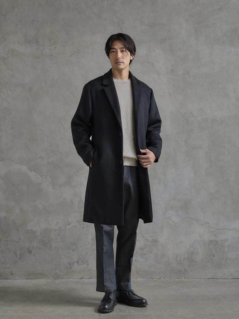 ブラックコートのシックで上品な雰囲気は、大人の落ち着きを感じさせてくれるアイテム。
