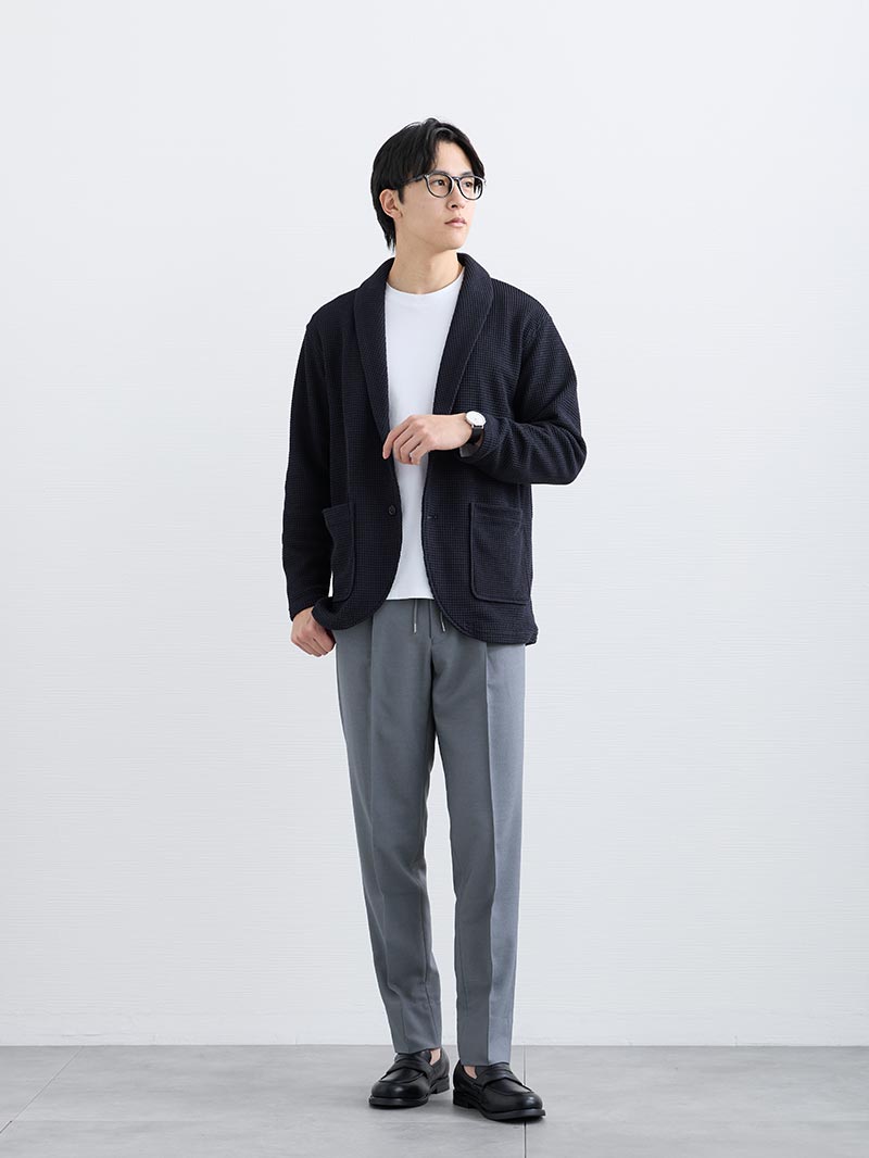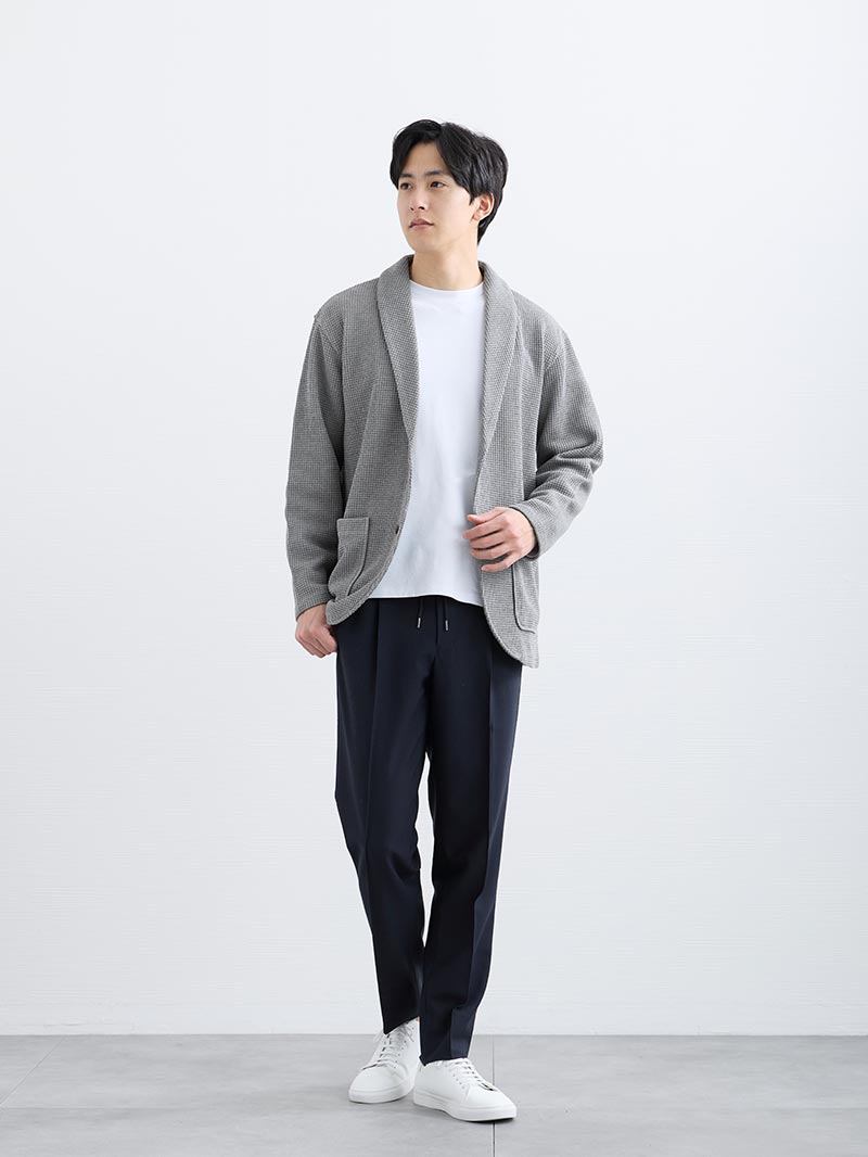 アイテム説明 清潔感も、快適さも、両方が叶う春のカーディガン×Tシャツセット きちんと感は欲しい。でも、リラックス感も欲しい。 そんな方におすすめの2点セットです。 軽やかな着心地で、室内外の寒暖差にも対応。 それぞれ単品でも着回せるので、季節の変わり目でも調整しやすく、仕事から休日まで幅広いシーンに馴染みます。 「重ね着が苦手」「何を合わせればいいか分からない」 そんな方でも、これだけで大人らしい清潔感と、程よいこなれ感を両立できます。 対象アイテム 単品でもお買い求めいただけます ワッフルショールカーディガン CHECK CODEロングスリーブTシャツ CHECK プラスするだけでコーデ完成 CODEイージーパンツ CHECK プレーントゥ ライトレザーシューズ CHECK コーディネート Model : 179㎝ / 66㎏ / L / Dネイビー着用 清潔感を引き立てる上品スタイル 落ち着きのあるアイテム選びで清潔感を引き立て、オフィスにも馴染むスタイルに。 メガネや革靴など上品な小物を合わせれば、きちんと感がより際立ちます。 CODEイージーパンツ CHECK Salvatole Marra シンプル腕時計 CHECK デイリーユースコインローファー CHECK Model : 179㎝ / 66㎏ / L / 杢グレー着用 春を感じる大人の爽やか配色 明るい杢グレーにネイビーを効かせて、全体をすっきり引き締め。 春らしい配色で季節感もあり、清潔感のある好印象スタイルに仕上がります。 CODEイージーパンツ CHECK Salvatole Marra シンプル腕時計 CHECK スマートスニーカー CHECK 注意事項 購入時の注意事項 本商品はセット販売のため、カラー・サイズの組み合わせは固定となっており、各アイテムごとにお選びいただくことはできません。 加工に関する注意事項 裾直し・袖直し等の加工を施した商品が含まれる場合、セット商品全体の返品・交換はお受けできません。 加工対応の可否は商品によって異なります。詳細は各商品ページをご確認ください。 返品時の注意事項 【セット商品全て】のみお受けいたします。(一部返品はお受けできません) 【返品交換について】をご確認の上、お手続きをお願いいたします。 返品交換について確認する 交換時の注意事項 ※通常商品の交換対応とはお手続きが異なりますのでご注意ください。 サイズ交換は一部の商品についてもお受けいたします。 交換をお受けできるのはサイズのみとなっており、カラーは固定となっております。 交換在庫の有無を事前に確認いたしますので、下記の専用フォームよりお問い合わせください。 お問い合わせ後に在庫の有無とお手続きに関するメールをお送りいたしますので、しばらくお待ちください。 お問い合わせはこちらから 交換在庫がなくご希望に添えない場合がございます。ご了承ください。 セット商品は予告なく販売終了する場合がございます。 サイズにお悩みですか? AIに適正サイズを聞く