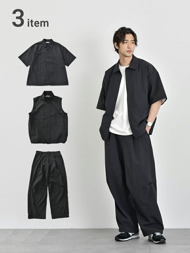 “ガジェット感覚”で揃えたくなる都会的セットアップ 同素材のアイテムを組み合わせるだけで、洗練された大人のセットアップスタイルが完成。忙しい朝でもコーディネートに悩まず、スムーズに準備が整います。 統一感のある着こなしが清潔感と信頼感を演出し、出張や移動の多い日も快適な着心地をキープ。オフィスからプライベートまで、幅広いシーンで品良くスマートに着こなせる一着です。 ※本商品は、ベスト・シャツ・パンツの3点セットです。 カットソー・シューズはコーディネート参考商品となります。 アイテムについて 単品でもお求めいただけます テックジップベスト アイテムを見る テックコーチシャツ アイテムを見る テックワイドパンツ アイテムを見る コーディネート コーディネート ✕ model 179㎝/66㎏/ L セット内容のシャツ・ボトム着用 アイテムを見る アイテムを見る アイテムを見る model 179㎝/66㎏/ L セット内容のベスト・ボトム着用 アイテムを見る アイテムを見る アイテムを見る model 179㎝/66㎏/ L セット内容のボトム着用 アイテムを見る アイテムを見る アイテムを見る アイテムを見る 注意事項 注意事項 ✕ 購入時の注意事項 お届けするアイテムのサイズ・カラーは固定となっており、各アイテムごとにお選びいただくことはできません。【返品交換について】をご確認の上、お手続きをお願いいたします。 返品時の注意事項 【セット商品全て】のみお受けいたします。(一部返品はお受けできません) 交換時の注意事項 ※通常商品の交換対応とはお手続きが異なりますのでご注意ください。 サイズ交換は一部の商品についてもお受けいたします。 交換をお受けできるのはサイズのみとなっており、カラーは固定となっております。 交換在庫の有無を事前に確認いたしますので、下記の専用フォームよりお問い合わせください。 お問い合わせ後に在庫の有無とお手続きに関するメールをお送りいたしますので、しばらくお待ちください。 お問い合わせはこちらから 交換在庫がなくご希望に添えない場合がございます。ご了承ください。 セット商品は予告なく販売終了する場合がございます。