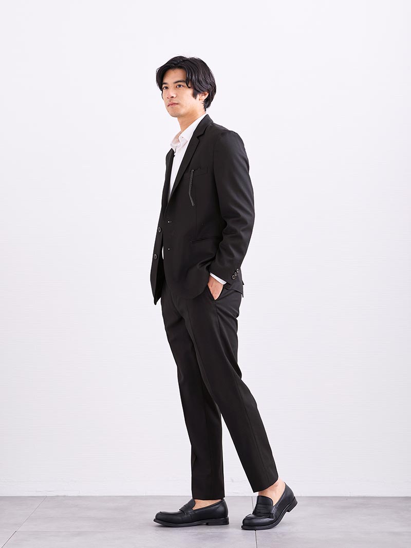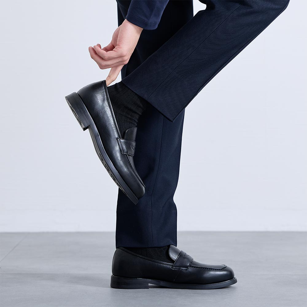 アイテム説明 上品なのに快適な履き心地本革を超える耐久性をもつ一足 デイリーユースコインローファーの おすすめポイント 01. ビジカジに使える上質な見た目と機能性 本革のような上品なしぼ感のある素材を使った、定番のコインローファーデザイン。 本革を超える耐久性と耐水性を備え、長く愛用できる一足。ビジカジスタイルの足元を引き締めます。 02. 雨の日も安心のグリップ力 ブラックのラバーソールを採用し、濡れた路面でも滑りにくい安定感を実現。 耐久性にも優れているため、デイリーユースでも安心して履き続けられます。 天候を気にせず、毎日快適に歩けます。 03. 脱ぎ履きラクな履き口広め設計 履き口を広めに設計し、足入れしやすい開口部設計で、すっきりとしたドレッシーな見た目も実現しました。 靴ひもを結ぶ手間もなく、忙しい朝もストレスフリー。毎日頼れる相棒です。 サイズ・素材 靴底 横幅 かかと高 ヒール 26.0cm 28.2 10.1 7.3 2.5 27.0cm 29.2 10.4 7.5 2.5 28.0cm 30.2 10.7 7.7 2.5 ※表記サイズは実寸であり、個体差により誤差が生じる場合があります。 ※商品によっては洗濯タグにヌード寸法が記載されておりますが、実寸とは異なります。 表地 アッパー:人口皮革ソール:合成底 生産国 中国 表示を隠す サイズにお悩みですか? AIに適正サイズを聞く 返品・交換は無料で安心 ご自宅でじっくりご試着いただけます。合わなければ送料負担なく返品できます。あなたにぴったりの一着と出会えるよう、お手伝いいたします。 コーディネート Model : 182㎝ / 70㎏ / 28.0cm / ブラック着用 ローファーで仕上げる軽快セットアップ セットアップのきちんとコーデは、ローファーを合わせてバランスを調整。 かっちりしすぎない大人の余裕を感じさせるスタイルに仕上げました。 春夏は足首を見せて、軽快さをプラスするのもおすすめです。 CODEテーラードジャケット ウールブレンド 通年用 CHECK CODEジャージーシャツ CHECK CODEテーパード ウールブレンド 通年用 CHECK Salvatole Marra シンプル腕時計 CHECK Model : 182㎝ / 70㎏ / 28.0cm / ブラック着用 足元で引き締める快適オフィススタイル 程よくきちんと感のあるローファーは、カーディガンとイージーパンツの肩肘張らないオフィスコーデとも好相性。 リラックス感はありながらも、足元を引き締めてラフすぎない大人の印象に仕上げました。 ワッフルカーディガン CHECK CODEオックスシャツ CHECK CODEイージーパンツ CHECK リバーシブルレザーベルト CHECK スタッフコーディネート もっと見る