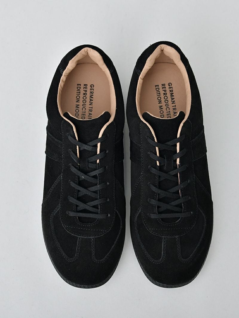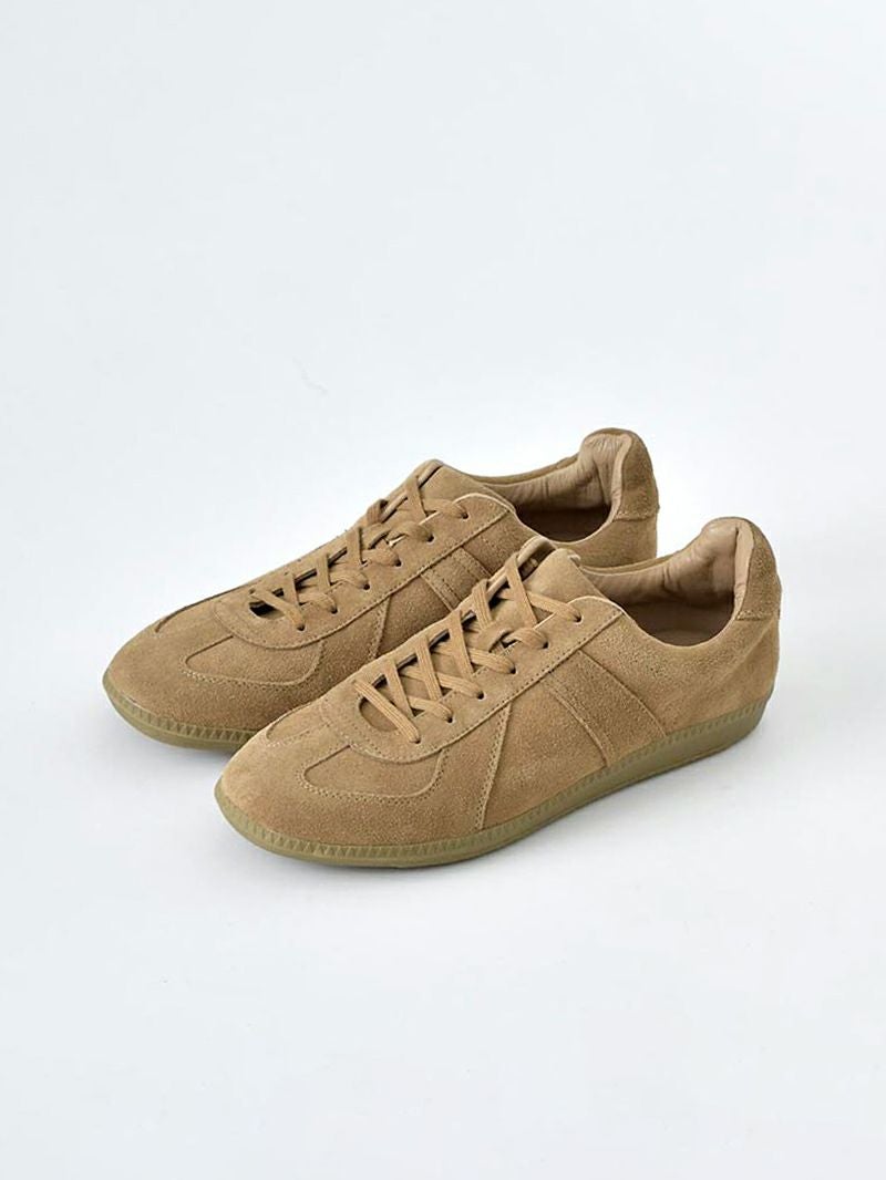 アイテム説明 クラシックなデザインとヴィンテージ感を融合させた、定番のユニセックススニーカー シンプルかつスタイリッシュ。どんなコーデにも合う万能スニーカー クラシックでミニマルなデザインが魅力で、男女問わず使えるユニセックススタイルです。ヴィンテージ感漂うシルエットは、カジュアルからオフィスカジュアルまで幅広く活用でき、洗練されたコーディネートを引き立てます。 もっと見る アッパーには本革とスウェード生地を採用 高品質なレザーとスウェードのコンビネーションにより、足をしっかり包み込みます。この組み合わせがもたらす耐久性と快適さにより、長時間履いてもストレスを感じさせません。足元から感じる高級感も、日常を特別なものにします。 快適な履き心地 軽量なラバーソールは、長時間の使用でも疲れにくいクッション性を提供します。また、滑りにくいアウトソールにより、どんな地面でも安心して歩くことができ、安全性にも優れています。 GERMAN TRAINER ジャーマントレーナーは、かつてドイツ軍のトレーニングシューズとして採用されていた背景を持つスニーカーです。現在ではファッション性の高い定番スニーカーとして、幅広い世代の方から支持されています。 素材違いのスニーカー コートレザースニーカー CHECK サイズ・素材 靴底 横幅 かかと高 ヒール 26.0~26.5cm(41) 28.5 10.0 7.3 2.7 26.5~27.0cm(42) 29 10.1 7.5 2.8 27.0~27.5cm(43) 29.5 10.3 7.5 2.8 ※表記サイズは実寸であり、個体差により誤差が生じる場合があります。 ※商品によっては洗濯タグにヌード寸法が記載されておりますが、実寸とは異なります。 ※当店のシューズは素材の特性上、製造工程や輸送時に一部しわが生じる場合がございます。これは商品の品質やご使用に影響を与えるものではなく、素材特有の風合いとしてお楽しみいただければと思います。 素材 アッパー :牛革スウェードレザー ライニング 豚革 ソール:合成ゴム 生産国 中国 表示を隠す サイズにお悩みですか? AIに適正サイズを聞く 返品・交換は無料で安心 ご自宅でじっくりご試着いただけます。合わなければ送料負担なく返品できます。あなたにぴったりの一着と出会えるよう、お手伝いいたします。 コーディネート Model : 179㎝/66㎏/ 27.0~27.5cm(43) / ブラック着用 グラフィックTシャツ CHECK キルトショルダーバッグ CHECK コットンツイル バケットハット CHECK Model : 179㎝/66㎏/ 27.0~27.5cm(43) / ブラック着用 サマーコットンリネンシャツ CHECK ストレッチレイヤードタンクトップ CHECK CODE4 テーパードパンツ(セットアップ対応) CHECK Model : 179㎝/66㎏/ 27.0~27.5cm(43) / ブラウン着用 スタッフコーディネート もっと見る