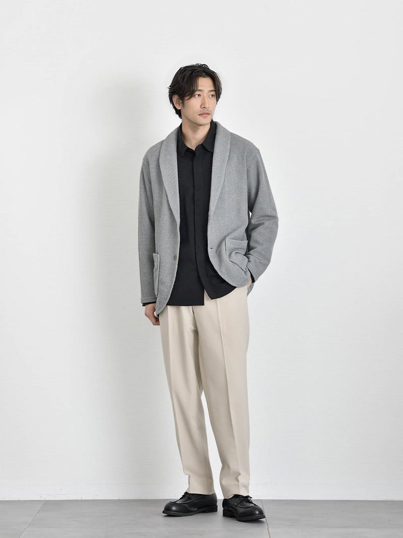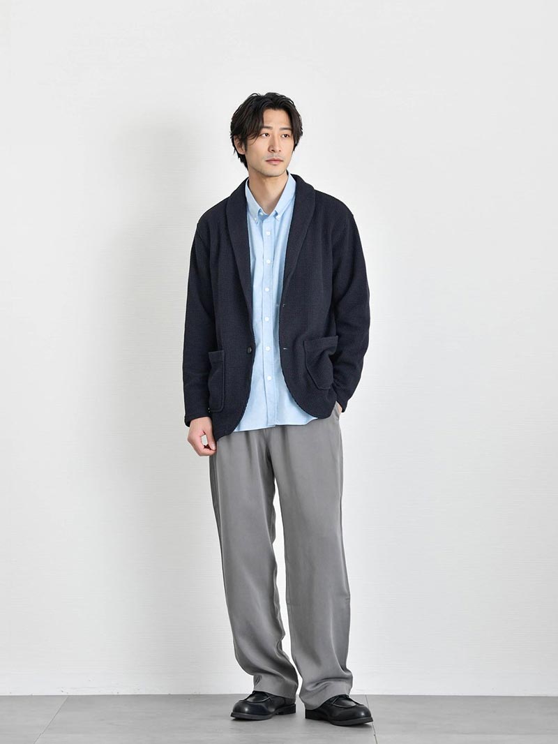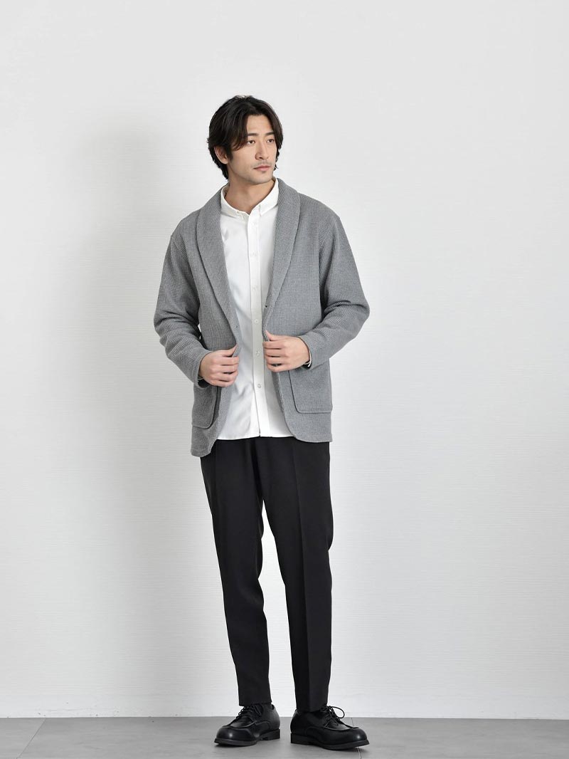 アイテム説明 カーディガンの気軽さとジャケットのきちんと感を一枚に 衿付きでキレイめなジャケットと、リラックス感があり気軽に羽織れるカーディガン。 2つの魅力を掛け合わせたこのアイテムは、仕事にも遊びにも使えるところが魅力です。 もっと見る ON/OFFどちらのシーンも使える カーディガンのような軽やかさと、ジャケットのような「きちんと感」を両立した一着。 職場では清潔感のある印象に、休日にはラフすぎない印象に。 厚みのあるワッフル生地 サラッとした通気性を維持しつつ、編み地を限界まで詰めることで、厚みと高級感をアップ。 「ポケットが欲しい」という声を受け、デザインを見直しました アウターとしてさらに活躍できる仕様に。 同素材の通常襟タイプ よりカジュアルに使える通常襟 ワッフルカーディガン CHECK サイズ・素材 肩幅 身幅 袖丈 着丈 S 45 52 54.5 69 M 47 53.5 55.5 71 L 48 55.5 56.5 73 XL 52 58 58 75.5 ※表記サイズは実寸であり、個体差により誤差が生じる場合があります。 ※商品によっては洗濯タグにヌード寸法が記載されておりますが、実寸とは異なります。 伸縮性 あり ややあり なし 厚み 厚手 普通 薄手 透け感 あり ややあり なし 洗濯 洗濯OK ネット使用 手洗いのみ 表地 ポリエステル59%綿41% 裏地 なし 生産国 中国 禁止事項 乾燥機使用×漂白剤使用× 表示を隠す サイズにお悩みですか? AIに適正サイズを聞く 返品・交換は無料で安心 ご自宅でじっくりご試着いただけます。合わなければ送料負担なく返品できます。あなたにぴったりの一着と出会えるよう、お手伝いいたします。 コーディネート Model : 179㎝ / 66㎏ / L / Dネイビー着用 シンプルに効かせる大人配色 カーディガンを開けて着ると黒のインナーがしっかり見え、全体がすっきりとした印象に。 デニムの程よいラフさが加わり、落ち着きのあるカジュアルスタイルにまとまります。 ハイゲージ長袖カットソー CHECK ストレートジーンズ CHECK Model : 179㎝ / 66㎏ / L / Dネイビー着用 アイテムや色で魅せる秋のオフィカジ カジュアルなカットソーには、テーラードジャケットぽさのあるカーディガンでキレイめ要素を足すのがおすすめ。 ネイビーと白の配色も清潔感を与えるため、ビジネスシーンにもってこいなコーデに仕上がります。 ハイゲージ長袖カットソー CHECK CODEテーパードパンツ ウールブレンド 通年用 CHECK Model : 179㎝ / 66㎏ / L / 杢グレー着用 秋はブラウンで季節感のある装いに ワッフル生地のカーディガンは、無難になりがちなオフィカジコーデに、さりげなくアクセントをプラスしてくれるためおすすめ。 パンツとシューズをブラウン系でまとめることで、秋らしい雰囲気も纏うことができます。 ハイゲージ長袖カットソー CHECK CODEテーパード ウィンター CHECK 2wayマルチトートバッグ CHECK Model : 179㎝ / 66㎏ / L / 杢グレー着用 色合わせが肝。大人の柄シャツコーデ 主張が少ないワッフル生地は、柄シャツとの組み合わせもおすすめ。 ごちゃつくのが気になる方は、カーディガンとシャツの色をグレー系で統一することで、まとまりのある着こなしに仕上がります。 バンドカラースキッパーストライプシャツ CHECK テーパードチノパンツ CHECK スタッフコーディネート もっと見る