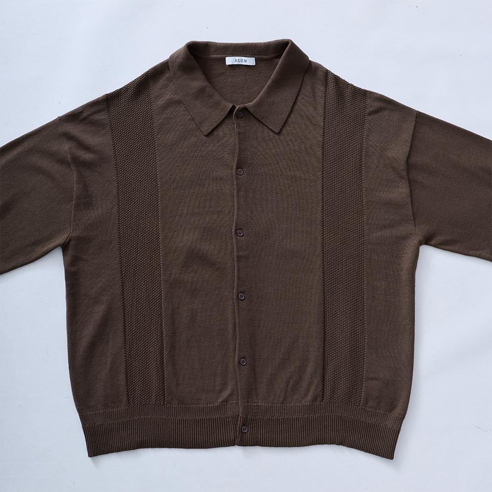 アイテム説明 襟付きの上品なシャツカーディガン 主張しすぎないがこだわりが見える身頃、裾、袖口の編み変えデザインが最大の特徴。 もっと見る 編みのデザインを3カ所に配置 身頃、袖口にはカノコ編み、裾には2段階の太さリブ編みを配置し、それぞれがアクセントになるので一枚で羽織ってもサマになる。 サイズ・素材 肩幅 身幅 袖丈 着丈 S 63 63 54 65 M 64.5 65.5 56 67.5 L 66.5 66 57 68.5 XL 68.5 69 58.5 70.5 ※表記サイズは実寸であり、個体差により誤差が生じる場合があります。 ※商品によっては洗濯タグにヌード寸法が記載されておりますが、実寸とは異なります。 伸縮性 あり ややあり なし 厚み 厚手 普通 薄手 透け感 あり ややあり なし 洗濯 洗濯OK ネット使用 手洗いのみ 表地 綿100% 裏地 なし 生産国 中国 禁止事項 乾燥機使用×日向干し×漂白剤使用× 表示を隠す サイズにお悩みですか? AIに適正サイズを聞く 返品・交換は無料で安心 ご自宅でじっくりご試着いただけます。合わなければ送料負担なく返品できます。あなたにぴったりの一着と出会えるよう、お手伝いいたします。 コーディネート Model : 179㎝ / 66㎏ / L / コーヒー着用 コーヒーカラーで楽しむ抜け感カジュアル コーヒーカラーがほどよい抜け感を演出。 ブラックのストレートパンツで引き締めることで、リラックス感がありながらも落ち着いた雰囲気に仕上がります。 CODEストレートパンツ CHECK Salvatole Marra シンプル腕時計 CHECK Model : 179㎝ / 66㎏ / L / コーヒー着用 軽やかに映えるリラックスコーデ アイボリーチノと組み合わせることで、コーヒーカラーが明るく柔らかな印象に。 爽やかさのある配色が軽やかに映り、清潔感を感じさせるスタイルになります。 ワイドチノパンツ CHECK Salvatole Marra シンプル腕時計 CHECK Model : 179㎝ / 66㎏ / L / バーガンディー着用 深みバーガンディーで魅せる上品カジュアル 深みのあるバーガンディーがコーデのアクセントになり、華やかさを添えます。 明るいトーンのパンツと合わせることで色合いにメリハリが生まれ、季節感を感じるシックな印象になります。 ワイドチノパンツ CHECK Salvatole Marra シンプル腕時計 CHECK Model : 179㎝ / 66㎏ / L / バーガンディー着用 落ち着きカラーで魅せるスマートスタイル バーガンディーとネイビーの組み合わせで落ち着いた印象に。 色味がまとまることで全体がすっきりと見え、スマートさを感じるコーデに仕上がります。 CODEテーパード CHECK Salvatole Marra シンプル腕時計 CHECK スタッフコーディネート もっと見る