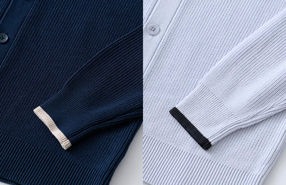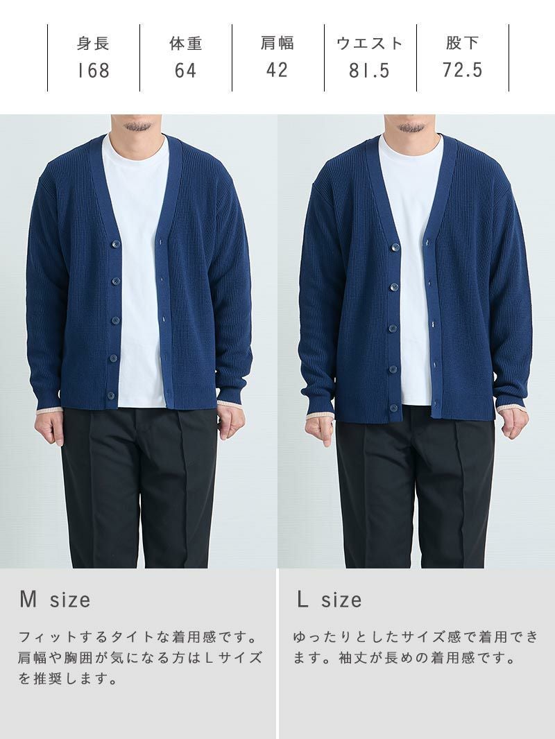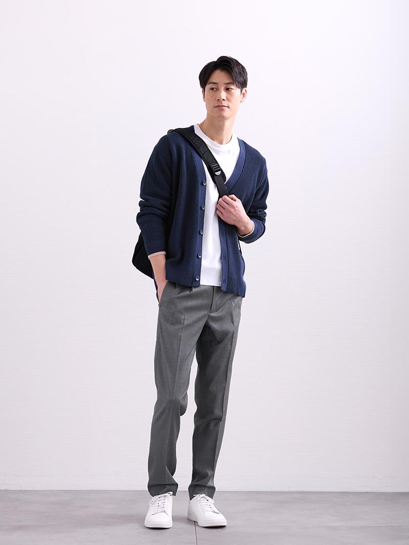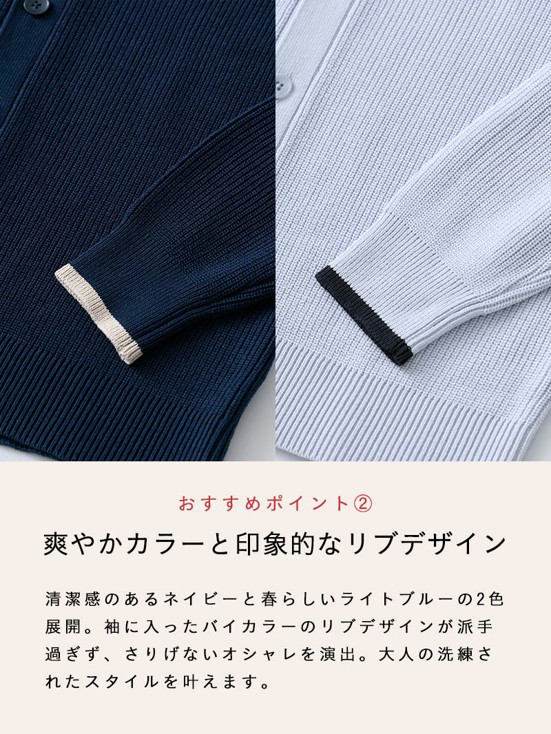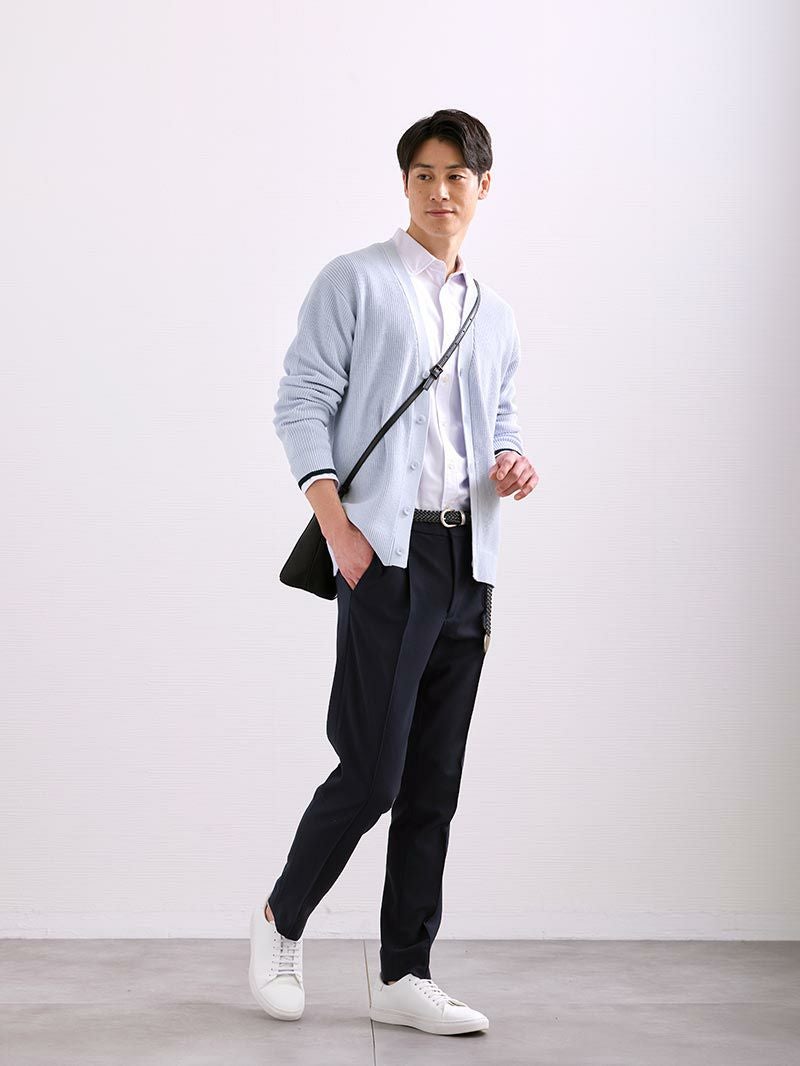 アイテム説明 重くなりすぎず暖かい脱ベーシックな差別化カーディガン 畔編みニットカーディガンの おすすめポイント 01. 季節の変わり目に使いやすい一枚 凹凸感のある畔編みで通気性を確保し、軽やかな印象に。 立体的な編み目が空気を含むことで程よい保温性も実現。 重くなりすぎず暖かい、快適な着心地で季節の変わり目に活躍する一枚です。 畔編み(あぜあみ)とは 表目と裏目を交互に編むことで縦に畝(うね)のような凹凸を作り出すニットの編み方。 高い伸縮性と厚み、保温性、型崩れしにくい丈夫さが特徴です。 02. 爽やかカラーと印象的なリブデザイン 清潔感のあるネイビーと春らしいライトブルーの2色展開。 袖に入ったバイカラーのリブデザインが派手過ぎず、さりげないオシャレを演出。 大人の洗練されたスタイルを叶えます。 03. 自宅で洗えるから毎日着たくなる 自宅で気軽に洗濯できるイージーケア仕様。 ドライタッチ素材で、洗濯後もサラリとした肌触りが続きます。 お手入れ簡単で朝のコーデに迷ったとき、つい手を伸ばしたくなる一枚です。 おすすめの着こなしテクニック 中に合わせるアイテムはシンプルに インナーはシンプルなアイテムを選ぶのがおすすめ。 袖元のデザインがさりげないアクセントになり、主張しすぎず着こなしを格上げします。 きれいめからカジュアルまで幅広く対応する一枚です。 おすすめの無地インナーはこちら CODEジャージーシャツ CHECK CODEオックスシャツ CHECK ハイゲージ長袖カットソー CHECK サイズ・素材 肩幅 身幅 袖丈 着丈 S 45 52 58 62.5 M 46 53 59 63 L 47 55.5 60 65 XL 48 57.5 60.5 67 ※表記サイズは実寸であり、個体差により誤差が生じる場合があります。 ※商品によっては洗濯タグにヌード寸法が記載されておりますが、実寸とは異なります。 伸縮性 あり ややあり なし 厚み 厚手 普通 薄手 透け感 あり ややあり なし 洗濯 洗濯OK ネット使用 手洗いのみ 表地 綿53%アクリル47% 裏地 なし 生産国 中国 禁止事項 漂白剤使用×乾燥機使用× 表示を隠す サイズにお悩みですか? AIに適正サイズを聞く 返品・交換は無料で安心 ご自宅でじっくりご試着いただけます。合わなければ送料負担なく返品できます。あなたにぴったりの一着と出会えるよう、お手伝いいたします。 コーディネート Model : 183㎝ / 64㎏ / L / ネイビー着用 お馴染み色でカジュアルコーデがより身近に 休日コーデにお悩みの方へおすすめしたいのが、オフィス服でも親近感のある色のアイテムを使った着こなしです。 インナーに白のカットソーを選んで、清潔感をプラスしましょう。 白のシャツなども好相性です。 ハイゲージ長袖カットソー CHECK CODEテーパード ウールブレンド 通年用 CHECK スマートスニーカー CHECK Model : 182㎝ / 70㎏ / L / ネイビー着用 清潔感と着心地の絶妙バランス オフィカジ成功のために意識したいのは、コーディネートに使う色数です。 こんな風に3色以内にまとめれば、品よく着こなすことが可能です。すっきりとした縦長なラインを意識してスタイルアップも目指しましょう。 ハイゲージ長袖カットソー CHECK CODEイージーパンツ CHECK リバーシブルレザーベルト CHECK スマートスニーカー CHECK Model : 183㎝ / 64㎏ / L / ライトブルー着用 春色を主役にいつものコーデを新鮮に見せる まだまだ少し肌寒さのある春先、でも誰よりも早く春は先取りしたい、そんな方におすすめなのが明るい春色をアクセントにしたコーデです。 甘くならない寒色系の春色は、ネイビー系コーデとも相性抜群です。 リラクシーデニムシャツ CHECK CODEイージーパンツ CHECK リバーシブルレザーベルト CHECK スマートスニーカー CHECK Model : 183㎝ / 64㎏ / L / ライトブルー着用 休日の街に映える春色の着こなし 重いアウターを脱ぐ季節、いつもと違う、軽やかな色を効かせたコーディネートで、新鮮な印象に仕上げるのもおすすめです。 顔周りも明るく、休日のデートスタイルでも、春らしさを味方につけましょう。 CODEオックスシャツ CHECK CODEイージーパンツ CHECK ナローメッシュベルト CHECK オールブラックキャンバスミニバック CHECK スタッフコーディネート もっと見る