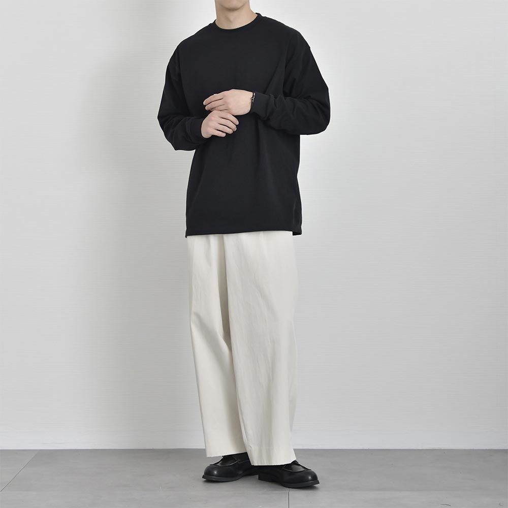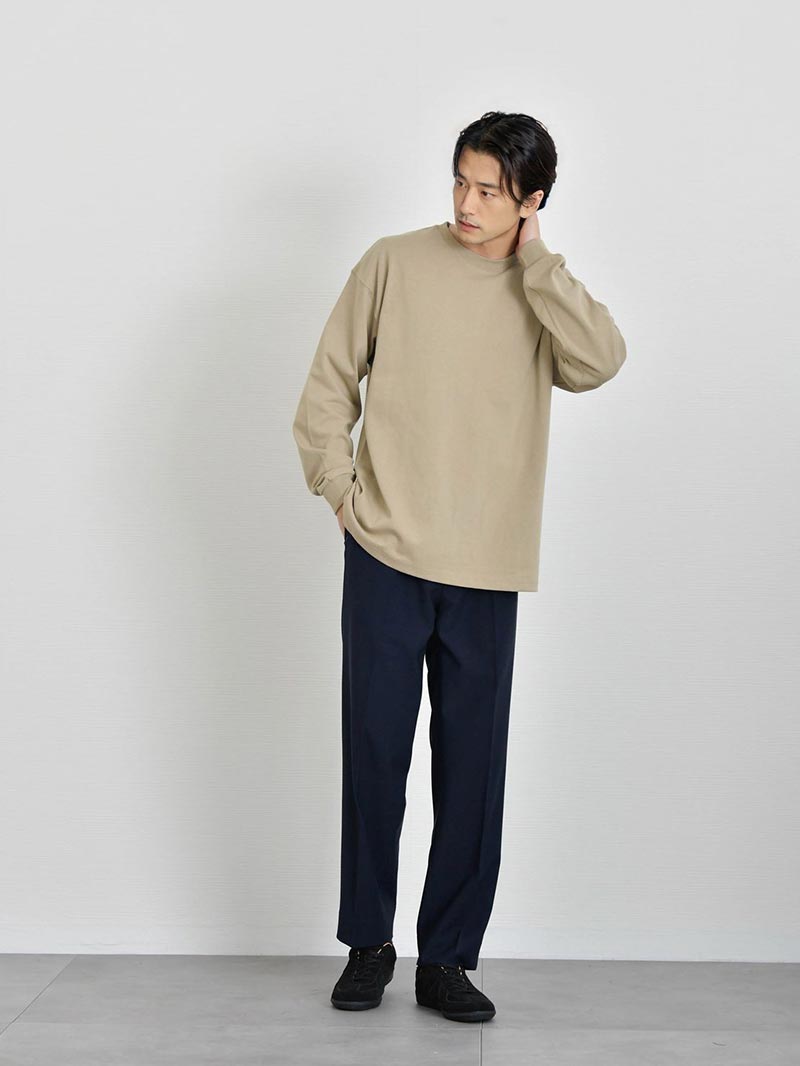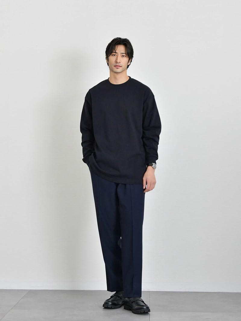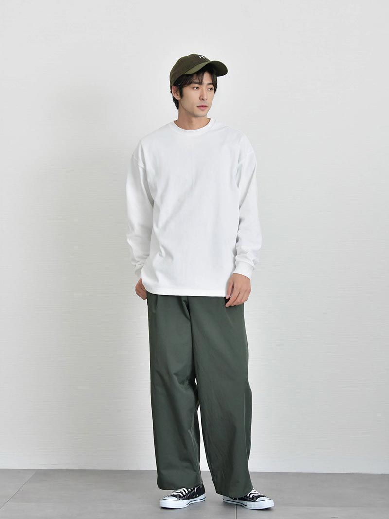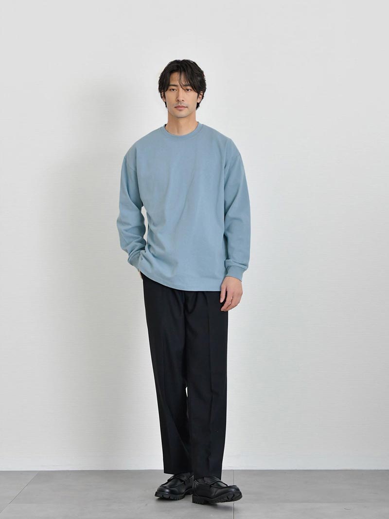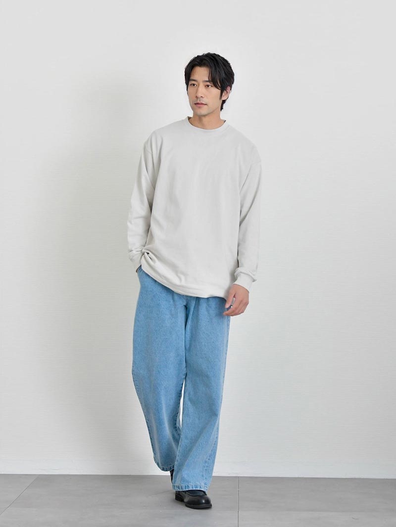 シャリ感のあるオープンエンド双糸を編み立てた極厚生地がアメリカンな魅力引き立たせる最上級グレードTシャツ トレンド感のある着こなしが叶うTシャツ 1枚で決まるワイドフィットTシャツ。アメリカンながっしりとした生地が体の体型を拾わないので大人のカジュアルコーデにオススメ。リラックス感ある着こなしは大人の余裕を引き立てます。 もっと見る オープンエンド糸でシャリ感のある超極厚生地 オープンエンド糸(OE糸)とは、空気の力を利用して繊維を撚り合わせた糸で、空気紡績糸とも呼ばれます。繊維間に空気が多く含まれているため、ボリューム感があり、吸湿性や速乾性に優れています。着ていく度に生地が馴染むので自分で『Tシャツを育てる』ことができるのも魅力です。 丈夫な縫製 首元リブ部分にはダブルステッチ始末がされており、Tシャツで懸念される首元のよれや型崩れがしにくい丈夫な縫製が施されているので安心して長く着用していただけます。 サイズ・素材 肩幅 身幅 袖丈 着丈 M 53.5 57.5 59.5 70.5 L 56.5 60.5 60 73.5 XL 58.5 63.5 61.5 78 ※表記サイズは実寸であり、個体差により誤差が生じる場合があります。 ※商品によっては洗濯タグにヌード寸法が記載されておりますが、実寸とは異なります。 伸縮性 あり ややあり なし 厚み 厚手 普通 薄手 透け感 あり ややあり なし 洗濯 洗濯OK ネット使用 手洗いのみ 表地 綿100% 裏地 なし 生産国 中国 表示を隠す スタッフ試着レビュー サイズにお悩みですか? AIに適正サイズを聞く 返品・交換は無料で安心 ご自宅でじっくりご試着いただけます。合わなければ送料負担なく返品できます。あなたにぴったりの一着と出会えるよう、お手伝いいたします。 コーディネート Model : 179㎝/66㎏/ L / ホワイト(001)着用 ストレッチレイヤードタンクトップ CHECK ストレートデニム CHECK シルバー925 デザインバングル CHECK Model : 179㎝/66㎏/ L / ホワイト(001)着用 タックワイドスラックス CHECK HARUSAKU 奈良産 プレーンリブソックス CHECK Model : 179㎝/66㎏/ L / ブラック(002)着用 CODE4 テーパードパンツ(セットアップ対応) CHECK チャンキーソールローファー CHECK Salvatole Marra クロノグラフ腕時計 CHECK Model : 179㎝/66㎏/ L / ブラック(002)着用 タックワイドスラックス CHECK Uチップシューズ CHECK 日本製 コンチョ付きブレスレット CHECK Model : 179㎝/66㎏/ L / フロストグレー(300)着用 ブラックスリムパンツ CHECK チロリアンシューズ CHECK キルトショルダーバッグ CHECK ナローリアルレザーベルト CHECK Model : 179㎝/66㎏/ L / フロストグレー(300)着用 ストレッチレイヤードタンクトップ CHECK タックワイドデニムパンツ CHECK Uチップシューズ CHECK Model : 179㎝/66㎏/ L / アシッドカーキ(249)着用 CODE4 テーパードパンツ(セットアップ対応) CHECK ナローリアルレザーベルト CHECK スウェードレザースニーカー CHECK Model : 179㎝/66㎏/ L / アシッドカーキ(249)着用 ストレートデニム CHECK Uチップシューズ CHECK ナローメッシュベルト CHECK Model : 179㎝/66㎏/ L / アシッドブルー(247)着用 ストレッチレイヤードタンクトップ CHECK CODE4 テーパードパンツ(セットアップ対応) CHECK チャンキーソールローファー CHECK Model : 179㎝/66㎏/ L / アシッドブルー(247)着用 ストレッチレイヤードタンクトップ CHECK CODE4 ワイドパンツ(セットアップ対応) CHECK コートレザースニーカー CHECK スタッフコーディネート もっと見る