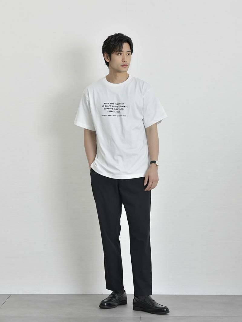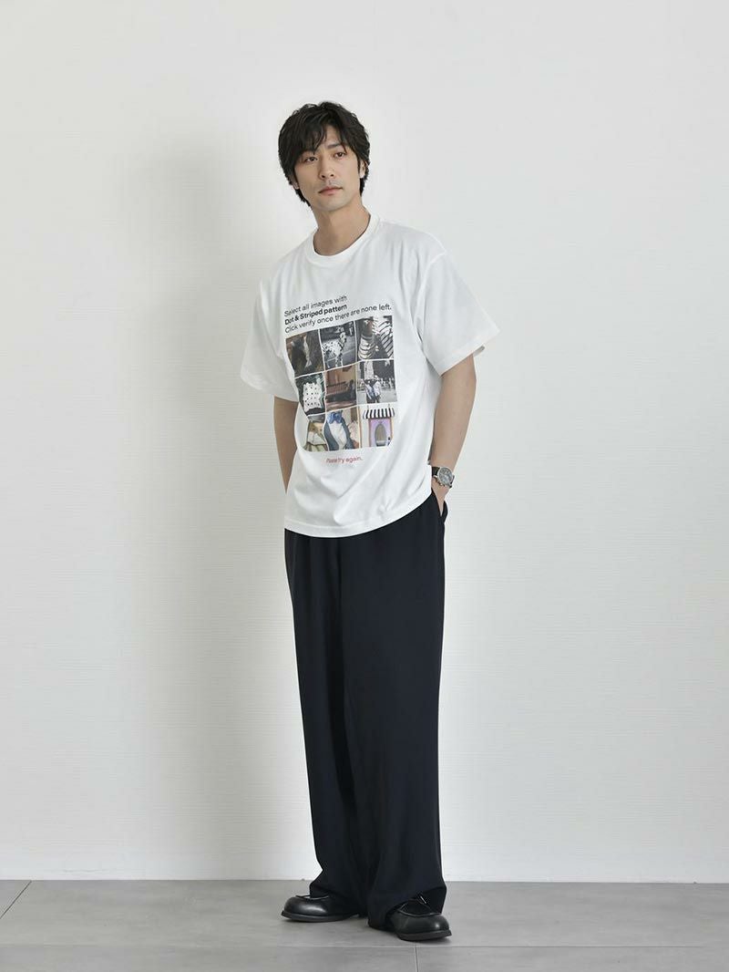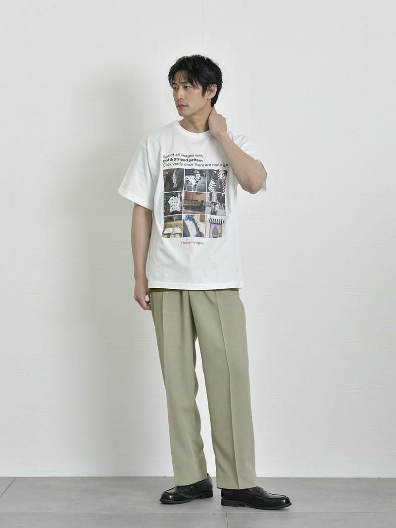 アイテム説明 “無地じゃ物足りない”あなたへ。感性を刺激する4つのグラフィックが、普段のコーデにひとさじの存在感をプラス。日常になじむ配色だから、着回し力も◎ 白Tじゃ物足りない夏に 抜け感のあるカラーグラフィックが、汗ばむ季節に爽やかな存在感をプラス。 もっと見る 気分・スタイルで選ぶ4種類のグラフィック 気分で選ぶ、スタイルで選ぶ。“今日はどれを着よう?”そんな日常の楽しさが広げるために4種類のグラフィックをご用意しました。 A柄(バックプリントなし) 色の配色をモノトーンで揃え、大人っぽいデザイン。 ロゴも大きすぎず、派手な印象を抑えているためコーディネートにも使いやすく初めてのロゴTとしておすすめです。 ロゴには「自分の人生を生きよう」そんな静かな決意が込められています。 B柄(バックプリントなし) たった“ワン”ポイント。 けれどそこには、都会の休日のような穏やかさがある。 胸元に描かれているのは、犬を連れて散歩する男性の姿。 どこか余裕を感じさせるそのシルエットは、急がず、自分のペースで過ごす時間を象徴しています。 C柄(バックプリントなし) インターネット上で誰もが一度は目にしたことのある「reCAPTCHA(ロボットではないことを証明する画像認証)」をモチーフにしています。 “Select all images with Dot & Striped pattern”という指示に対して、9枚の画像が並んでおり、それぞれに水玉やストライプが含まれています。 「Please try again.」という赤文字がアクセントに。現代的でちょっとした皮肉やユーモアを感じさせるデザインになっています。 D柄(バックプリントあり) 職人技と伝統の継承。そんな普遍的な価値観をストレートに言葉にしたメッセージTシャツ。背中のメッセージは、“良いものをつくり、長く使う”という考え方に共鳴する、静かな意志の表れです。 赤のプリントが効いたバックスタイルは、シンプルな夏の着こなしのアクセントにもピッタリ。控えめなフロントロゴとのバランスもよく「飾らず、けれど芯のある」スタイルを好む方に提案したい一枚です。 コットン100%のナチュラルな着心地 肌にやさしく汗をしっかり吸う、天然素材のコットン100%。通気性のよさとナチュラルな風合いで、蒸し暑い日も心地よく。 サイズ・素材 肩幅 身幅 袖丈 着丈 S 45.5 50 19.5 63 M 48.5 53 21 65.5 L 51 55.5 21.5 68.5 XL 54 57.5 23 71.5 ※表記サイズは実寸であり、個体差により誤差が生じる場合があります。 ※商品によっては洗濯タグにヌード寸法が記載されておりますが、実寸とは異なります。 伸縮性 あり ややあり なし 厚み 厚手 普通 薄手 透け感 あり ややあり なし 洗濯 洗濯OK ネット使用 手洗いのみ 表地 綿100% 裏地 なし 生産国 中国 表示を隠す サイズにお悩みですか? AIに適正サイズを聞く 返品・交換は無料で安心 ご自宅でじっくりご試着いただけます。合わなければ送料負担なく返品できます。あなたにぴったりの一着と出会えるよう、お手伝いいたします。 コーディネート Model : 179㎝/66㎏/ L / A柄(バックプリントなし)着用 CODEテーパード テック CHECK Salvatole Marra シンプル腕時計 CHECK Model : 179㎝/66㎏/ L / A柄(バックプリントなし)着用 半袖オープンカラーシャツ CHECK ワイドバルーンパンツ(セットアップ対応) CHECK Uチップシューズ CHECK Model : 179㎝/66㎏/ L / B柄(バックプリントなし)着用 タックワイドパンツ CHECK Model : 179㎝/66㎏/ L / B柄(バックプリントなし)着用 ブラックスリムパンツ 旧型 CHECK ストレッチレイヤードタンクトップ CHECK リアルレザーベルト CHECK Uチップシューズ CHECK Model : 179㎝/66㎏/ L / C柄(バックプリントなし)着用 CODEワイド CHECK Salvatole Marra クロノグラフ腕時計 CHECK Model : 179㎝/66㎏/ L / C柄(バックプリントなし))着用 ストレッチレイヤードタンクトップ CHECK Model : 179㎝/66㎏/ L / D柄(バックプリントあり)着用 CODEストレート サマー CHECK Salvatole Marra シンプル腕時計 CHECK Model : 179㎝/66㎏/ L / D柄(バックプリントあり)着用 タックワイドデニムパンツ CHECK コートレザースニーカー CHECK スタッフコーディネート もっと見る
