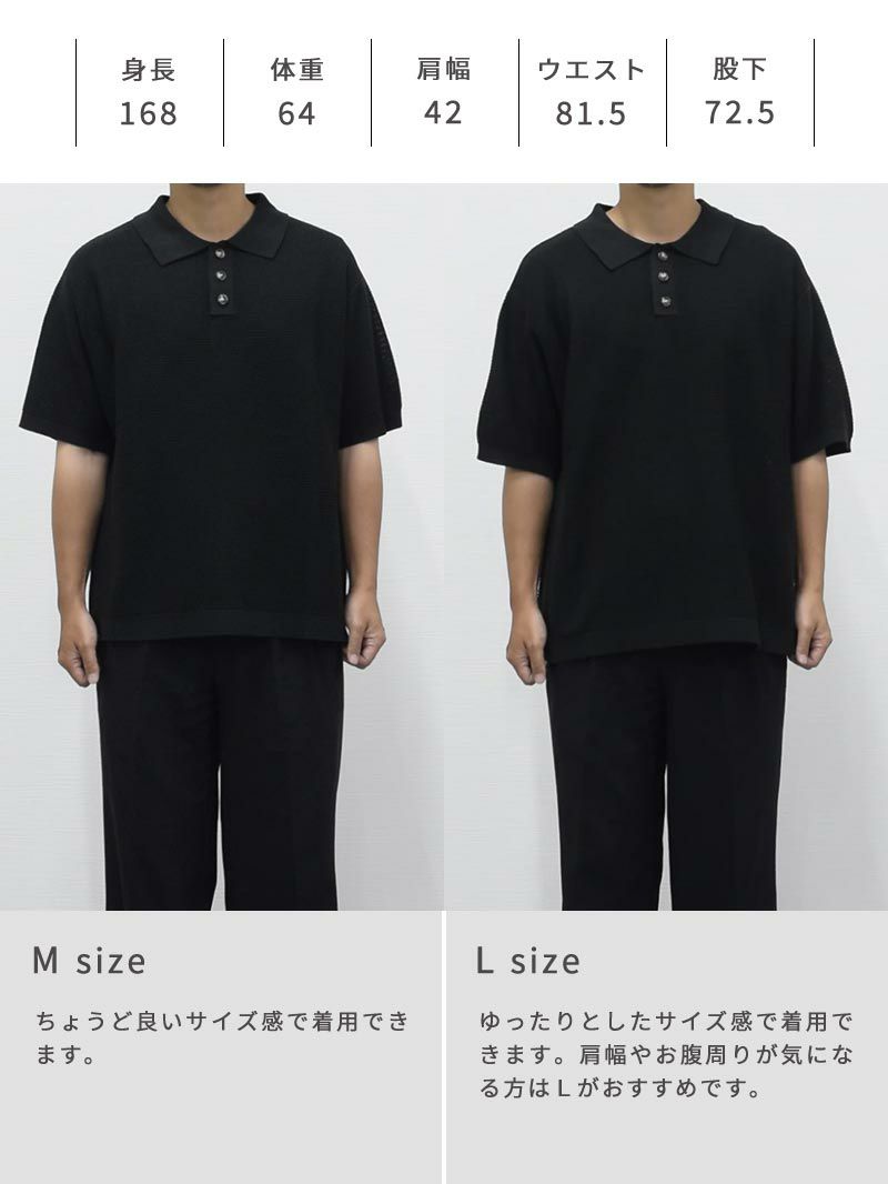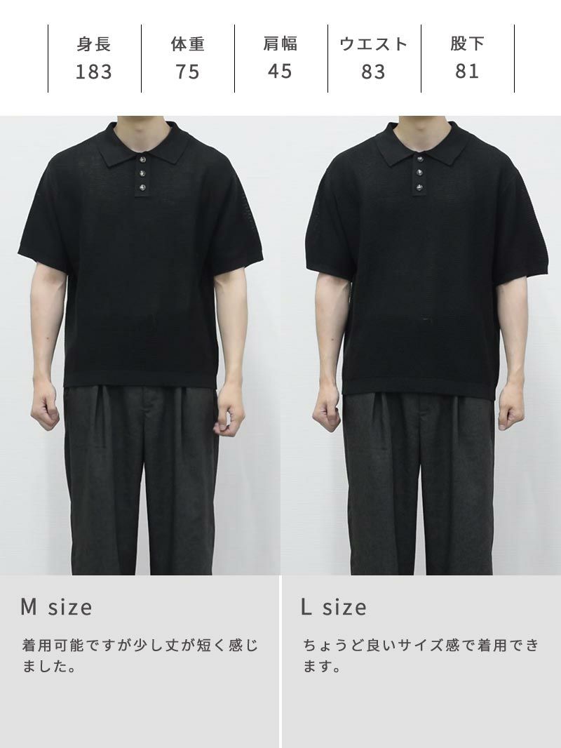 麻タッチシアーニットポロシャツ