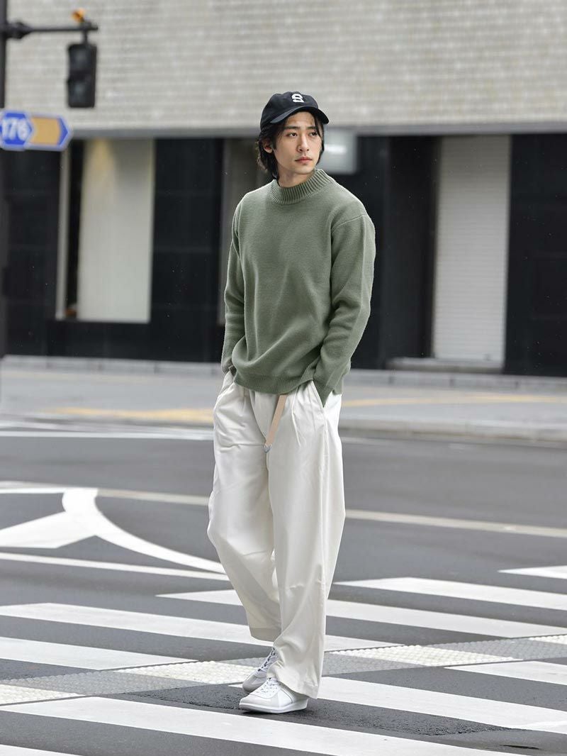【身長:170cm / 体重:64kg / 購入サイズ:M】グリーンの色味が落ち着いた雰囲気を醸し出しとても良い!着用すると気持ちも心なしか穏やかになれる。ジャケットとの相性も抜群。