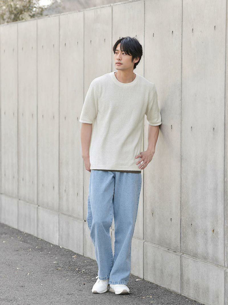 Tシャツじゃなく、あえて”ニット” Tシャツに頼りがちな夏。 毎年同じ着こなしに飽きたあなたへ、いつもとは違うコーデを楽しめるニットをご提案。 夏にニットを選ぶ理由 Tシャツでは出せない立体的な表情と上質な風合いが、夏ニット最大の魅力。 シンプルになりがちな夏の装いに、1枚で“こなれ感”をプラス。 いつものスタイルが、グッと垢抜けて見える、そんな頼れる一着です。 もっと見る 肌に触れた瞬間にわかる、上質な素材感。 毎年大人気の夏ニットですが、今年はテクスチャー(生地、編地)にこだわりました。 Tシャツとは一線を画す表面感 緩めの編地で仕上げた表面感は、Tシャツでは出せない空気感を纏い、大人の表情を見せます。 コットンを使用し、肌に自然と馴染む柔らかなタッチを実現。 ほんのりとした凹凸感は、シンプルながらも存在感のある着こなしを可能にします。 着心地、涼しさも追求 見た目だけではなく、肌に触れた瞬間から感じる、やわらかな着心地。 ほどよく空気を含んだ編み地が、通気性と軽さを両立。 暑いだけじゃなくジメッとした日本の気候でも、空気がスッと抜けるような「自然な涼しさ」が感じられます。 旧モデルとの比較 左:旧モデル/右:新モデル これまでのモデルと比べ、今作はさらなる通気性の向上を実現しました。 肌離れがいいコットン素材、緩めの編地によって、サラッと快適に過ごせます。 これまでにない着心地をご体感ください。 ポイントは"落ち感" 左:Mサイズ/右:Lサイズ 緩めに編まれた生地が、着た瞬間に自然な落ち感を生み、こなれたリラックスシルエットを演出。 Tシャツ感覚で、気軽に洗える 洗濯ネットに入れて、そのまま洗濯機へ。気をつかわずに着られるから、つい手が伸びる。 毎日着たくなる理由が、ちゃんとあります。 ※洗濯機で洗濯する際は、洗濯ネットの使用を推奨しています ※乾燥機の使用は縮みの原因になり得ますのでお控えください ※直射日光も縮みの原因になるので陰干しを推奨します 一緒におすすめ 重ね着専用 タンクトップ CHECK サイズ・素材 肩幅 身幅 袖丈 着丈 S 45.5 54 26.5 64 M 47 55.5 27.5 65 L 49 57.5 28 67.5 XL 50.5 60 29 69 ※表記サイズは実寸であり、個体差により誤差が生じる場合があります。 ※商品によっては洗濯タグにヌード寸法が記載されておりますが、実寸とは異なります。 伸縮性 あり ややあり なし 厚み 厚手 普通 薄手 透け感 あり ややあり なし 洗濯 洗濯OK ネット使用 手洗いのみ 表地 綿73% / ポリエステル13% / ナイロン7% / レーヨン5% / 再生繊維(セルロース)2% 裏地 なし 生産国 中国 表示を隠す スタッフ試着レビュー サイズにお悩みですか? LINEでサイズ相談する 返品・交換は無料で安心 ご自宅でじっくりご試着いただけます。合わなければ送料負担なく返品できます。あなたにぴったりの一着と出会えるよう、お手伝いいたします。 コーディネート Model 179㎝/66㎏/ L / アイボリー着用 ナチュラルカラーのトップスに、深みのあるワイドパンツを合わせたワントーンコーデ。 ルーズなシルエットで抜け感を出しつつ、落ち感のある素材が大人の上品さをプラス。 足元はブラックで引き締め、今っぽくクリーンに仕上げた旬のリラックススタイル。 CODE サマーワイドパンツ CHECK Salvatole Marra シンプル腕時計 CHECK Model 179㎝/66㎏/ L / アイボリー着用 きれい目な印象のワイドデニムが程よい抜け感を演出し、白スニーカーで爽やかさをプラス。 気負わず過ごしたい休日にぴったり。歩きやすさとセンスを両立した、余裕ある大人のカジュアル。 ストレッチレイヤードタンクトップ CHECK タックワイドデニムパンツ CHECK コートレザースニーカー CHECK Model 179㎝/66㎏/ L / アイボリー着用 爽やかな白のサマーニットに、落ち着きのあるデニムを合わせたクリーンな印象の大人コーデ。 シンプルながら素材感に表情があり、こなれた雰囲気を演出します。 清潔感と柔らかさを兼ね備えたスタイルは女性からも好印象。休日のランチデートや友人とのカフェタイムにぴったりです。 CODE デニムスラックス CHECK HARUSAKU 奈良産 プレーンリブソックス CHECK Model 179㎝/66㎏/ L / ネイビー着用 CODE デニムスラックス CHECK Salvatole Marra シンプル腕時計 CHECK Model 183㎝/75㎏/ L / ネイビー着用 白Tとのレイヤードで奥行き感を出しつつ、ワイドパンツでこなれた抜け感をプラス。 ネイビー×ホワイトの清潔感ある配色が好印象。動きやすさと軽さも兼ね備え、週末のお出かけやカフェデートなどに活躍する万能コーデです。 クールタッチスムースTシャツ CHECK タックワイドデニムパンツ CHECK ハンドロープ サコッシュ CHECK Model 183㎝/75㎏/ L / ネイビー着用 サマーニットをインナーにしたテック素材のセットアップは、機能性と見た目の洗練を両立。 ネイビーは知的で信頼感あるカラーで、バッグや足元をシンプルにまとめれば“頑張りすぎてないビジカジ”スタイルに。軽量で涼しく、シワになりにくいため出張にも最適。 CODE テックテーラードジャケット