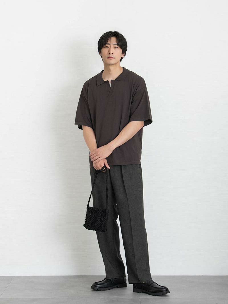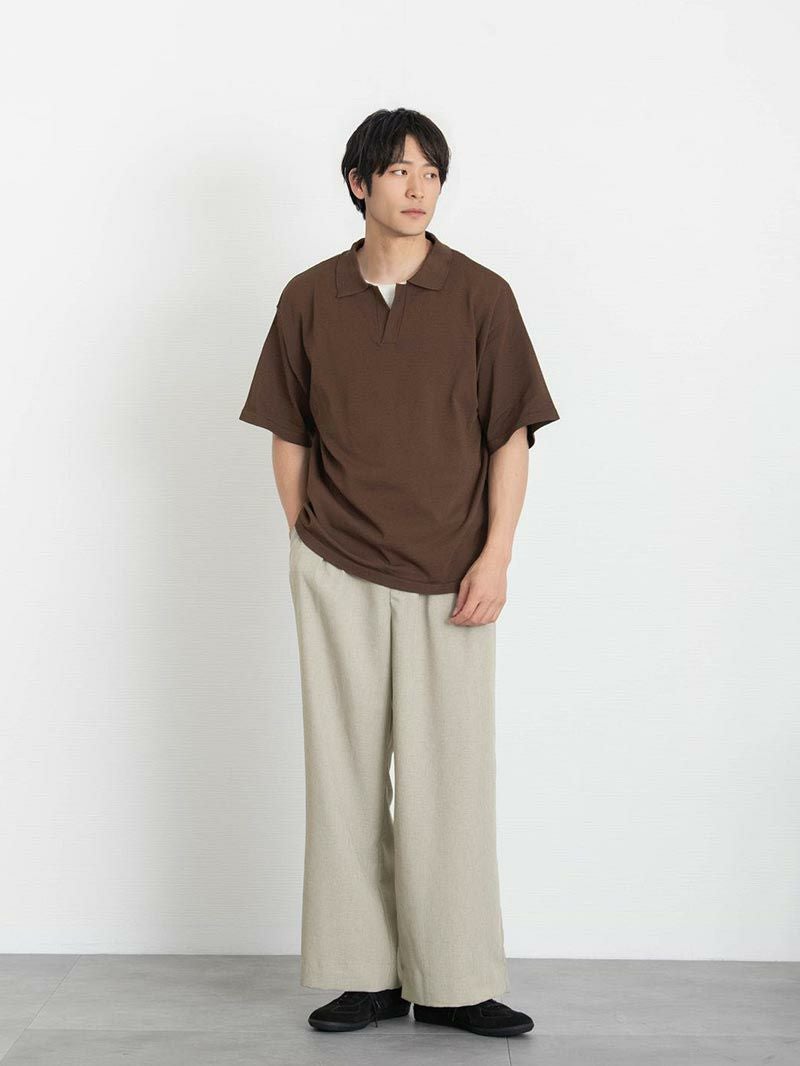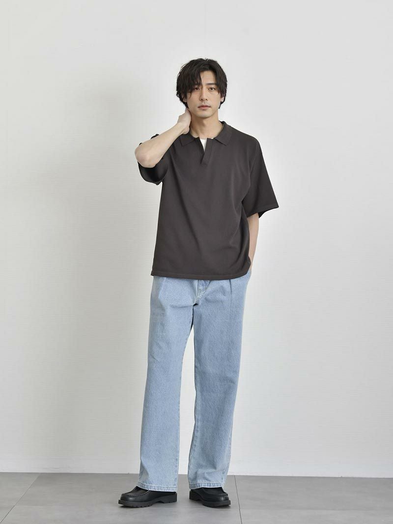 アイテム説明 ビジネスからカジュアルまで 快適な機能性と、大人のきちんと感を両立。オンでもオフでも、"ちょうどいい"を叶える一枚です。 もっと見る スキッパーニット特有の 「抜け感」と「上品さ」が共存する一枚 襟付きだから落ち着いたシーンでも好印象。顔周りに襟があることで、自然と視線が上がり、小顔&スタイルアップ効果も。 夏に嬉しい、ひんやり快適素材 接触冷感+ドライタッチで、夏の外出もサラリと快適に。公園やゴルフといったアクティブなシーンでもキレイめ感をキープしながら快適に過ごせます。 洗濯機で洗えるイージーケア設計 自宅で洗えるウォッシャブル仕様。型崩れしにくく、着用ごとのお手入れも不要に。また、シワにもなりにくく、忙しい毎日でも気軽に着られる一着。 一緒におすすめ ストレッチレイヤードタンクトップ CHECK サイズ・素材 肩幅 身幅 袖丈 着丈 M 52 55 21.5 65 L 54.5 57 23.5 67 XL 56.5 59 24.5 69.5 ※表記サイズは実寸であり、個体差により誤差が生じる場合があります。 ※商品によっては洗濯タグにヌード寸法が記載されておりますが、実寸とは異なります。 伸縮性 あり ややあり なし 厚み 厚手 普通 薄手 透け感 あり ややあり なし 洗濯 洗濯OK ネット使用 手洗いのみ 表地 レーヨン63% ナイロン37% 裏地 なし 生産国 中国 表示を隠す スタッフ試着レビュー サイズにお悩みですか? AIに適正サイズを聞く 返品・交換は無料で安心 ご自宅でじっくりご試着いただけます。合わなければ送料負担なく返品できます。あなたにぴったりの一着と出会えるよう、お手伝いいたします。 コーディネート Model : 179㎝/66㎏/ L / チャコール着用 深みのあるチャコールのスキッパーポロに、同系色のワイドスラックスを合わせた、シックで統一感のあるワントーンコーデ。 ポロシャツの首元から白のリブタンクをさりげなく覗かせることで、重くなりすぎず抜け感を演出。夏らしい軽やかさを感じさせながらも、落ち着いたカラーで全体を引き締めています。 リラックス感があるこのコーデは、カフェでのんびり過ごす休日やデートにぴったりです。 ストレッチレイヤードタンクトップ CHECK CODEストレート サマー CHECK チャンキーソールローファー CHECK ハンドロープ サコッシュ CHECK Model : 181㎝/65㎏/ L / チャコール着用 モダンな印象のダークカラースキッパーポロに、ライトブルーのワイドデニムを合わせたコントラストが映えるスタイリング。 トップスは適度にリラックス感を持たせつつ、開きすぎないキーネックが上品な抜け感を演出。 ライトオンスのデニムが爽やかさをプラスし、シンプルながらこなれた印象に仕上げています。 足元のブラックシューズで全体を引き締め、都会的なバランスが光る大人のカジュアルスタイル。 ストレッチレイヤードタンクトップ CHECK タックワイドデニムパンツ CHECK Salvatole Marra シンプル腕時計 CHECK チロリアンシューズ CHECK Model : 181㎝/65㎏/ L / ブラウン着用 ブラウンのスキッパーポロにブラックのスリムパンツを合わせた、落ち着いた配色のスマートカジュアルスタイル。 程よい抜け感のあるスキッパーデザインがトップスに上品さをプラスし、全体を引き締めるブラックパンツがスタイリッシュな印象に仕上げます。 足元はブラックシューズで統一感を出しつつ、シンプルながらも大人の余裕を感じさせる洗練されたコーディネートです。 ストレッチレイヤードタンクトップ CHECK ブラックスリムパンツ 旧型 CHECK HARUSAKU 奈良産 バックラインソックス CHECK Uチップシューズ CHECK Model : 179㎝/66㎏/ L / ブラウン着用 トップスはブラウンのスキッパーポロで抜け感を出しつつ、白のリブタンクをインナーに重ねて爽やかさと奥行きをプラス。 程よく開いた襟元からタンクがのぞくことで、ナチュラルな清潔感を演出します。 気負いすぎず好印象を狙える、ドライブデートにぴったりのリラックスカジュアルスタイルです。 ストレッチレイヤードタンクトップ CHECK CODEワイド サマー CHECK ツインゲートカラビナ CHECK スウェードレザースニーカー CHECK スタッフコーディネート もっと見る