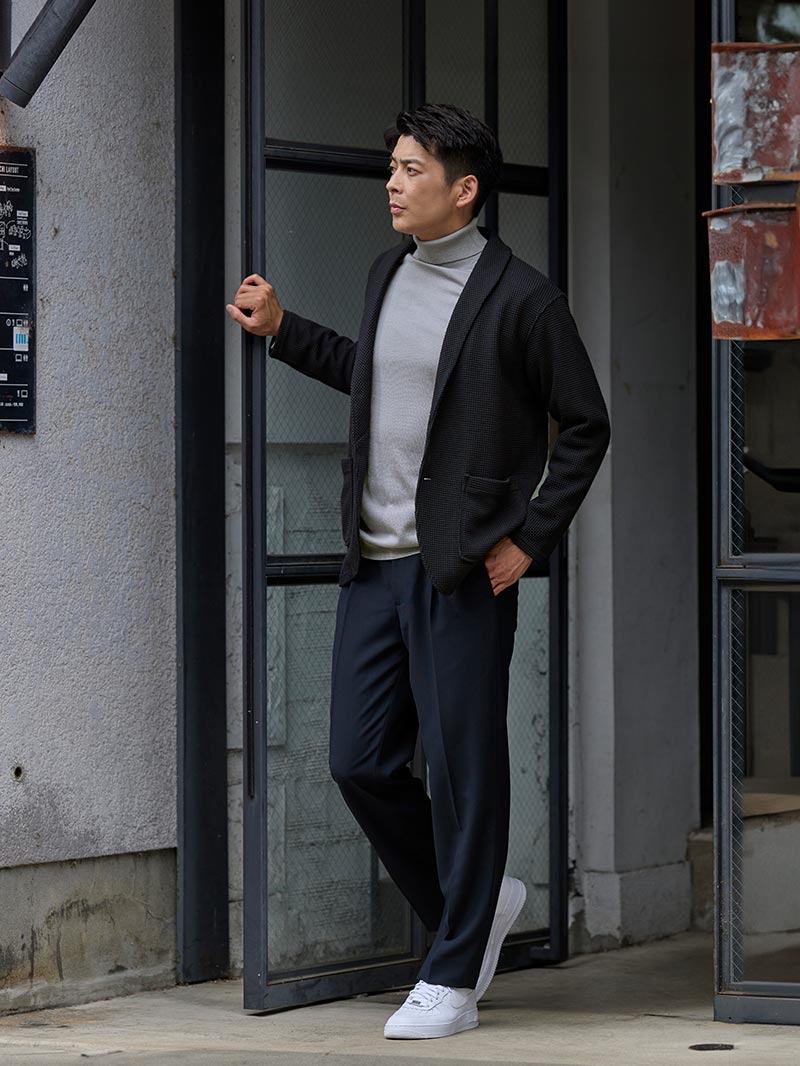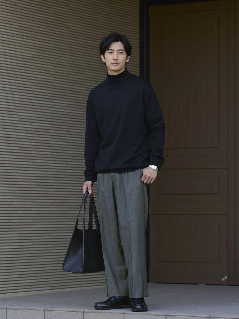 アイテム説明 スマートで上品見えするこの冬必須の一枚 ハイゲージシルクタートルニットの 魅力をピックアップ 01. 上品な光沢とやさしい肌触り シルク・テンセル・ウールを組み合わせた素材で、上質な見た目と快適な着心地を両立。 シルクはしっとり滑らかで通気性がよく、ウールは蒸れにくく温かい。 そこにテンセルが加わることで、ほどよい光沢と柔らかさが生まれ、一年を通して心地よく着られます。 02. ビジネスにもカジュアルにも活躍 オフィスカジュアルからデート、家族との週末のお出かけまで幅広く対応。 一枚で品よく決まるから、シーンを選ばず着られる冬の頼れるワードローブです。 03. 首の露出を抑え、上品さを格上げ 首元をしっかり包むタートルネックは、クルーネックより暖かく上品。 肌の露出を抑えることで落ち着いた印象になり、きちんと感が生まれる大人の定番アイテムです。 よりカジュアルで軽やかな着心地ならクルーネックタイプがおすすめ ハイゲージシルクニット CHECK サイズ・素材 肩幅 身幅 袖丈 着丈 S 41.5 50 59.5 66 M 43.5 52 60 67.5 L 45 54 61 69 XL 45.5 56 62.5 71.5 ※表記サイズは実寸であり、個体差により誤差が生じる場合があります。 ※商品によっては洗濯タグにヌード寸法が記載されておりますが、実寸とは異なります。 伸縮性 あり ややあり なし 厚み 厚手 普通 薄手 透け感 あり ややあり なし 洗濯 洗濯OK ネット使用 手洗いのみ 表地 再生繊維(セルロース)41%ポリエステル30%アクリル25%シルク3%毛1% 裏地 なし 生産国 中国 禁止事項 乾燥機使用×漂白剤使用× 表示を隠す スタッフ試着レビュー サイズにお悩みですか? AIに適正サイズを聞く 返品・交換は無料で安心 ご自宅でじっくりご試着いただけます。合わなければ送料負担なく返品できます。あなたにぴったりの一着と出会えるよう、お手伝いいたします。 コーディネート Model : 179㎝ / 66㎏ / L / ホワイト着用 さりげなく品よく見せたい日に かっちりしすぎず、でもきちんと見える。 そんなバランスを大切にしたい日にちょうどいい雰囲気です。 メリハリのあるアイテムを合わせることで、街に馴染みながら自分らしさも自然に残せますよ。 リップストップ中綿ジャケット CHECK CODEストレート ウィンター CHECK スウェードレザースニーカー CHECK リバーシブルレザーベルト CHECK ホワイト着用 デートにぴったり。大人の好印象コーデ 網目の細かいハイゲージニットは、キレイめな印象を与えられるアイテム。 センタープレス入りのテーパードパンツと革靴をあわせれば、さらに大人っぽく年相応のスタイルに仕上がります。 CODEテーパード ウールブレンド 通年用 CHECK Salvatole Marra クロノグラフ腕時計 CHECK Model : 179㎝ / 66㎏ / L / ホワイト着用 タートルネックで格上げする鉄板キレカジ ジャケット×デニムの組み合わせは、きちんと感とカジュアルさを両立した鉄板のキレカジコーデです。 インナーにはタートルネックを合わせることで上品な印象に仕上がります。 CODEテーラードジャケット ウールブレンド 通年用 CHECK ストレートジーンズ CHECK ブルーグレー着用 タートルニットで品よく大人っぽくキメる タートルネックニットを合わせた、ネイビーのセットアップコーデ。 キレイめな着こなしですが、有彩色を合わせることで堅すぎず、品よく見せられるので、秋の大人カジュアルコーデにぴったりです。 CODEテーラードジャケット ウールブレンド 通年用 CHECK CODEワイド ウールブレンド 通年用 CHECK ブルーグレー着用 柔らか素材で親しみやすいオフィカジコーデ ジャケットの代わりにカーディガンを合わせた軽やかな着こなし。 柔らかな素材感が、落ち着きのある色味を優しい印象に変えてくれます。 オフィスカジュアルにも最適です。 ワッフルショールカーディガン CHECK CODEテーパード CHECK Model : 179㎝ / 66㎏ / L / ブラック着用 正しいコートの着こなしはシルエットが大切 大人の魅力を最大限に高めるブラウンの使い方は、色数を絞ること。 黒などのダークトーンで統一すると落ち着きのある着こなしが完成します。 特に上品さが際立つ、タートルニットとの相性は抜群です。 ウールメルトンチェスターコート CHECK CODEテーパード ウィンター CHECK リバーシブルレザーベルト CHECK Uチップシューズ CHECK ブラック着用 素材で差をつけるオールブラックコーデ タートルネックを合わせて肌の露出を抑えることで大人っぽい印象に。 オールブラックでも重くなりすぎないよう、パンツはデニム、シューズはレザーを選び、素材で変化をつけて着こなすのがポイントです。 CODEジャケット CHECK ストレートジーンズ CHECK whoop'-de-doo'サイドゴアブーツ CHECK Model : 179㎝ / 66㎏ / L / ブラック着用 黒×グレーで魅せる信頼のオフィスコーデ 黒×グレーの配色は、大人っぽく洗練された印象で信頼感があり、オフィスにぴったり。 袖をまくって時計をチラ見せすれば、大人の余裕も演出できます。 バッグはレザーを選べば外回りにも対応可能。 CODEストレ