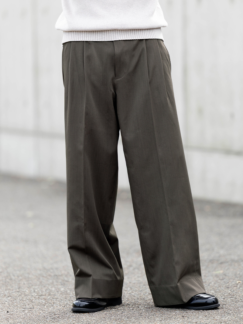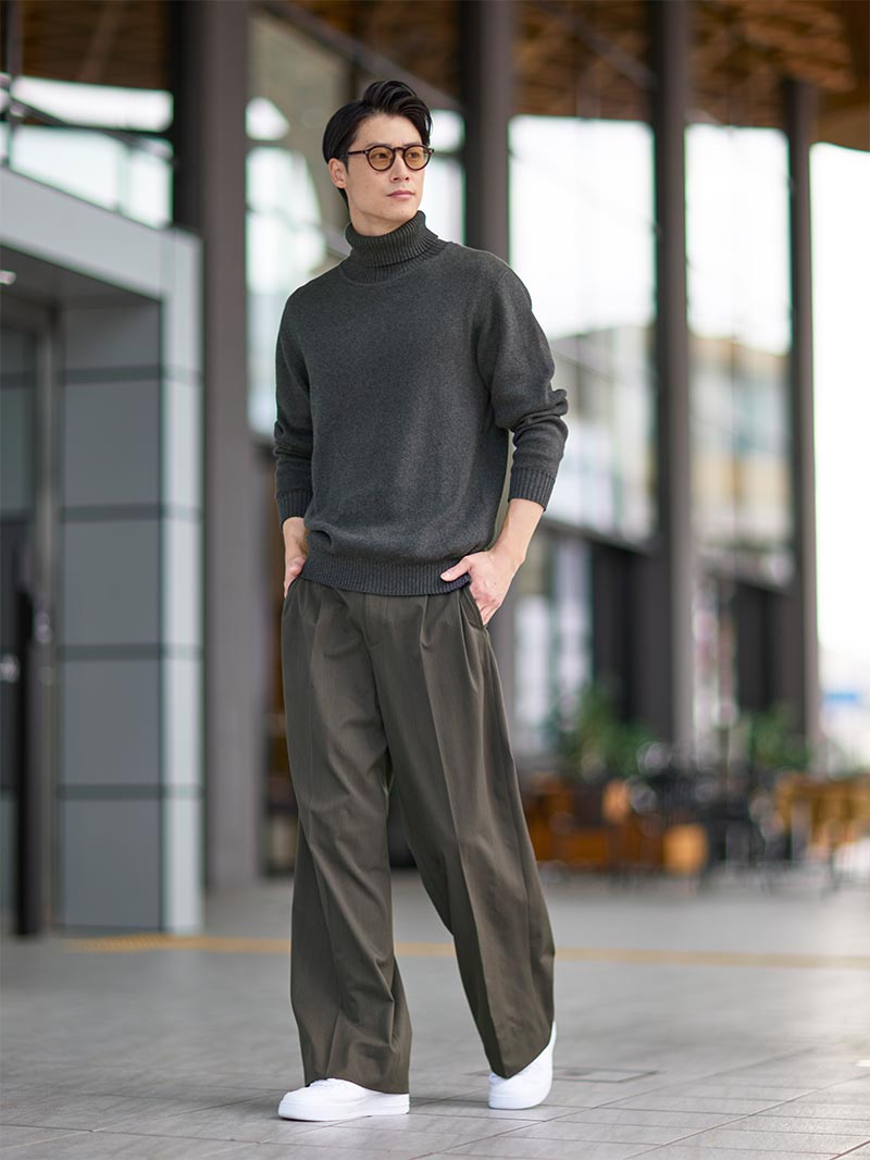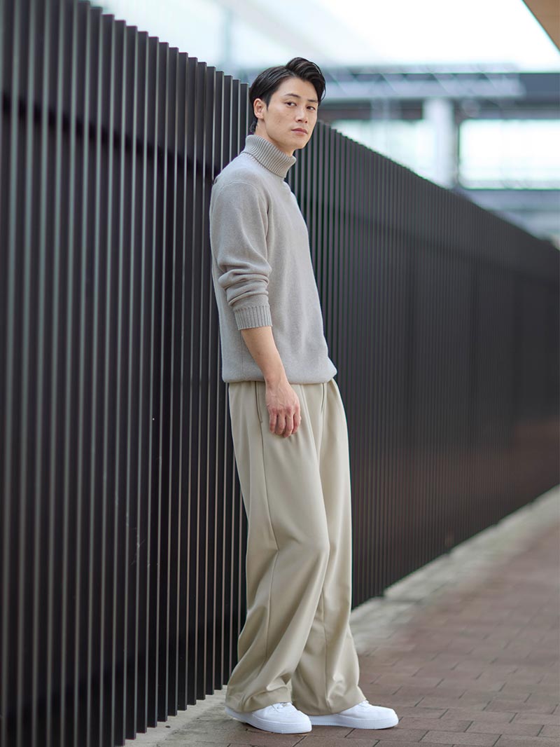 ゆったりと流れるラインが特徴のワイドパンツとのコーデで立ち姿もサマになること間違いなしです。