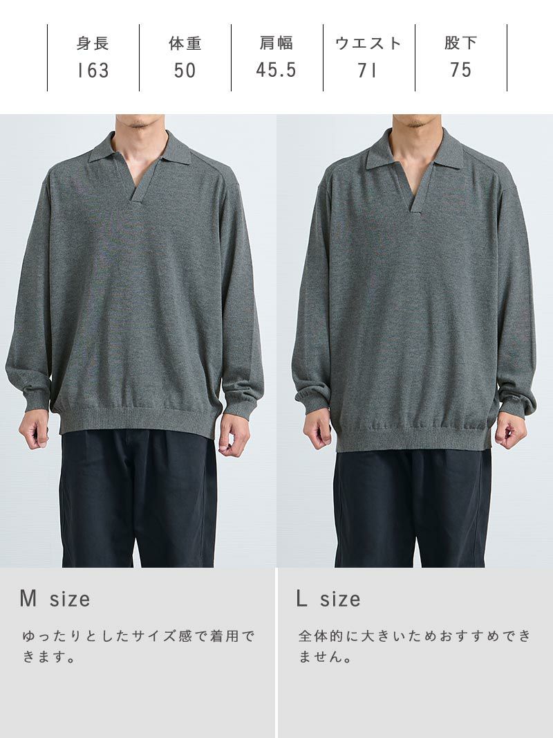 スキッパー長袖ポロシャツ