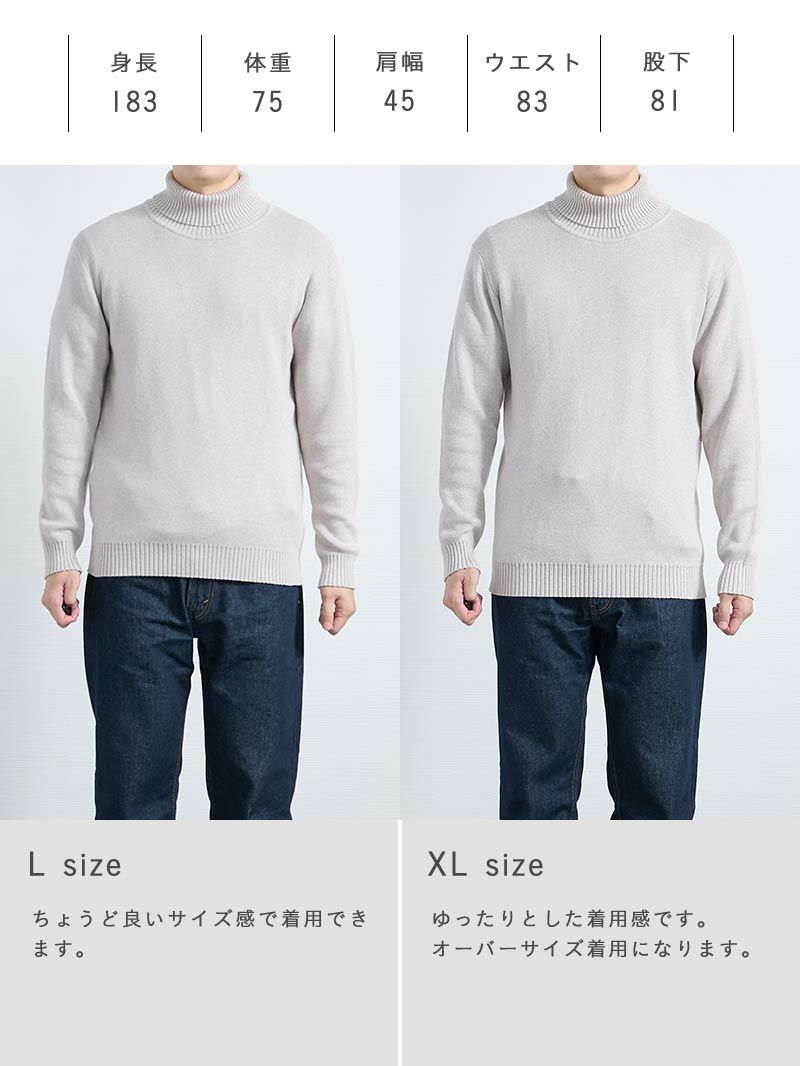 コットンカシミヤ タートルネックニット