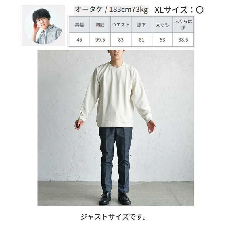 アイテム説明 光沢と厚みのある生地にこだわり 上品でキレイめな印象に 艶とハリのある生地はスラックスなどのキレイめアイテムとも好相性。大人のコーディネートにピッタリのトレーナーです。 もっと見る 左:カジュアルなトレーナー/右:スウェットトレーナー(当アイテム) 一般的な綿の生地と比べ、滑らかで光沢のある生地を採用。 春まで使える裏毛仕様 柔らかく吸水性のある裏毛仕様。サラッと着用できる裏毛仕様は、春まで快適にお過ごしいただけます。 キレイめアイテムでまとめればオフィカジシーンでも活躍 スラックス、ジャケットとも相性が良いのでオフィスカジュアルやデートにも最適です。 腕まくりで抜け感をプラス 暑い季節は腕まくりで涼し気に。さらに、腕時計もつけることで大人の色気がアップします。 一緒におすすめ CODE3 テーラードジャケット CHECK レギュラーカラーシャツ CHECK CODE3 テーパードスラックス CHECK ポリコットンドレスプルパーカー CHECK サイズ・素材 肩幅 身幅 袖丈 着丈 S 43 53 58 63.5 M 45 55 59 66.5 L 48 58 60.5 68.5 XL 50 60 61 71 ※表記サイズは実寸であり、個体差により誤差が生じる場合があります。 ※商品によっては洗濯タグにヌード寸法が記載されておりますが、実寸とは異なります。 伸縮性 あり ややあり なし 厚み 厚手 普通 薄手 透け感 あり ややあり なし 洗濯 洗濯OK ネット使用 手洗いのみ 表地 本体:ポリエステル82% 綿18% リブ:ポリエステル100% 裏地 なし 生産国 中国 表示を隠す サイズにお悩みですか? AIに適正サイズを聞く 返品・交換は無料で安心 ご自宅でじっくりご試着いただけます。合わなければ送料負担なく返品できます。あなたにぴったりの一着と出会えるよう、お手伝いいたします。 コーディネート Model : 179cm / 66kg / L / オフホワイト着用 CODE3 テーラードジャケット CHECK Model : 179cm / 66kg / L / オフホワイト着用 デニムシャツジャケット CHECK HARUSAKU 奈良産 プレーンリブソックス CHECK スタッフコーディネート もっと見る