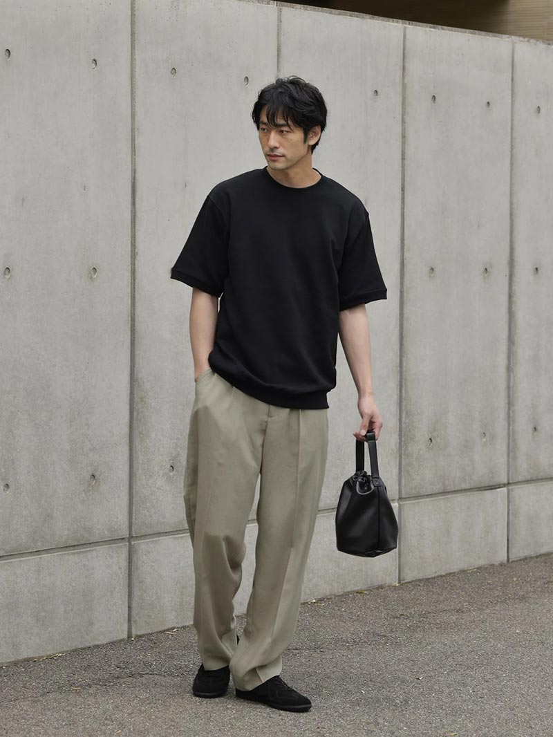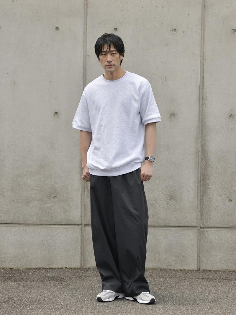 ラフな素材ながらも部屋着っぽくならず、外出着としても”ちょうどよく見える”のが魅力。