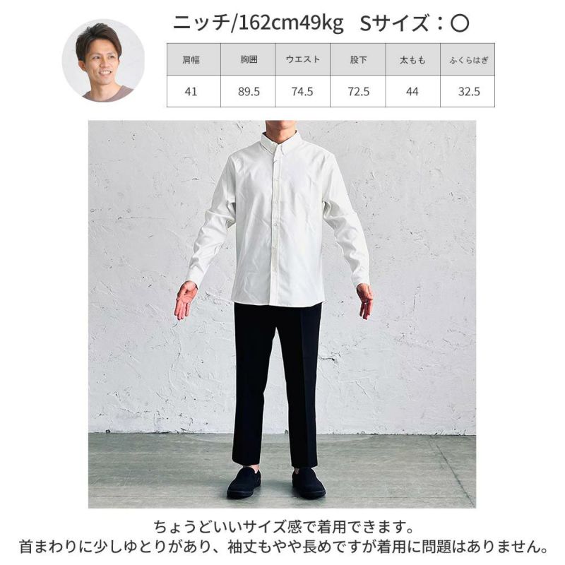 【身長:182cm / 体重:70kg / 購入サイズ:L】 写真のイメージどおり、綺麗めで使いやすそうです。これから使うのが楽しみです。 サイズはジャストでした。 シワ防止加工されているようですので、洗濯してみて効果を確かめたいと思います。 どの服も全般的に背中のタグが肌に当たりチクチクします。改善いただきたいです。