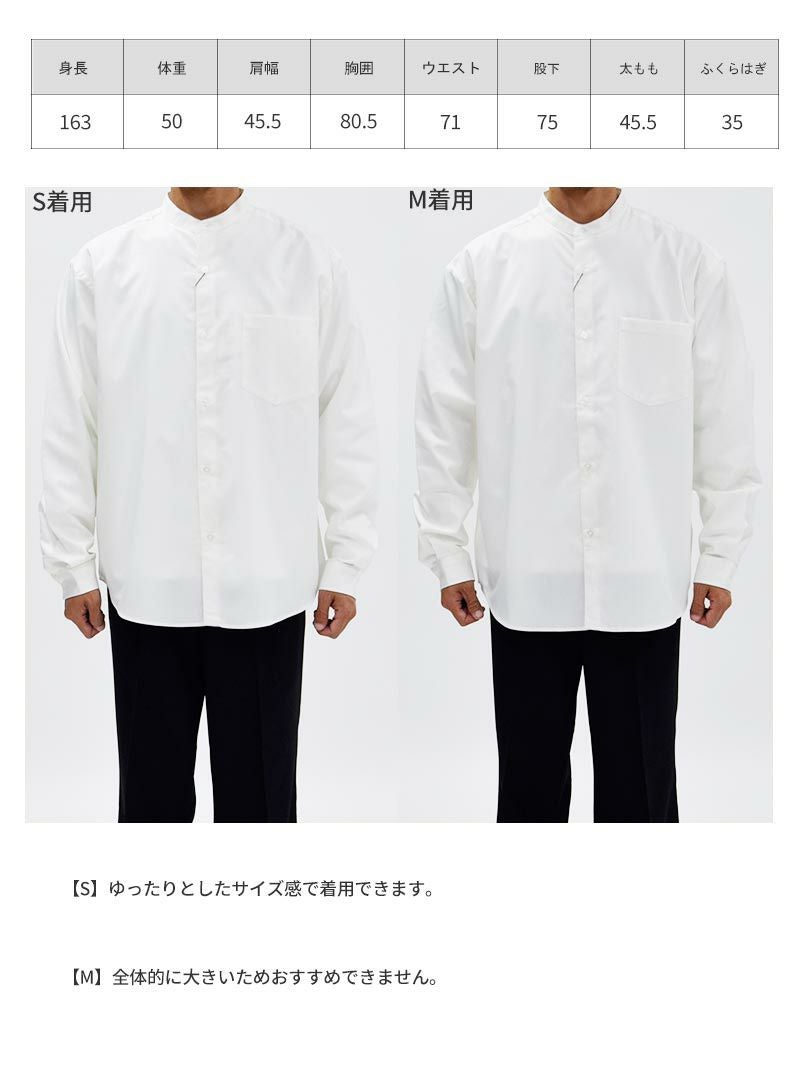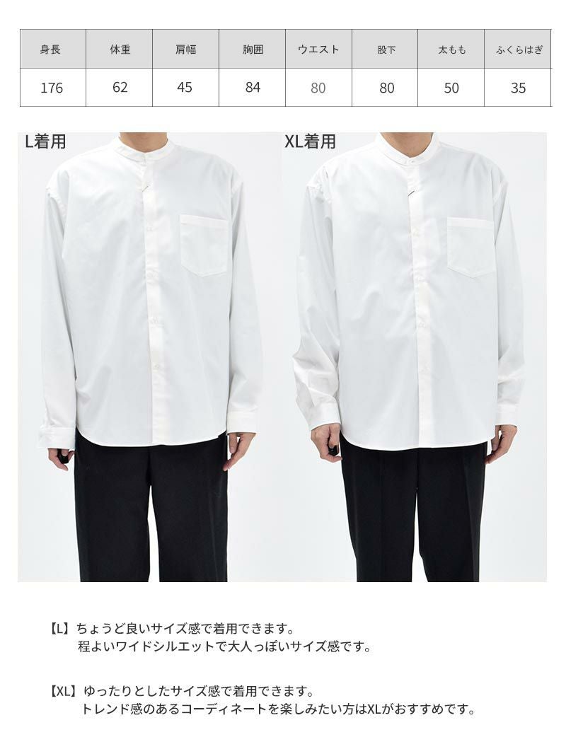 アイテム説明 エレガントなハリ感と洗練されたシルエットで、オフィスもカジュアルも格上げ。サステナブルな素材で心地よく、長く愛用できる一枚。 もっと見る リラックス感のあるワイドシルエットと、清潔感あふれるハリのあるタイプライター生地が特徴。首元をすっきり見せるバンドカラーが、モダンでトレンド感のある印象を与え、オンオフ問わず活躍する万能な一枚です。 バンドカラーのモダンなデザイン 首元をすっきりと見せるバンドカラーはトレンドを抑えたモダンな印象。レイヤードにも最適ですが、シンプルに一枚で着てもスタイルが決まります。 タイプライター生地の絶妙なハリ感 タイプライター生地の適度なハリが、高級感と清潔感をプラス。シャープなシルエットが保たれ、動きのあるシーンでも上品な印象をキープします。 ワイドシルエットへのこだわり ゆとりあるシルエットは、現代的な都会的な洗練を感じさせ、余裕とリラックス感を演出します。このシャツは、どんな体型にもフィットし、トレンドとタイムレスな魅力を併せ持つ一枚として開発されました。 体型をカバーしつつも、肩のラインを美しく引き立たせ、スタイルアップ効果を期待できるため、日常使いでもオフィスでも活躍する万能アイテムです。 リラックス感とスタイルアップ効果の両立 ワイドなシルエットでありながら、肩のラインが美しく見えるように設計されており、リラックスしながらも上品なシルエットが楽しめます。インナーやアウターとも合わせやすく、季節を問わず幅広いコーディネートを可能にします。 エコフレンドリーな素材選定 環境に配慮したサステナブルなバンブー素材を使用。柔らかで通気性が良く、肌にも環境にも優しいシャツです。エコ意識の高い方におすすめの一枚です。 丁寧な縫製で耐久性を強化 左:シワの多いシャツ/右:当商品 細部にまでこだわった丁寧な縫製により、耐久性を向上。シーズンを超えて長く愛用いただける品質を備えています。 LIGHT TECHインナーとは、太陽光・室内灯の近赤外線と、身体から放射される遠赤外線を熱に変える発熱素材を使用した機能性インナーです。 着心地の良い裏起毛によって、より暖かさアップ。 また、ネックラインと袖の長さにこだわり、襟元・袖口からインナーが見えないように設計。 ニット・シャツなど、どんなトップスにも合わせることができます。 好みで選べる2タイプ首元まで暖かいクルーネックシャツと好相性のVネック LIGHT TECH クルーネックインナーTシャツ CHECK LIGHT TECH VネックインナーTシャツ CHECK サイズ・素材 肩幅 身幅 袖丈 着丈 S 51 62 61.5 73.5 M 53.5 64 62 75 L 55 66.5 63 77 XL 57 68.5 63.5 78.5 ※表記サイズは実寸であり、個体差により誤差が生じる場合があります。 ※商品によっては洗濯タグにヌード寸法が記載されておりますが、実寸とは異なります。 伸縮性 あり ややあり なし 厚み 厚手 普通 薄手 透け感 あり ややあり なし 洗濯 洗濯OK ネット使用 手洗いのみ 表地 ポリエステル50% 指定外繊維(竹)50% 裏地 なし 生産国 中国 表示を隠す サイズにお悩みですか? LINEでサイズ相談する 返品・交換は無料で安心 ご自宅でじっくりご試着いただけます。合わなければ送料負担なく返品できます。あなたにぴったりの一着と出会えるよう、お手伝いいたします。 コーディネート Model : 183㎝/73㎏/ XL/ホワイト着用 ワイドフィットタフTシャツ CHECK CODE テックテーパードパンツ(セットアップ対応) CHECK MBスニーカー CHECK キャンバス トートバッグ CHECK Model : 183㎝/73㎏/ XL/ホワイト着用 ハイゲージシルクニット CHECK CODE4 ワイドパンツ(セットアップ対応) CHECK スウェードレザースニーカー CHECK ナローリアルレザーベルト CHECK スタッフコーディネート もっと見る スタイリストの解説
