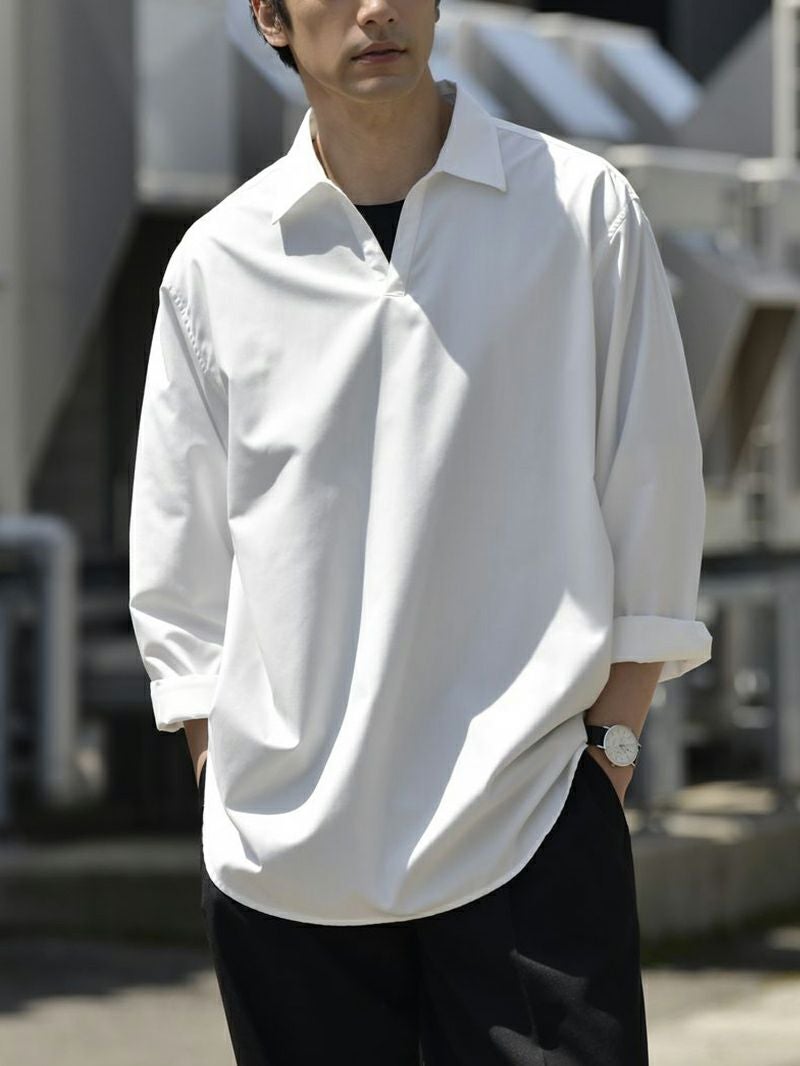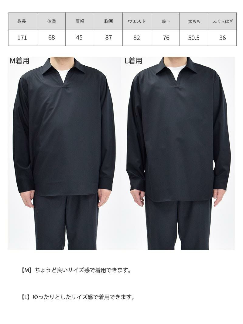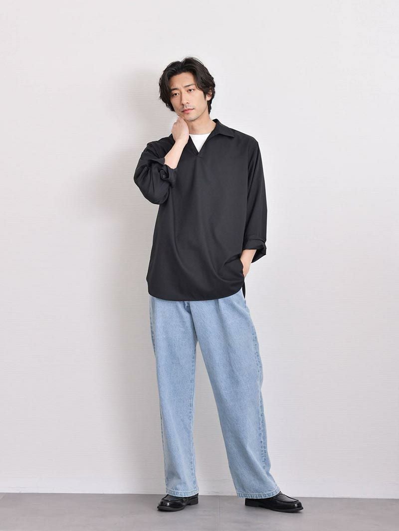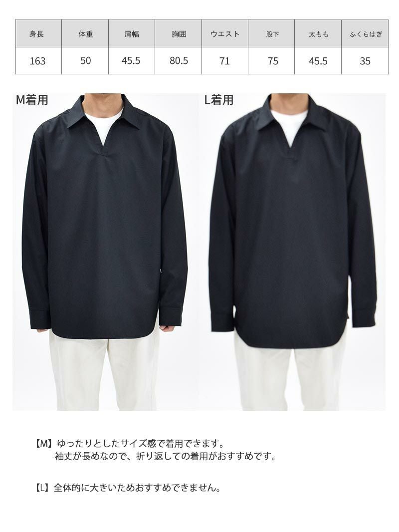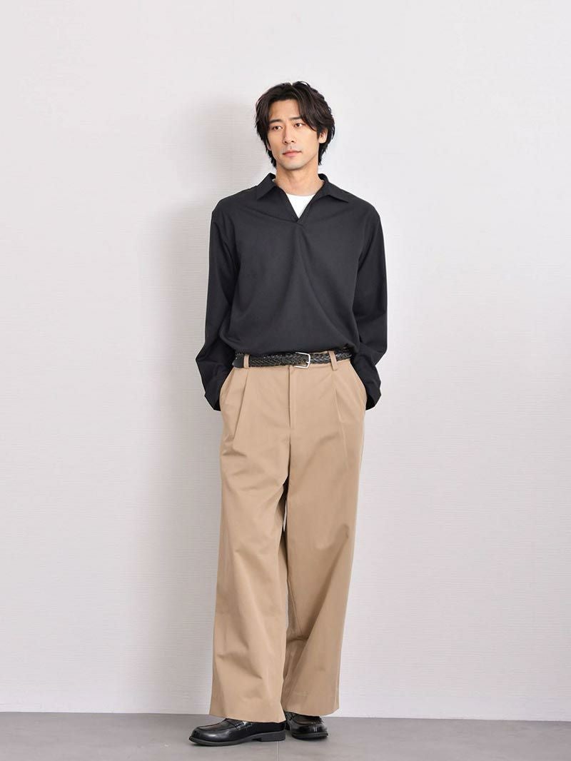 アイテム説明 もっと見る カジュアルスタイルに適した大人のシャツ ほどよくゆとりを持たせたリラックスシルエット。カジュアルな日常使いに適しており、1枚で存在感を出せるアイテムです。 上品さを引き立てる光沢感 通常のシャツが持つ高級感、大人っぽさも表現したかったためドレープ感、そして光沢のある生地を選定し上品さをプラスしています。 開けた襟元でオシャレのアクセント 襟下の開きはやや広めに設計し、中のインナーが適度に見えるようにしました。カットソーやニットと合わせて差し色を活用したアクセントのある着こなしが可能です。 サイズ・素材 肩幅 身幅 袖丈 着丈 M 50 60 63 76 L 52 61.5 64 78.5 ※表記サイズは実寸であり、個体差により誤差が生じる場合があります。 ※商品によっては洗濯タグにヌード寸法が記載されておりますが、実寸とは異なります。 伸縮性 あり ややあり なし 厚み 厚手 普通 薄手 透け感 あり ややあり なし 洗濯 洗濯OK ネット使用 手洗いのみ 表地 ポリエステル90% レーヨン10% 裏地 なし 生産国 中国 禁止事項 表示を隠す サイズにお悩みですか? AIに適正サイズを聞く 返品・交換は無料で安心 ご自宅でじっくりご試着いただけます。合わなければ送料負担なく返品できます。あなたにぴったりの一着と出会えるよう、お手伝いいたします。 コーディネート Model : 181cm / 65kg / L / ブラック着用 タックワイドデニムパンツ CHECK Model : 181cm / 65kg / L / ブラック着用 タックワイドスラックス CHECK Model : 181cm / 65kg / L / オフホワイト着用 カイハラデニムパンツ CHECK Model : 181cm / 65kg / L / オフホワイト着用 CODE PREMIUM ワイドスラックス CHECK スタッフコーディネート もっと見る