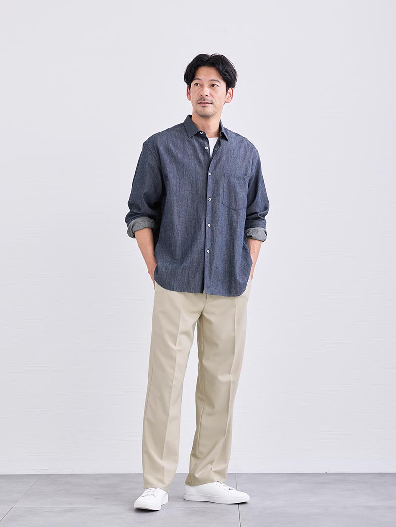 パンツ合わせもデニム、スラックス、チノ、スキニーワイドストレートこれまた何でも合います