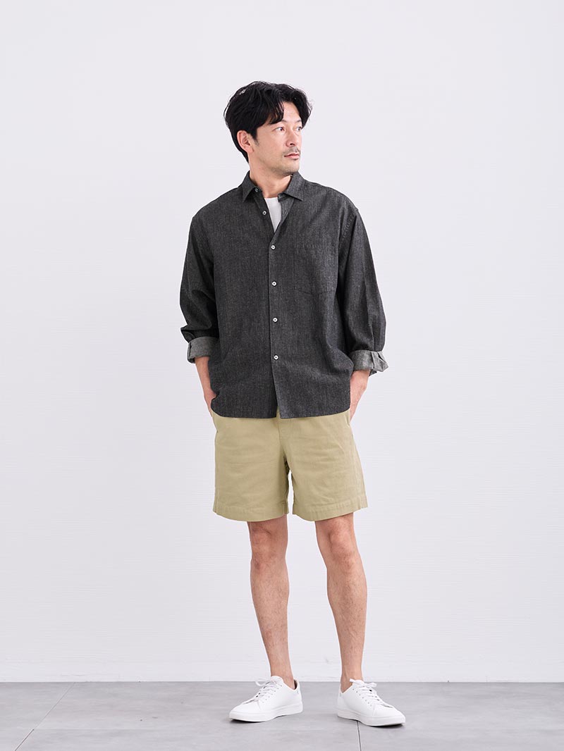 オーバーサイズまでいかないリラックスシルエットで肩も落ちすぎず身幅もしっかりありつつリネンを配合してるからか奇麗にストンと落ちてくれます