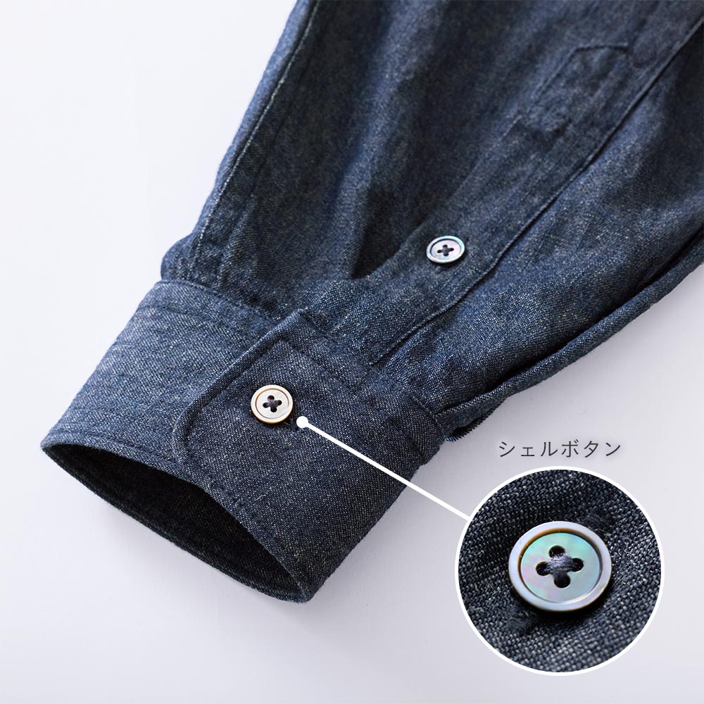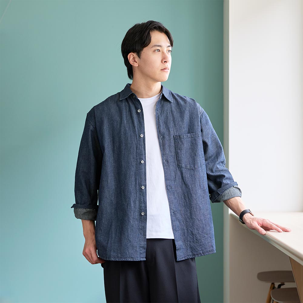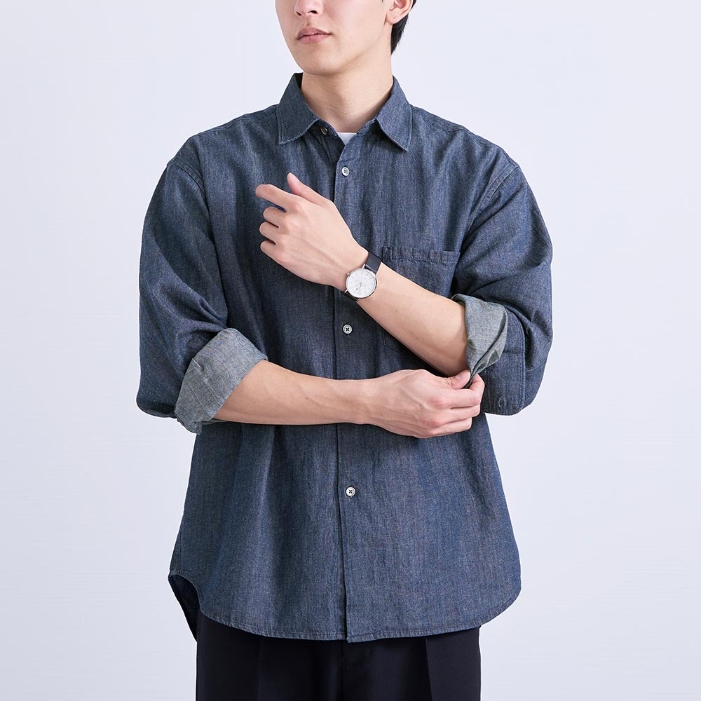 デニムシャツは着心地が重いものが多いが、こちらは着心地が良く春先、秋口に大活躍してくれそうです!