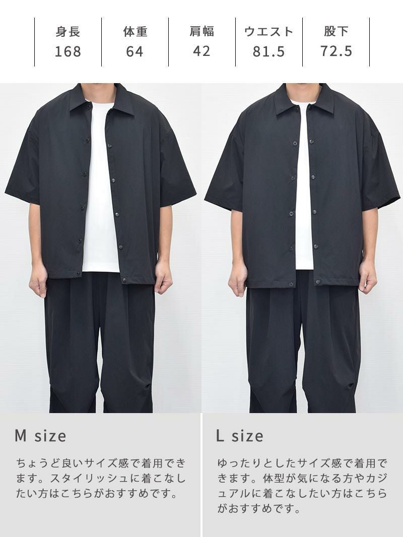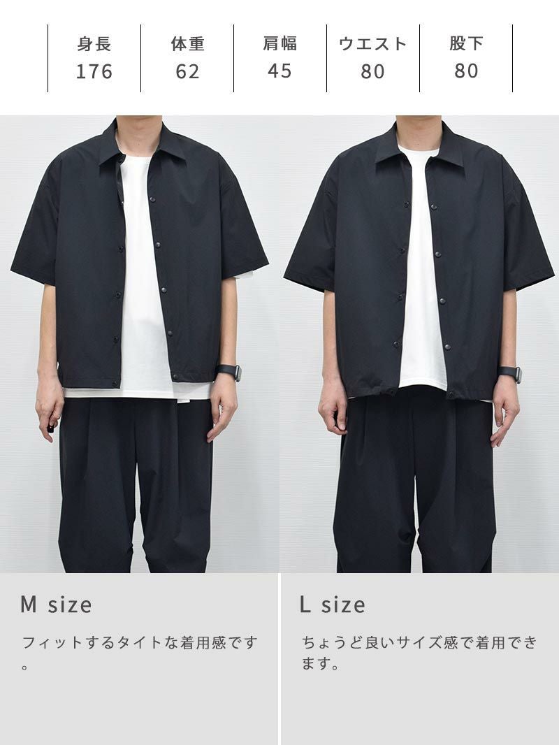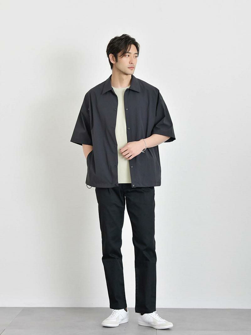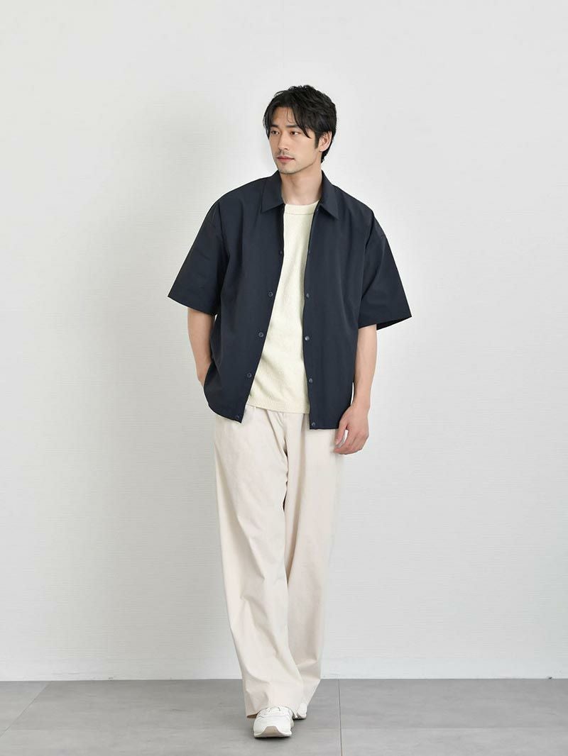 アイテム説明 “ガジェット感覚”で揃えたくなる都会的セットアップ。 この半袖コーチシャツは、軽量でストレッチ性に優れた上質な生地を採用し、動きやすさと快適さを両立。裾のドローコードでシルエットを自由に変えられる設計や、シンプルながら遊び心を感じるデザインが特徴です。 単品での着こなしはもちろん、セットアップにすることで、さらに完成度の高いアーバンスタイルを楽しんでください。 軽さと機能性を兼ね備えた、 現代のシャツアウター 軽量で快適な半袖コーチシャツ。特別なリップストップ生地を使用し、軽やかな着心地と耐久性を両立。 動きやすい設計で、通勤や出張のビジネスシーンから休日のリラックススタイルまで幅広く対応します。 もっと見る 洗練されたミニマルデザインで、 余裕ある都会派スタイルを ゆったりとしたシルエットにミニマルなデザインを組み合わせた、都会的で洗練されたシャツアウター。 動きやすさを考慮した設計と、無駄を省いたディテールがどんなシーンにもマッチします。 同素材のワイドパンツとセットアップにすれば、さらに洗練された統一感を実現。羽織るだけで、通勤や週末のカフェタイムまでスタイリッシュに決まります。 耐久性が高く上品見えするリップストップ生地 リップストップ生地が日常の摩耗に強く、さらに、生地表面のさりげない格子状のデザインが、上質感と立体感をプラス。 耐久性とともに、見た目のデザイン性も引き立てる仕上がりです。 ストレスフリーな軽量設計で一日中快適に ナイロンとポリウレタンを使用した特別な軽量素材。 驚くほど軽く、ストレッチ性抜群の生地が動きを妨げることなく快適な着心地を提供します。 長時間の着用でも疲れにくい設計で、通勤や出張、休日のアクティブシーンまでストレスフリーな1日をサポートします。 ドローコードで生まれる自由なシルエット 裾のドローコードを絞ることで、ボリュームや着丈を自在に調整可能。ワイドパンツとの相性を考えたトレンド感のある着こなしや、シーンに応じたシルエットの変化が楽しめます。 リラックスしたルーズなスタイルから、引き締まったコンパクトな印象まで、1着で幅広いコーディネートを実現します。 セットアップで完成させる アーバンワークウェアスタイル 同シリーズのワイドパンツやジップベストと組み合わせるだけで、都会的で完成度の高いセットアップスタイルが実現。忙しい朝でもコーデに迷わず、準備がスムーズに完了します。 上下の統一感が洗練された印象を与え、出張や移動が多いシーンでも快適な着心地をキープ。オフィスからプライベートまで、幅広い場面でスマートな装いを楽しめます。 一緒におすすめ テックジップベスト(セットアップ対応) CHECK テックワイドパンツ(セットアップ対応) CHECK サイズ・素材 肩幅 身幅 袖丈 着丈 S 55.5 57 23 66.5 M 58 59 24 68 L 60.5 61.5 25.5 70.5 XL 62 63.5 26.5 73 ※表記サイズは実寸であり、個体差により誤差が生じる場合があります。 ※商品によっては洗濯タグにヌード寸法が記載されておりますが、実寸とは異なります。 伸縮性 あり ややあり なし 厚み 厚手 普通 薄手 透け感 あり ややあり なし 洗濯 洗濯OK ネット使用 手洗いのみ 表地 ナイロン87% ポリウレタン17% 裏地 なし 生産国 中国 表示を隠す スタッフ試着レビュー サイズにお悩みですか? LINEでサイズ相談する 返品・交換は無料で安心 ご自宅でじっくりご試着いただけます。会わなければ送料負担なく返品できます。あなたにぴったりの一着と出会えるよう、お手伝いいたします。 コーディネート Model : 179㎝/66㎏/ L / ブラック着用 ワイドフィットタフTシャツ CHECK テックワイドパンツ(セットアップ対応) CHECK Salvatole Marra クロノグラフ腕時計 CHECK HARUSAKU 奈良産 バックラインソックス CHECK Model : 179㎝/66㎏/ L / ブラック着用 クールタッチスムースTシャツ CHECK タックワイドデニムパンツ CHECK NEW ERA 920 キャップ CHECK Model : 179㎝/66㎏/ L / ブラック着用 クールタッチスムースTシャツ CHECK ブラックスリムパンツ 旧型 CHECK コートレザースニーカー CHECK Model : 179㎝/66㎏/ L / ネイビー着用 ワイドフィットタフTシャツ CHECK テックワイドパンツ(セットアップ対応) CHECK キルトショルダーバッグ CHECK NEW ERA 920 キャップ CHECK Model : 179㎝/66㎏/ L / ネイビー着用 テクスチャーサマーニット CHECK ワイドバルーンパンツ(セットアップ対応) CHECK Model : 179㎝/66㎏/ L / ネイビー着用 ジャケット専用ドレスTシャツ CHECK CODEテーパード デニム CHECK Uチップシューズ CHECK スタッフコーディネート もっと見る