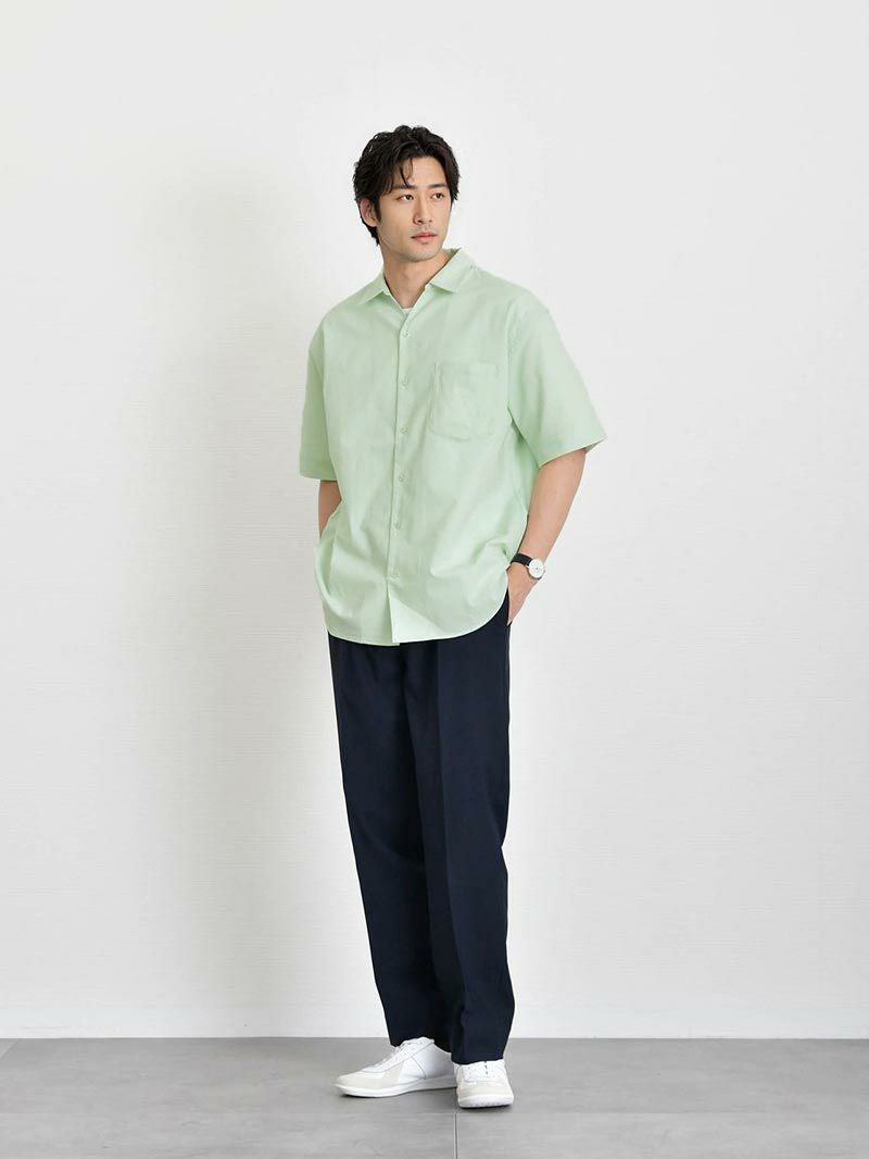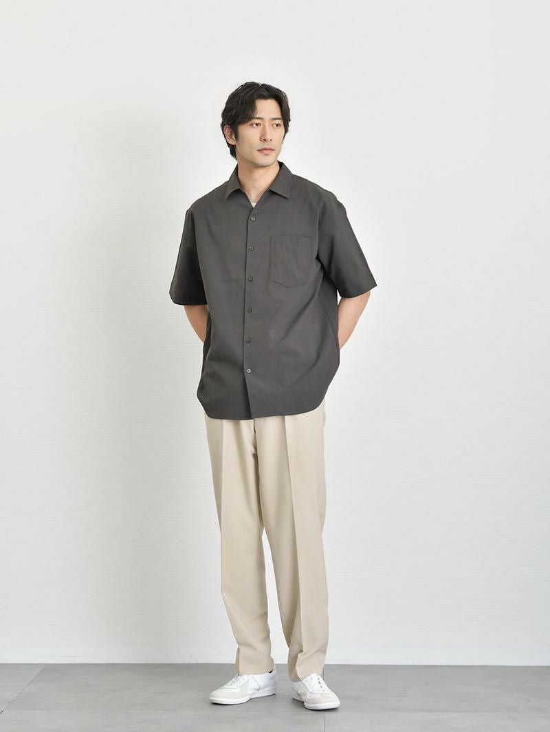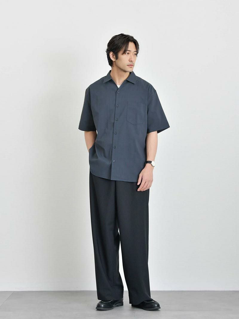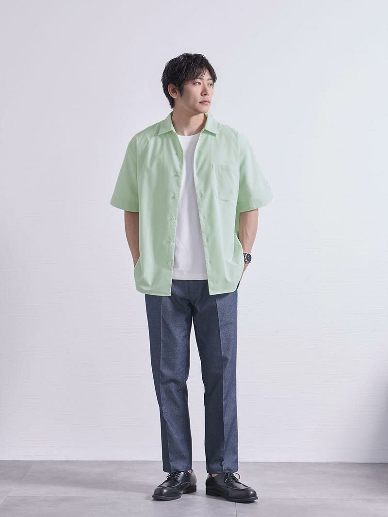 アイテム説明 「オーシャンカラーシャツ」は、首元のオープンカラーがもたらす解放感と、海のような清涼感が魅力の一着です。 首元の解放感で魅せる、 オーシャンカラーの新スタイル オーシャンカラーがもたらす首元の解放感は、軽やかさと清涼感を演出。 リラックスした雰囲気を持ちながらも、都会的で洗練された印象をプラスします。 この絶妙なデザインが、オフィスから休日のリラックスシーンまで幅広く活躍する一着です。 もっと見る レギュラーカラーとオープンカラーの 良いとこどりデザイン 通常のオープンカラーシャツは、襟がペタンと寝てしまい、カジュアル過ぎてパジャマのように見えてしまうことも。 しかし、『オーシャンカラーシャツ』は襟が美しく立ち上がる台襟仕様を採用。ドレスシャツのような上品さを備え、カジュアルに見えがちなオープンカラーをキレイめに着こなせる一着に仕上げました。 オーシャンカラーで楽しむオンオフスタイル まるで海辺にいるかのような爽やかさと軽やかさを感じながら、どんなシーンにもマッチする品のあるデザインが魅力です。 オフィスでは涼しげで清潔感のある印象に、休日にはリラックス感溢れる抜け感スタイルを演出。この一着で、日常を軽やかに彩りましょう。 瞬時に乾き、爽やかさが続く 吸水速乾&清涼感 ポリエステル100%の吸水速乾素材が汗を瞬時に吸い取り、すぐに蒸発。肌離れの良いドライな着心地が、一日中続きます。 さらに、ザラっとした凹凸感のある生地が通気性を高め、まるで麻シャツを着ているような爽やかさをプラス。 暑い季節でもストレスフリーな快適さを実感できます。 しなやかな伸びと驚きの軽さ ストレッチ&軽量設計 高いストレッチ性がどんな動きにもスムーズに対応し、軽量な素材が長時間の着用でも負担を感じさせません。 忙しい日常やアクティブなオフタイムでも、抜群の快適さを実現。軽やかに動きたい全てのシーンで頼れる一着です。 お手入れ簡単 洗濯機OK&アイロン不要 左:洗濯前/右:洗濯後 自宅で気軽に洗えて、速乾性の高い素材がすぐ乾くから、忙しい日常でもストレスフリー。 さらに、シワになりにくい加工で、アイロンいらずの手軽さを実現。清潔感をキープしながら、時間も手間も省ける優秀アイテムです。 一緒におすすめ 半袖バンドカラーシャツ CHECK ツイルショートパンツ CHECK サイズ・素材 肩幅 身幅 袖丈 着丈 S 49.5 61 25.5 69.5 M 52 63 26 71.5 L 53.5 65 26.5 73.5 XL 55.5 67 26.5 76 ※表記サイズは実寸であり、個体差により誤差が生じる場合があります。 ※商品によっては洗濯タグにヌード寸法が記載されておりますが、実寸とは異なります。 伸縮性 あり ややあり なし 厚み 厚手 普通 薄手 透け感 あり ややあり なし 洗濯 洗濯OK ネット使用 手洗いのみ 表地 ポリエステル100% 裏地 なし 生産国 中国 表示を隠す スタッフ試着レビュー サイズにお悩みですか? AIに適正サイズを聞く 返品・交換は無料で安心 ご自宅でじっくりご試着いただけます。合わなければ送料負担なく返品できます。あなたにぴったりの一着と出会えるよう、お手伝いいたします。 コーディネート Model : 179㎝/66㎏/ L / ナチュラル着用 細身のパンツを合わせて、キレイめなシルエットを作ることで大人な雰囲気に。 色味もモノトーンでまとめることで、クールな印象を与えます。 クールタッチスムースジャケット専用Tシャツ CHECK CODEテーパード CHECK スマートスニーカー CHECK 2wayマルチトートバッグ CHECK Model : 179㎝/66㎏/ L / ナチュラル着用 夏らしく爽やかなブルーのデニムを合わせることで、季節感を演出。 カジュアルになりすぎないように、シャツを合わせることで30代~の大人なスタイルに。 クールタッチスムースTシャツ CHECK タックワイドデニムパンツ CHECK Salvatole Marra シンプル腕時計 CHECK ナローメッシュベルト CHECK Model : 179㎝/66㎏/ L / ナチュラル着用 ナチュラルカラーの半袖シャツに、深いインディゴのストレートデニムを合わせたシンプルなカジュアルコーデ。 足元にはホワイトスニーカーを選ぶことで、全体に清潔感が加わっている。 爽やかな印象で、休日の街歩きやカフェシーンにぴったりなスタイルに。 クールタッチスムースTシャツ CHECK カイハラデニムパンツ CHECK コートレザースニーカー CHECK HARUSAKU 奈良産 プレーンリブソックス CHECK Model : 179㎝/66㎏/ L / ライム着用 淡いライムグリーンの半袖シャツが目を引く、爽やかで軽快な印象のコーディネート。 ネイビーのワイドパンツと合わせることで全体が引き締まり、白スニーカーが抜け感を演出。 初夏の休日やカフェデートなど、リラックスしつつも清潔感を大切にしたいシーンにぴったりです。 クールタッチスムースTシャツ CHECK CODEテーパード CHECK Salvatole Marra シンプル腕時計 CHECK コートレザースニーカー CHECK Model : 179㎝/66㎏/ L / ライム着用 個性のあるライムカラーは、モノトーンのアイテムと合わせるのがおすすめ。 ワイドパンツを合わせることでラフ感のあ