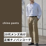 チノパンはそのシンプルなデザインから、どんなトップスとも合わせやすい万能アイテムとして大人メンズを中心に人気が高いです。 そんなチノパンは20代の若者ファッシ……
