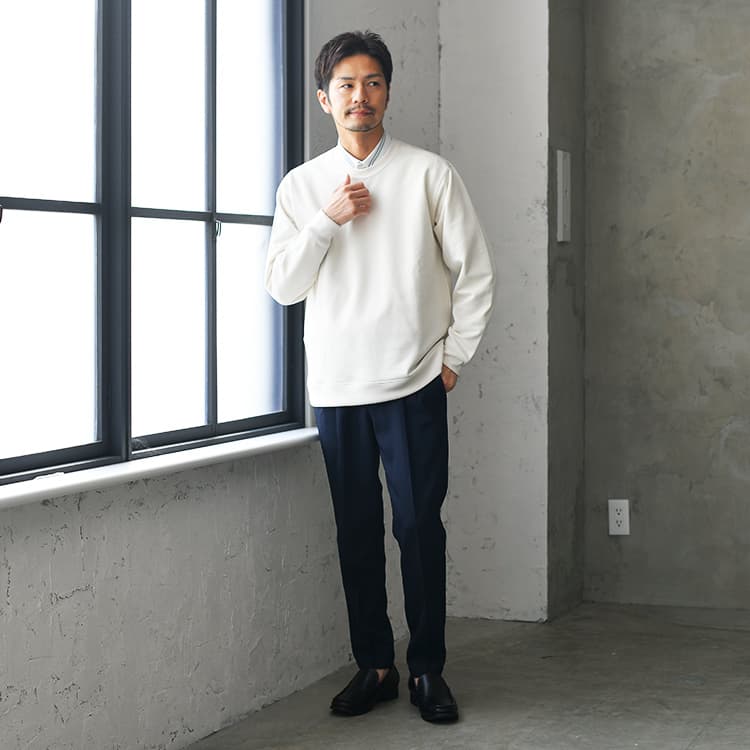 171cm / 55kg / 38歳 【着こなしポイント!】 クールタイプの方は、濃いネイビーや黒などのセットアップをかっこよく着こなすのがとても上手です。 オフィスウェアはもちろん、休日スタイルでもキレイめを意識すると、持ち前の凛々しく男らしい魅力が倍増します。 インナーにはラフ感のあるトレーナーを合わせれば、大人の色気を感じさせる究極の“引き算スタイル”に仕上がります。 クールタイプは目鼻立ちがキリっとしているので、白とネイビーのコントラスト(対比)がはっきり出るコーデも得意です。 さらにストライプ柄シャツを重ね着すると、存在感も抜群ですよ! オフィスではジャケット、休日はトレーナー+シャツというようにシーンに合わせて着分けるのもおすすめです。 ITEM LISTセット内容一覧 ジャケット ¥ 6,990(税込) トレーナー ¥ 5,290(税込) シャツ ¥ 5,290(税込) テーパードパンツ ¥ 4,990(税込) 合計金額22,560円 ※通常価格の合計のため、価格に変動がある場合がございます。 おすすめアイテム 大人専用テーパードパンツ ¥ 4,990(税込) 30~40代のみなさん、何を着たら年相応なのか 正解がわからないってことありませんか? 「若い時から服をこのまま着ていいのか」 「本当の自分に似合う服装ってなんだろう」 その悩み、たった一つで解決できるのが 大人専用テーパードパンツなのです。 テーパードパンツをくわしく見る 他のセット一覧を見る スタイリスト ちはる 「顔タイプメンズアドバイザー」「骨格診断ファッションアナリスト」の資格を持ち、お客さまの顔タイプ・骨格に合わせて似合うコーデのご提案をいたします。 アパレルショップでの経験を活かした、体型に合った着こなしのご提案もお任せください。