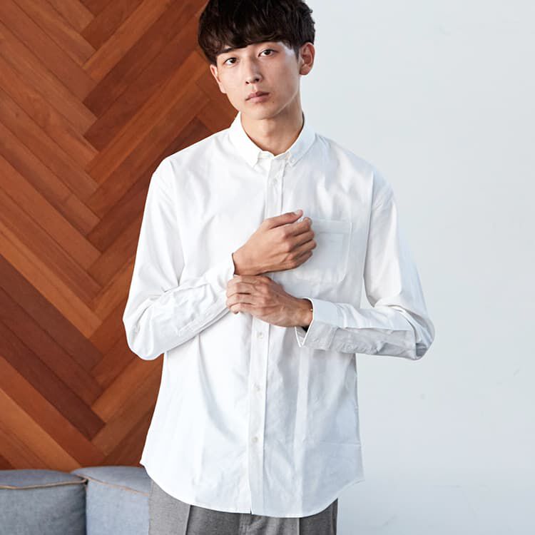 くすみ系のカラー同士を合わせた時は、コーデ全体がぼんやりと見えてしまう場合があるので、白シャツを重ねてメリハリを出してあげましょう^^