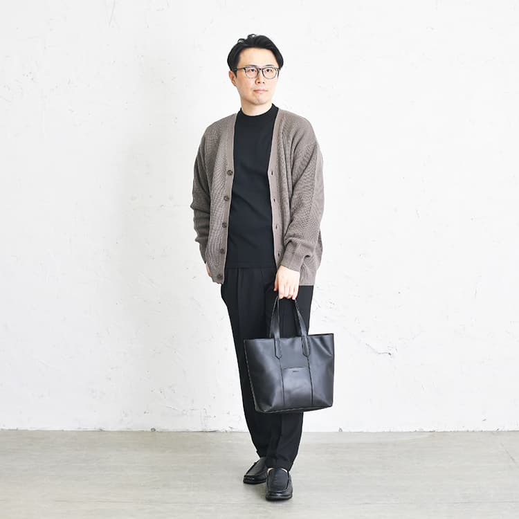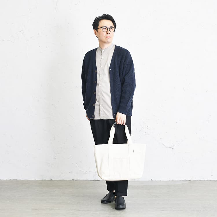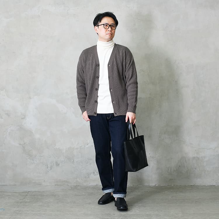 Tシャツ&襟付きカーデのダンディーなスタイル