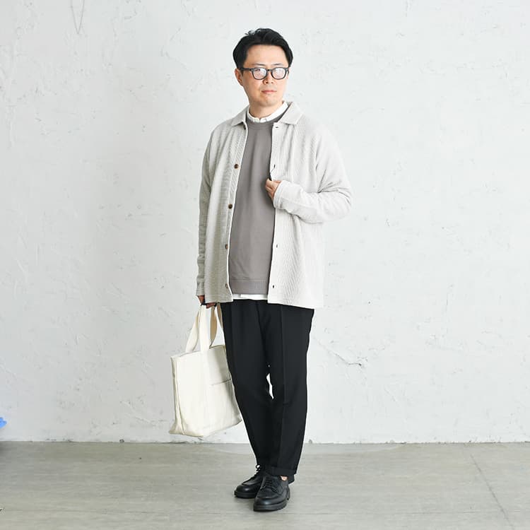 ゆったりアウターを使ってガッチリ体型をカバー!