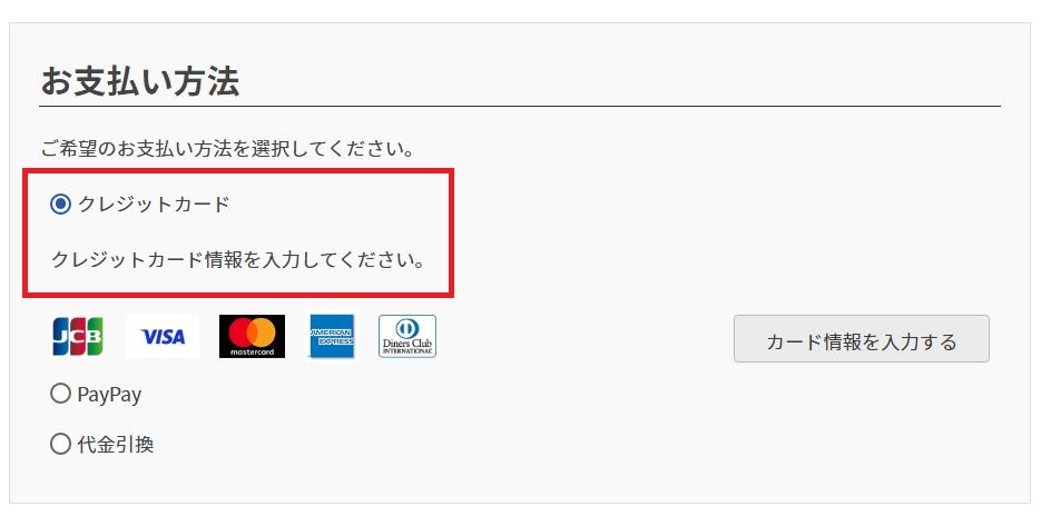 ②「お支払い方法」の設定箇所で「クレジットカード」を選択してください。